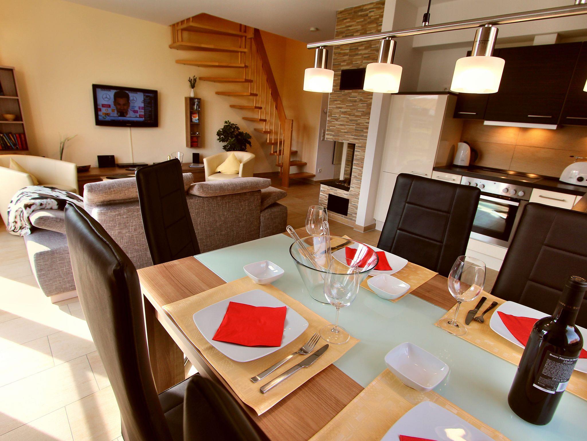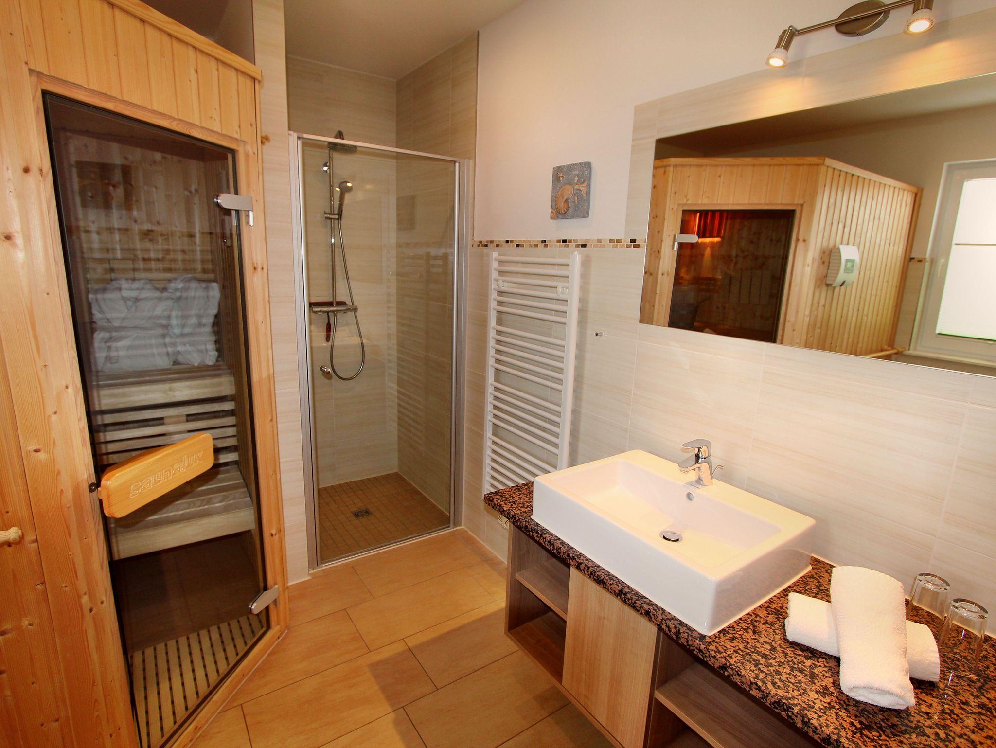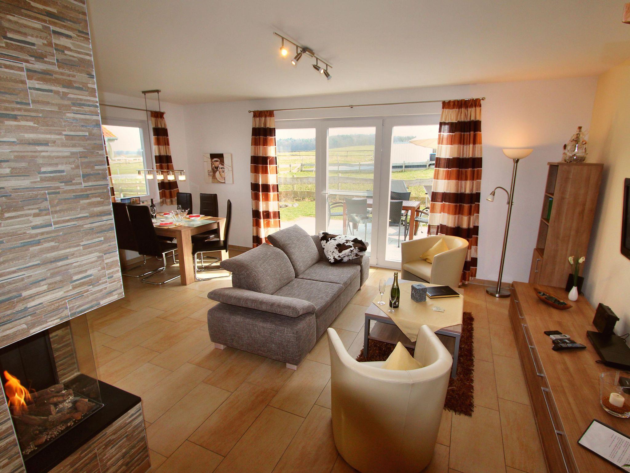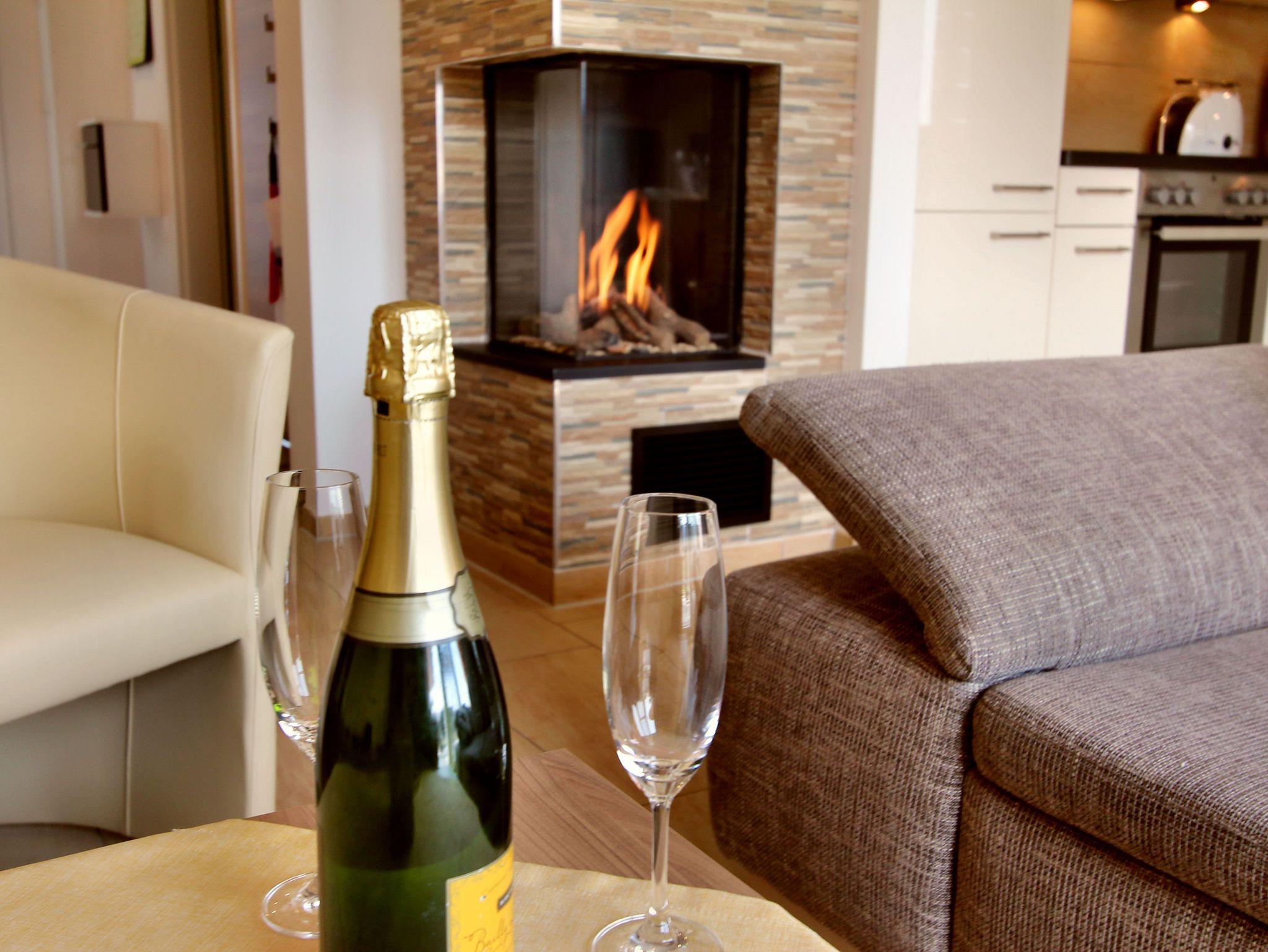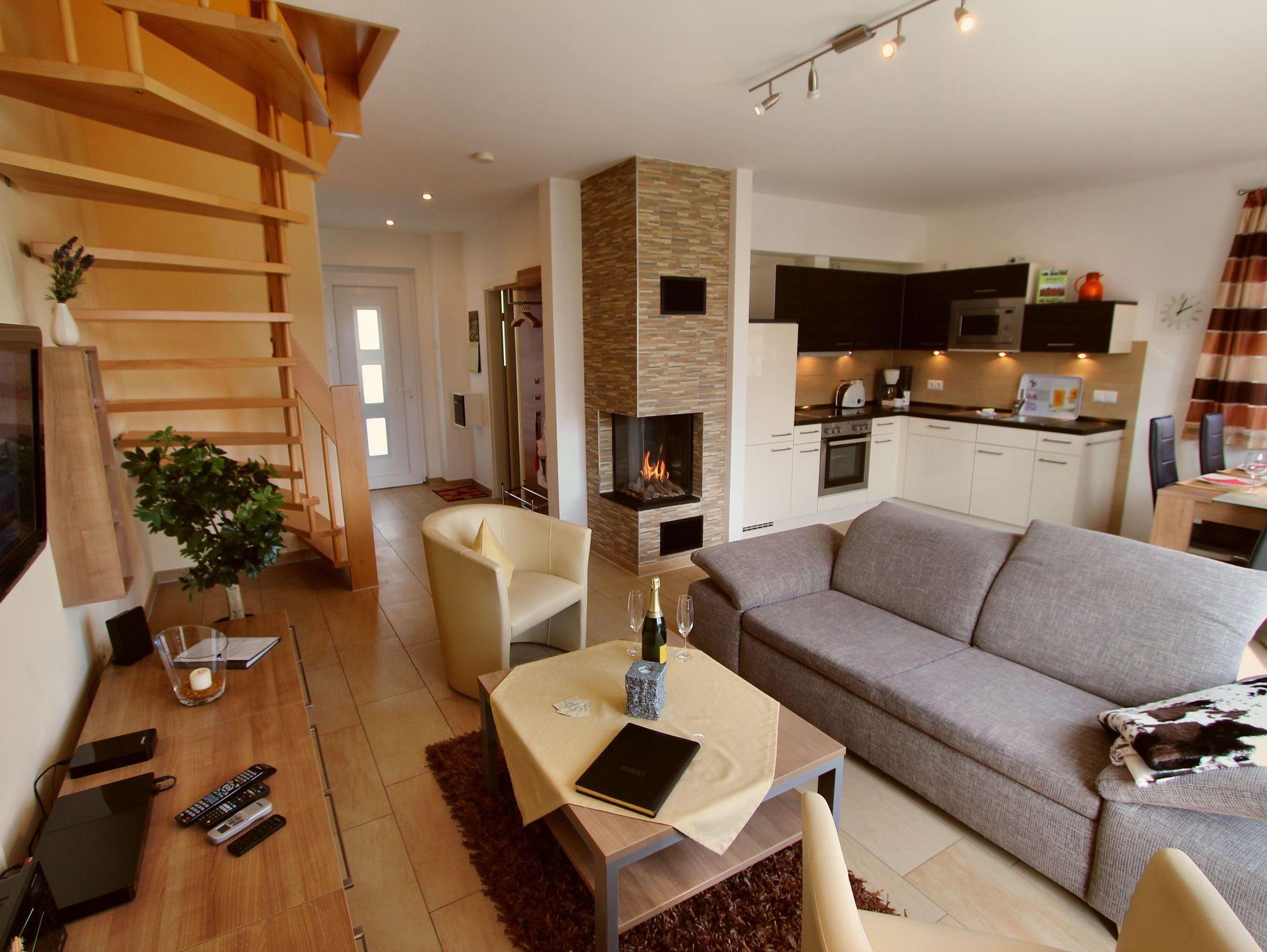 Der offene Wohnbereich lädt zum Verweilen und Entspannen ein. Hier können Sie gemütliche Stunden vor dem Gas-Kamin verbringen und den Tag ausklingen lassen. Das Ferienhaus erstreckt sich über zwei Etagen und verfügt über 2 liebevoll gestaltete Schlafzimmer, in denen Sie erholsame Nächte verbringen können. Hier können Sie sich zurückziehen und zur Ruhe kommen. Zudem stehen Ihnen 2 moderne Badezimmer zur Verfügung, eines davon mit einer Sauna. Hier können Sie sich wohltuend entspannen und neue Energie tanken.