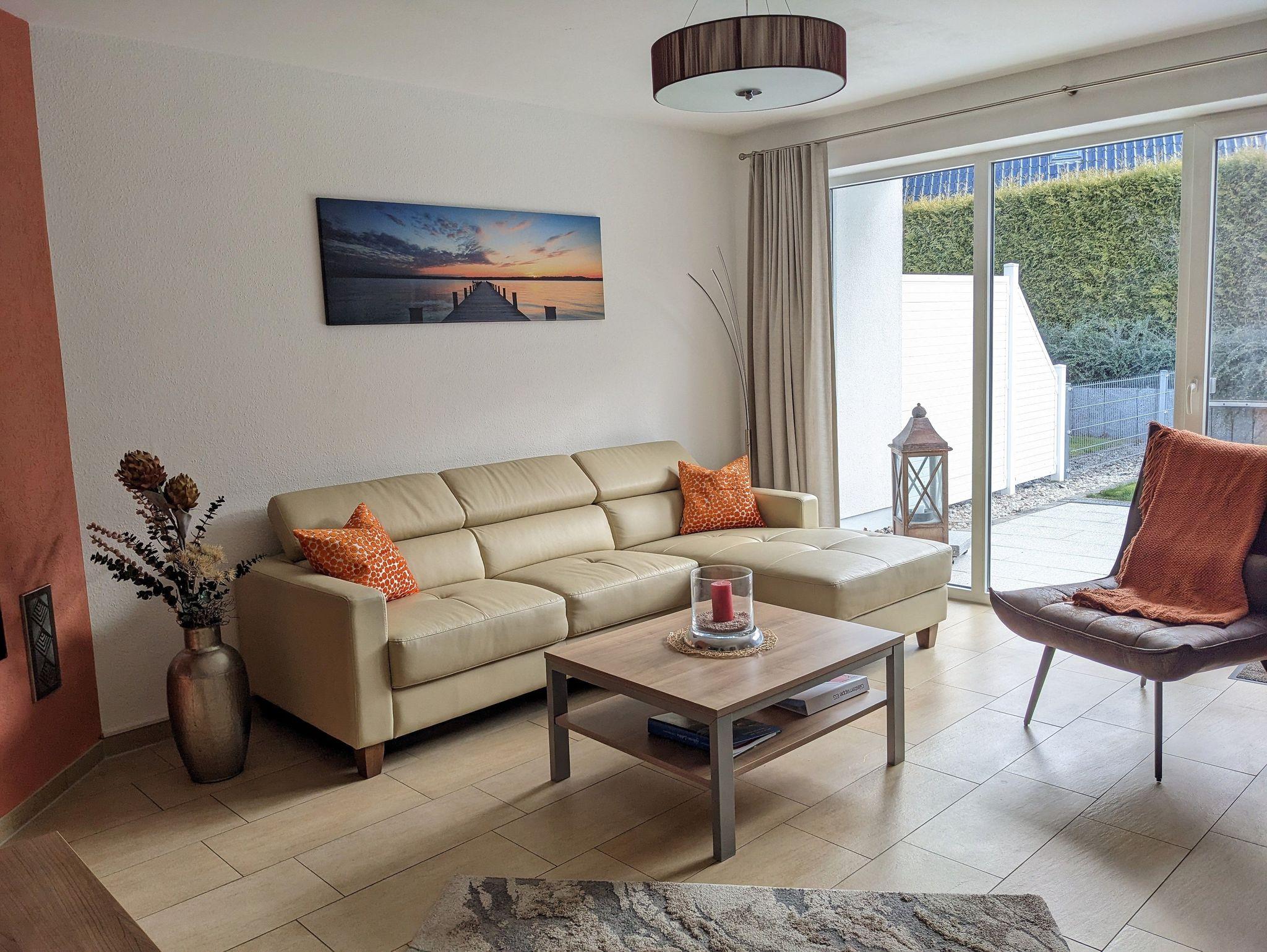 Ebenerdige Erdgeschosswohnung mit großem, offenen Wohn-Ess-Bereich inklusive Küche, zwei Schlafzimmer ( 1x Doppelbett, 1 x zwei Einzelbetten), Tageslichtbad, Terrasse, Sauna.