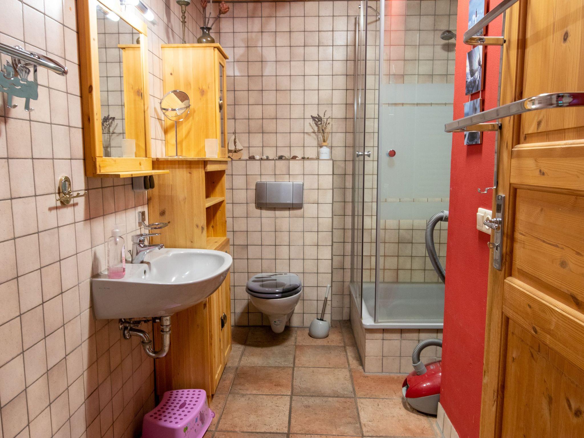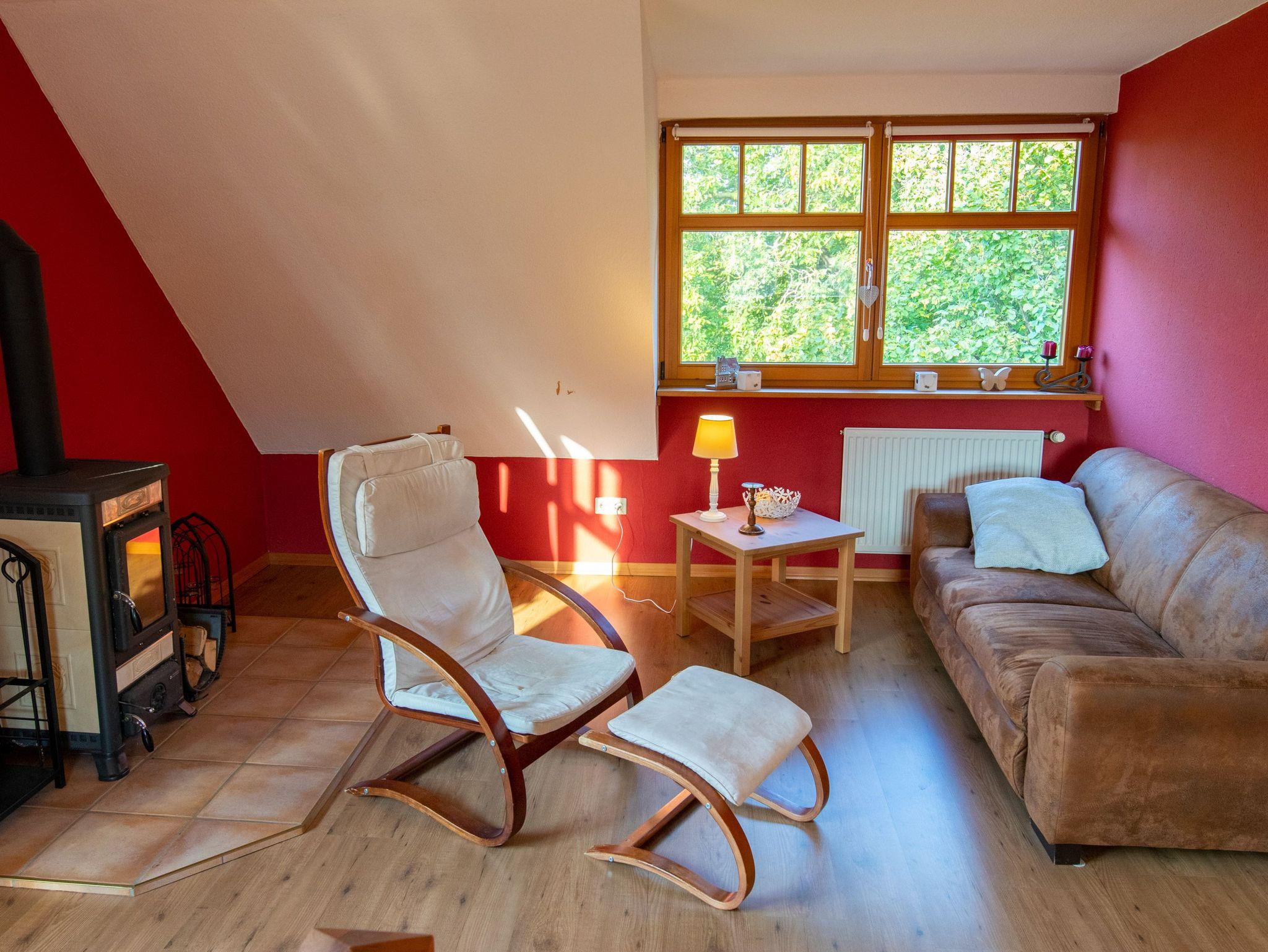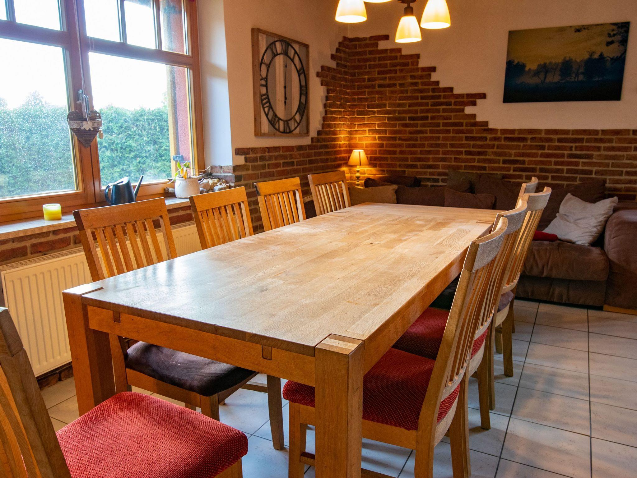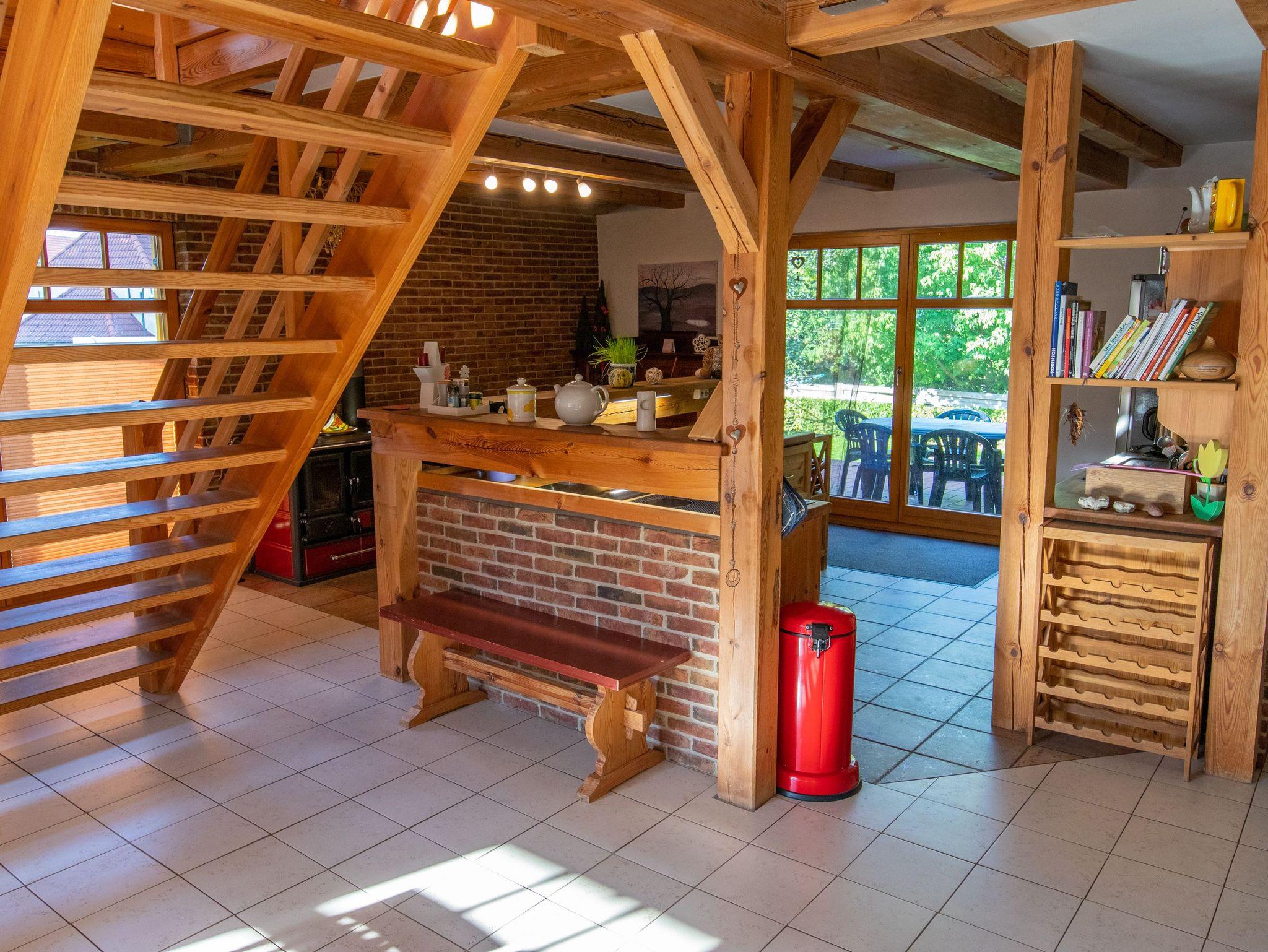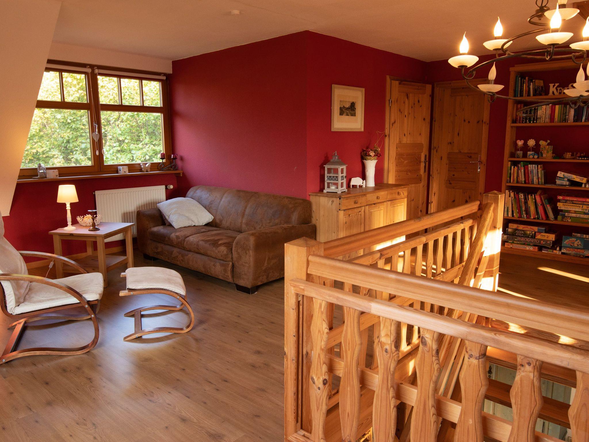 Das Ferienhaus bietet auf 180m² und 2 Etagen reichlich Platz für große Familien und Freundesgruppen - gemeinsam kochen, essen und spielen. Rückzugsmöglichkeiten laden zum Kuscheln, Lesen oder einfach zum Träumen und Genießen ein. Es gibt insgesamt 3 Schlafzimmer und 2 Bäder (eines mit Dusche und eines mit großer Badewanne). Das große Wohnzimmer mit offener Küche besticht mit einem breiten Kühlschrank und einem Holzofenherd. Im oberen Bereich befinden sich weitere Sitzmöglichkeiten und ein Kamin.