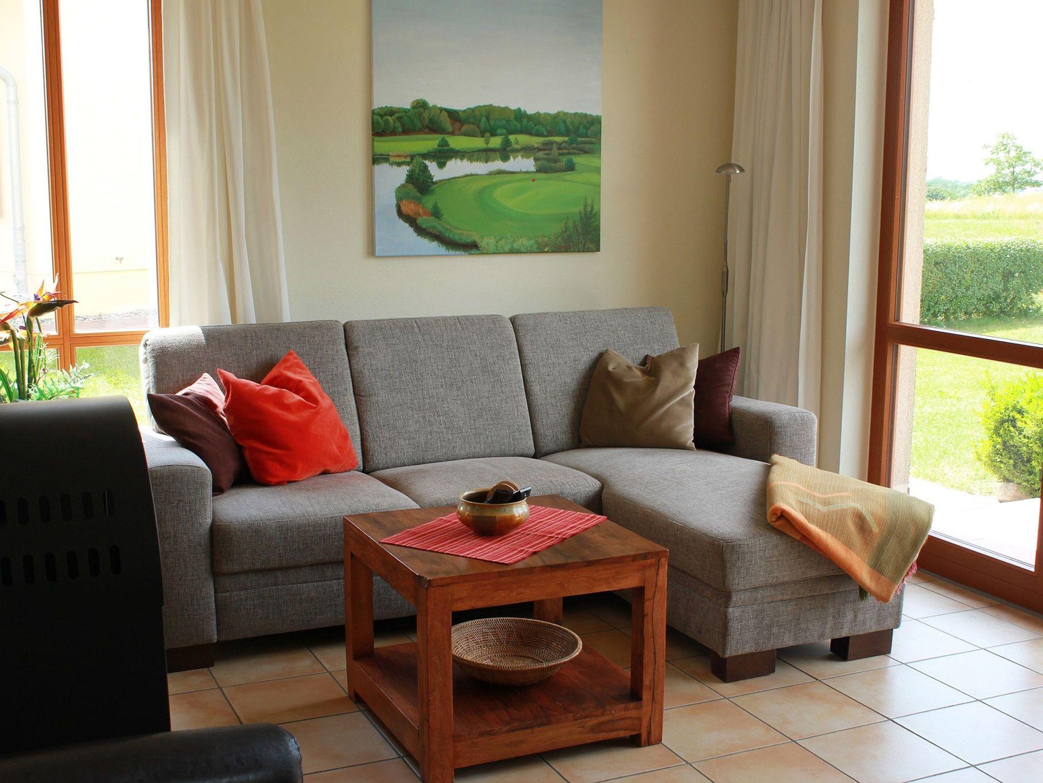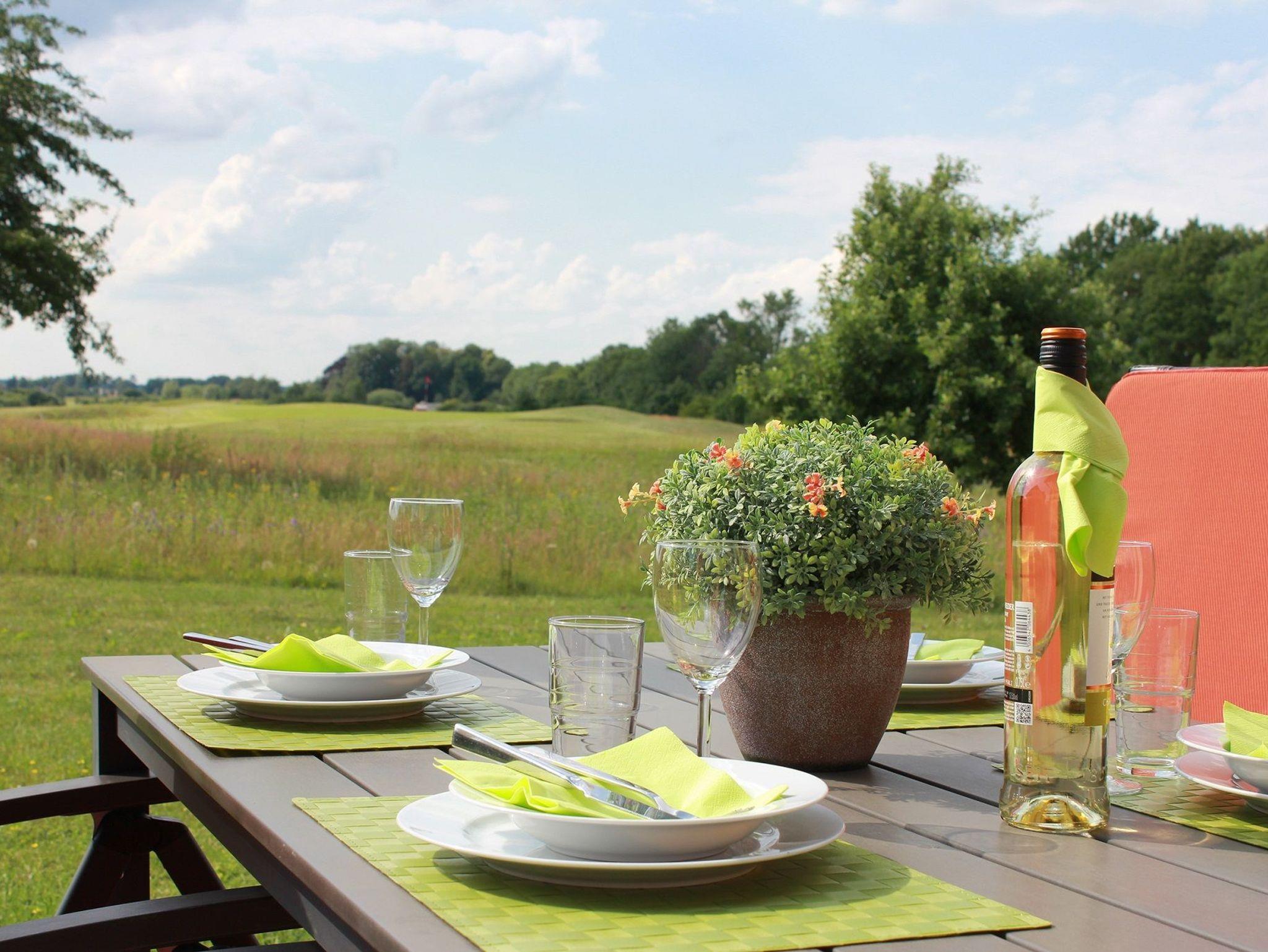 Diese helle, geschmackvoll eingerichtete Ferienwohnung befindet sich im Erdgeschoss links. Romantische Sonnenuntergänge mit einem wunderschönen Weitblick über den Golfplatz lassen auf der großen Sonnenterrasse ereignisreiche Urlaubstage entspannt ausklingen.