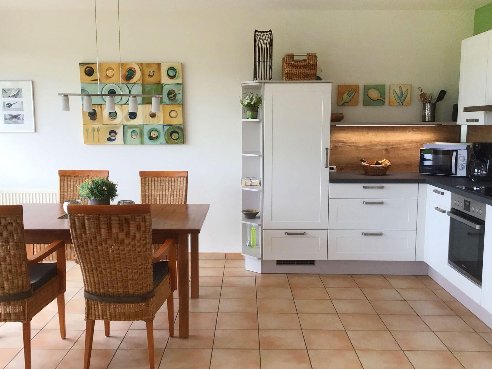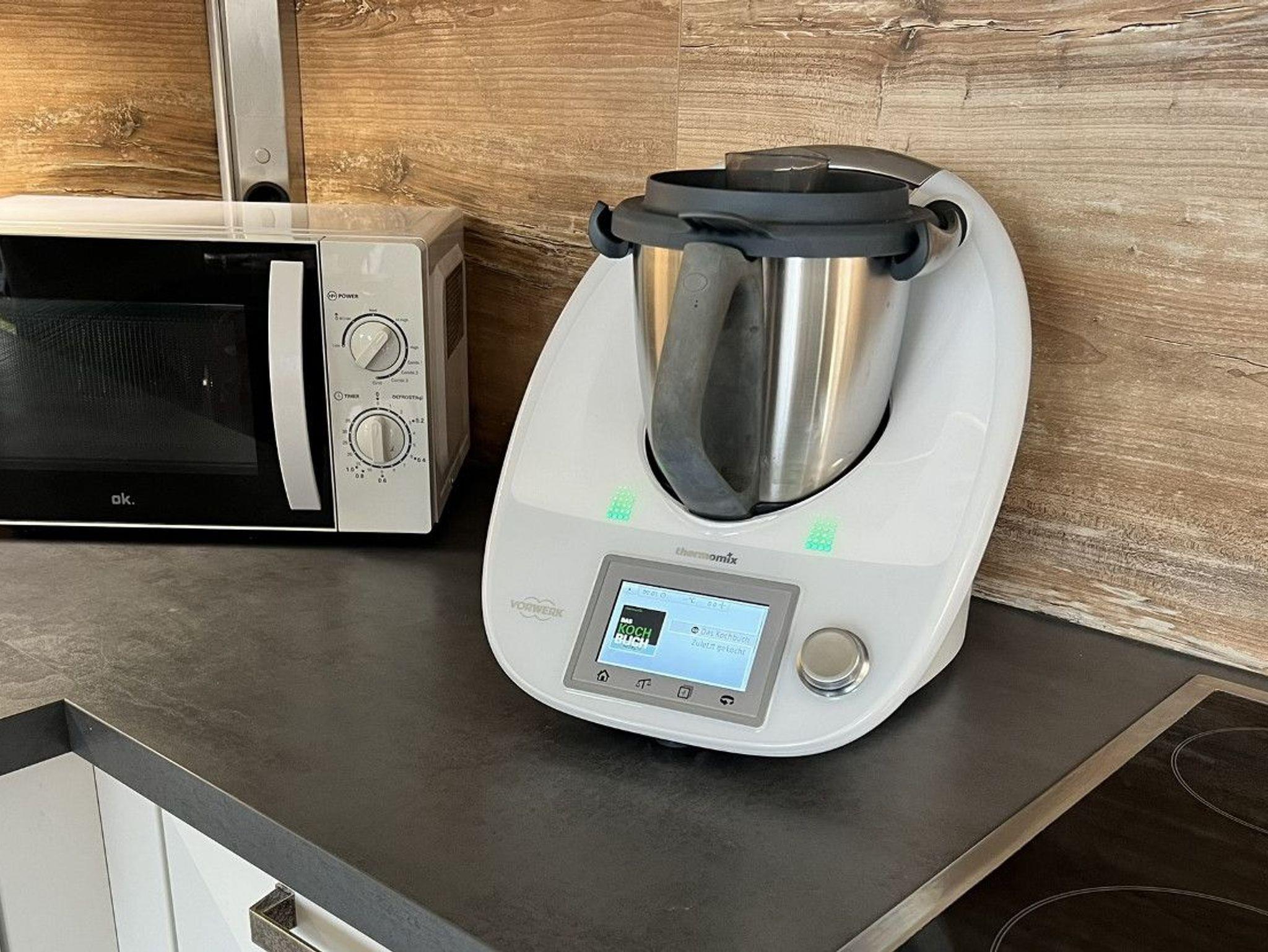 Die Küche ist mit einem Thermomix ausgestattet, so dass Sie im Urlaub auf den praktischen Küchenhelfer nicht verzichten müssen, oder das Gerät einmal selber ausprobieren können.