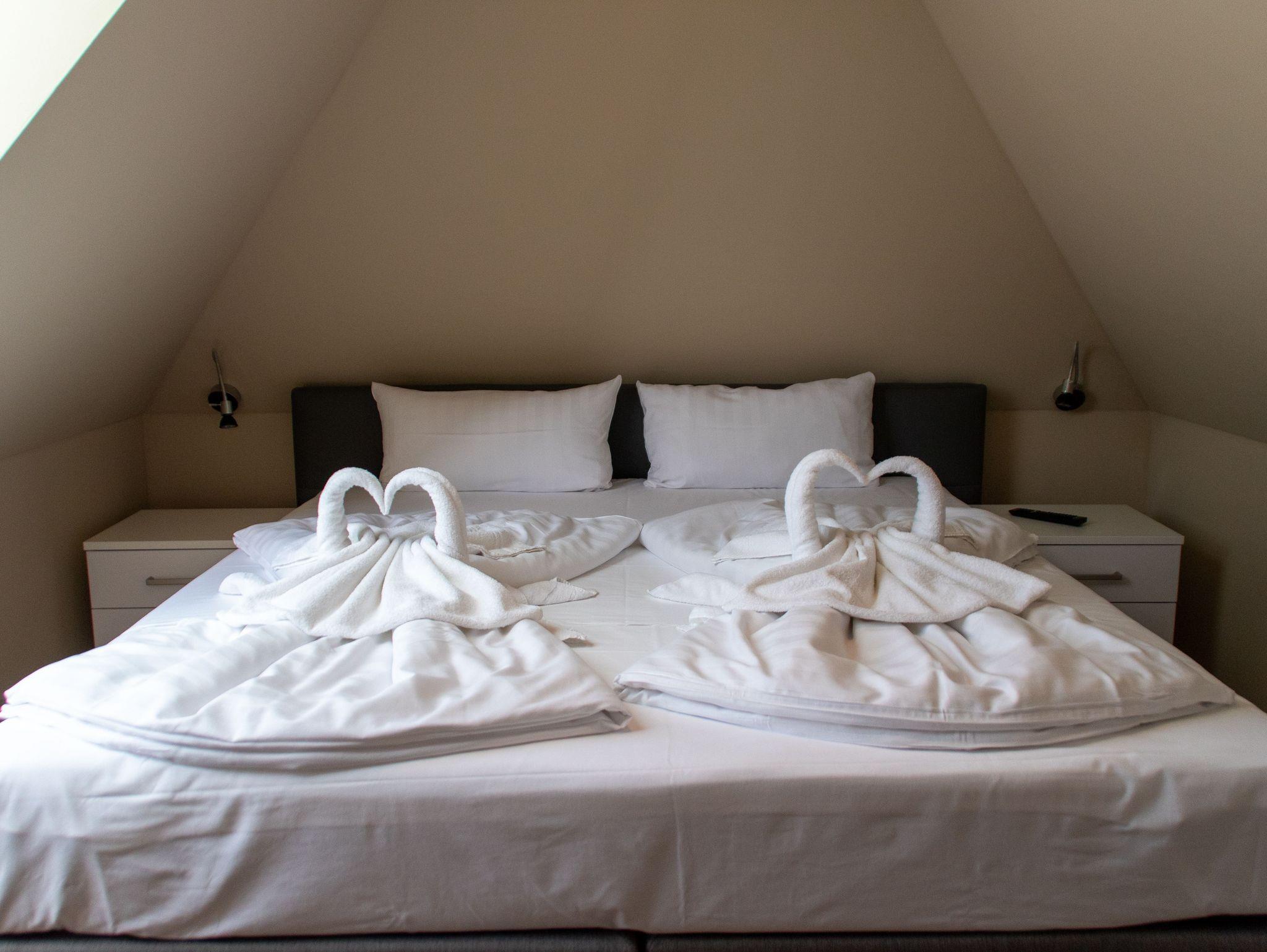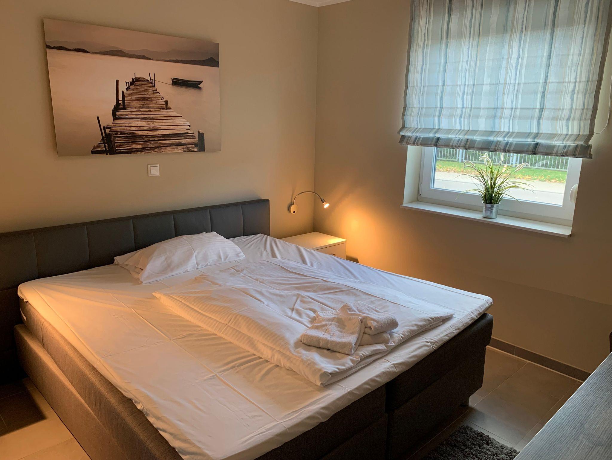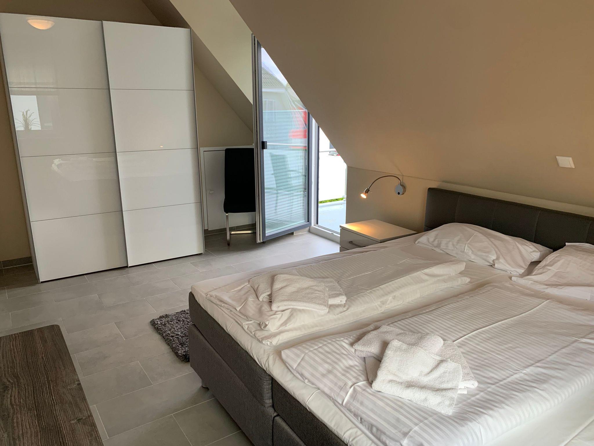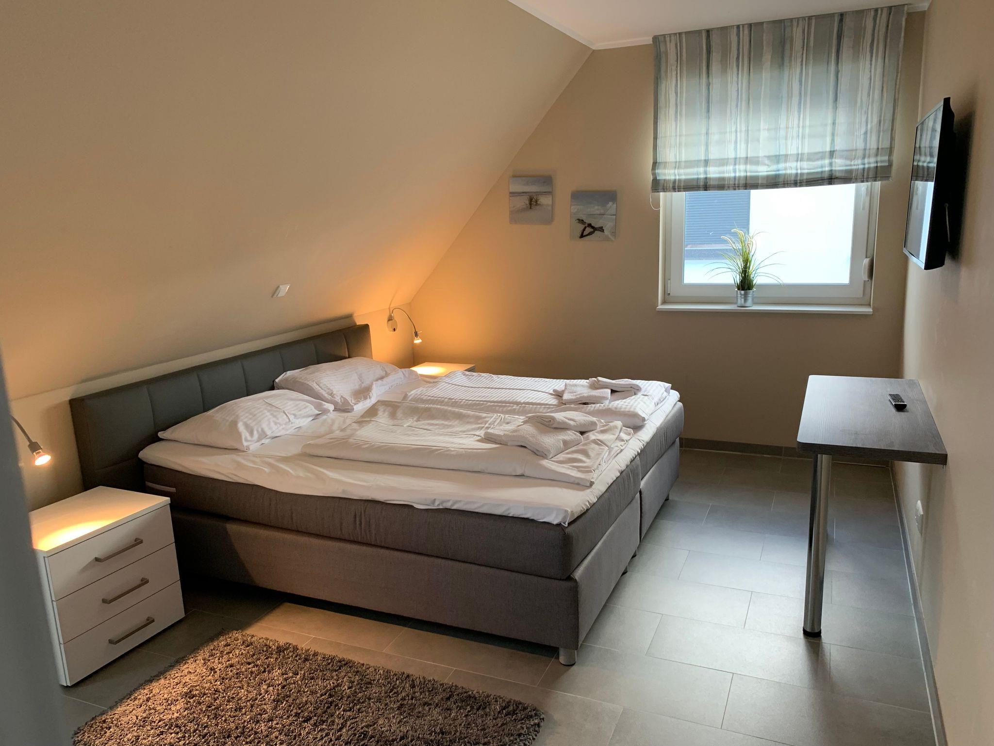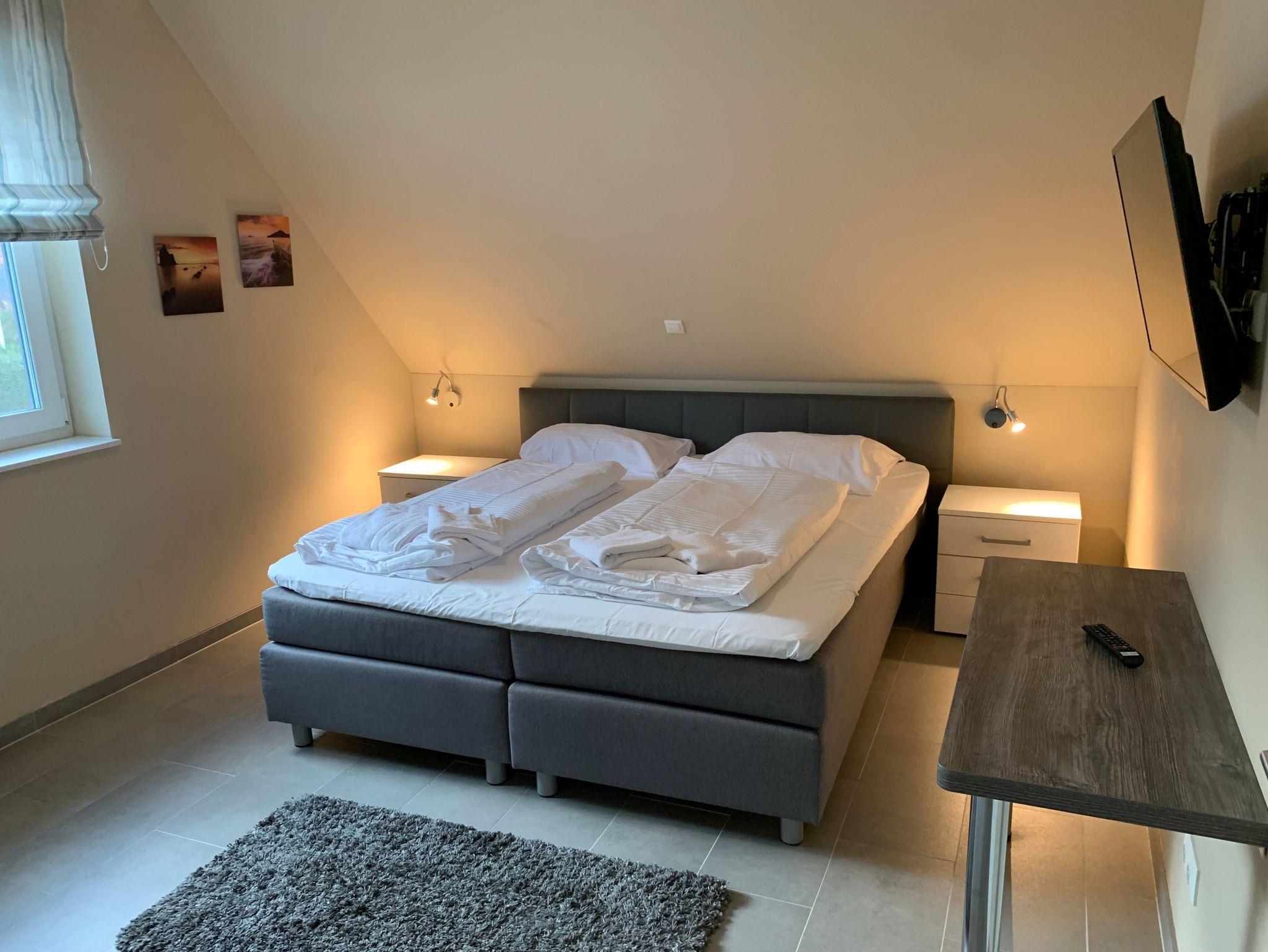 Die 4 Schlafzimmer verfügen ebenfalls alle über Flat-TV und sind jeweils mit 180 x 200 cm großen Boxspringbetten ausgestattet.