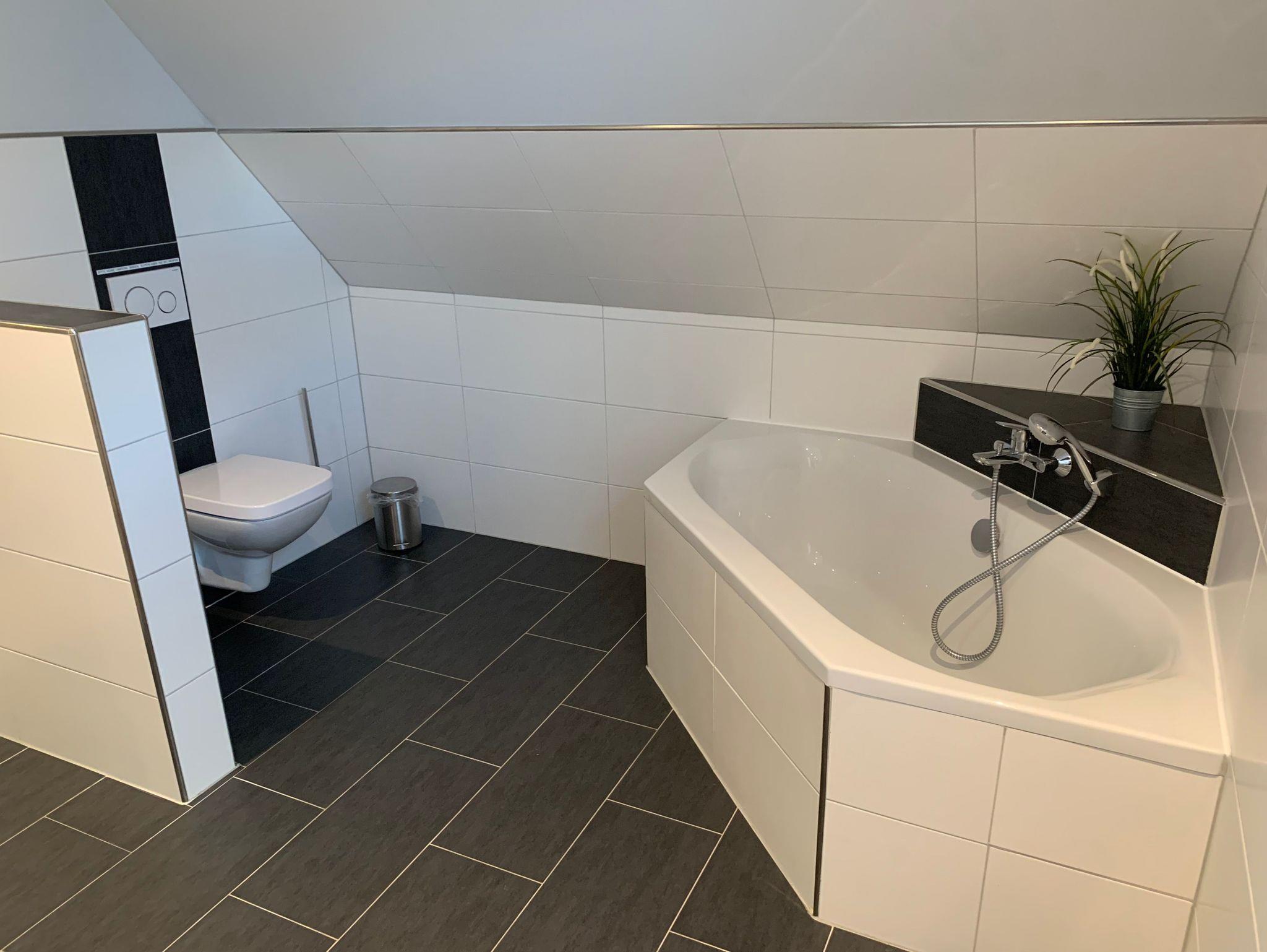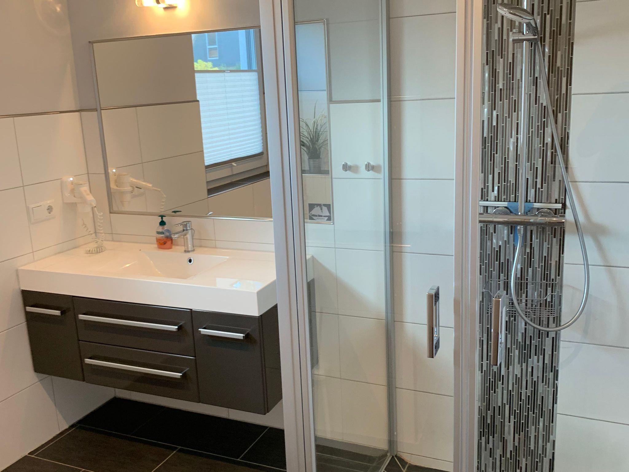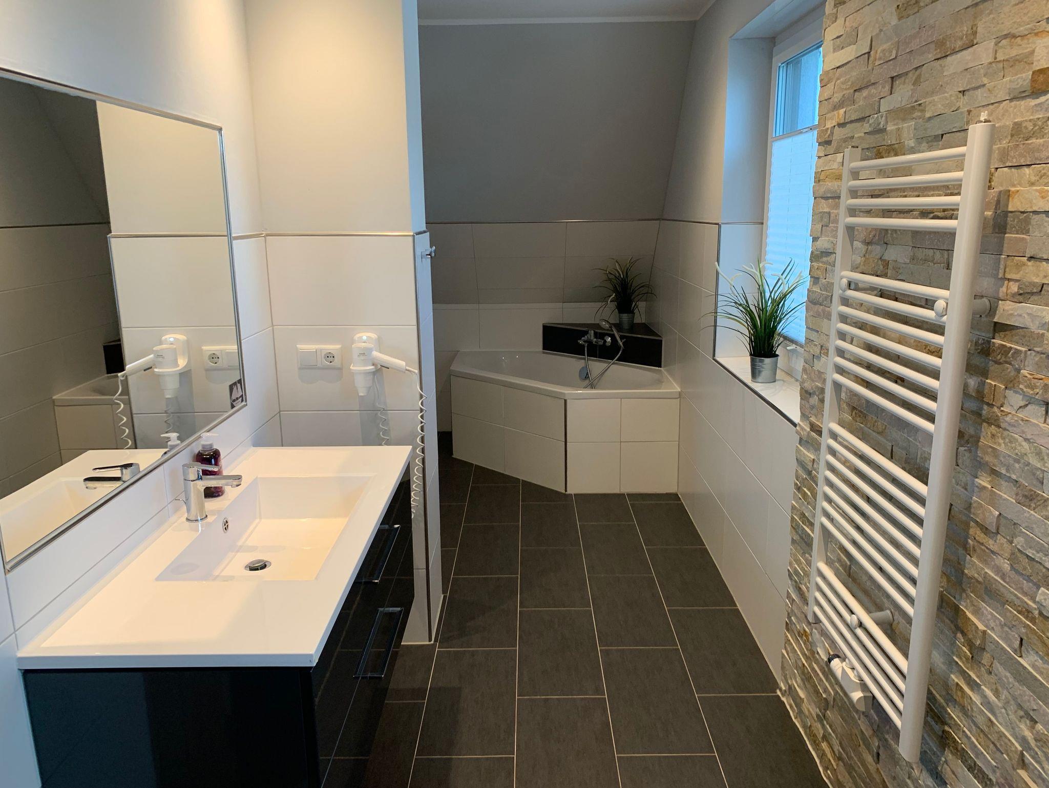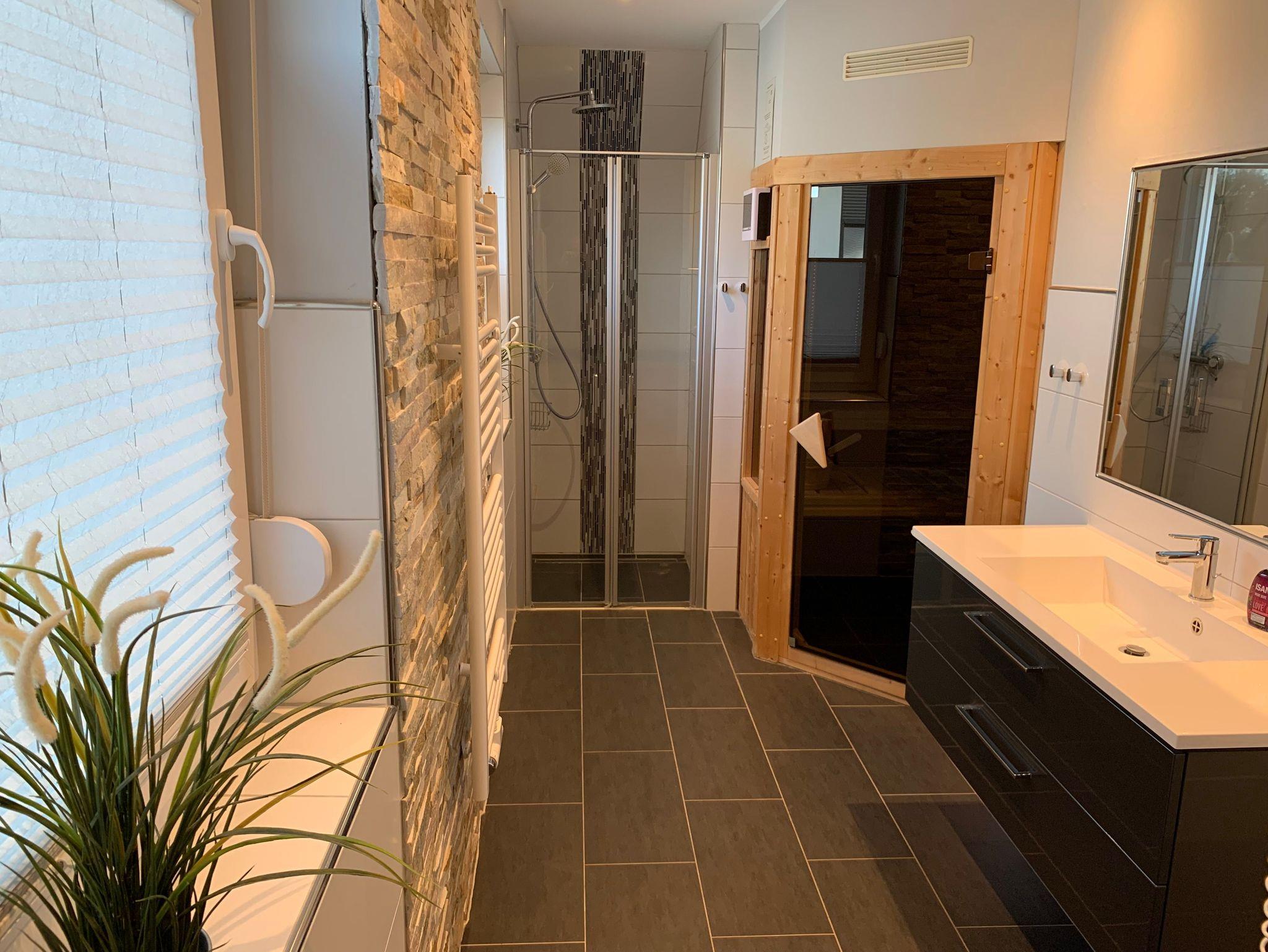 Die Bäder bieten moderne Waschtische und Raindanceduschen. Das große Bad verfügt zusätzlich über eine Badewanne und eine Sauna. Alle Räume werden über eine Fussbodenheizung beheizt..