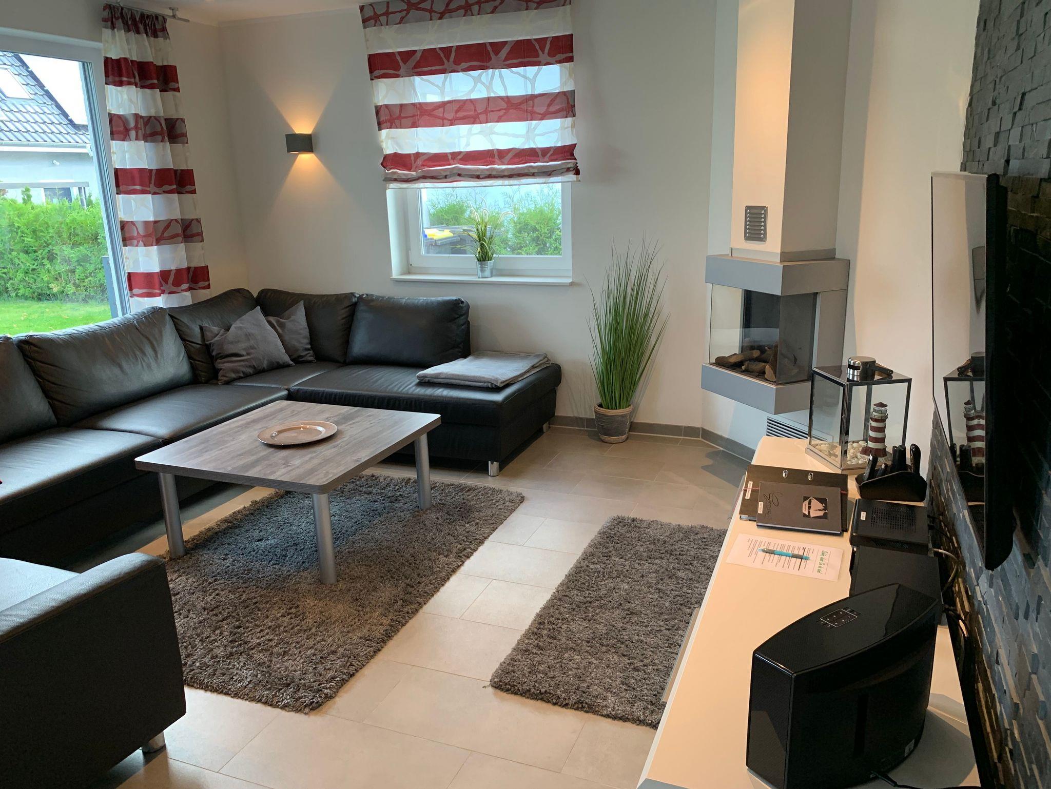 Lässig auf dem Sofa liegend, kann man komplett entspannen mit Musik oder Sky TV und einem Gaskamin.