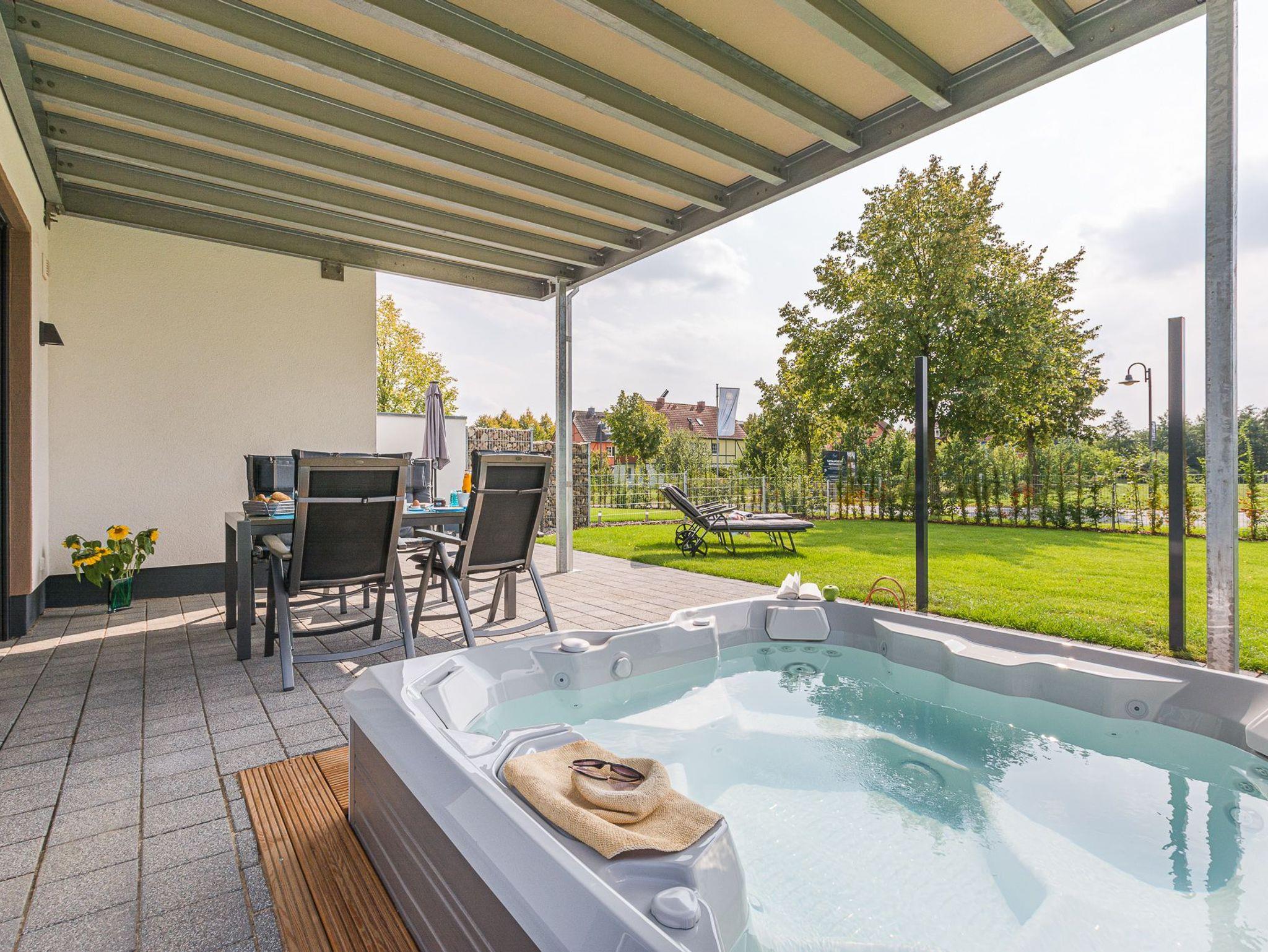 Der große Garten mit Terrasse ist der perfekte Ort, um entspannte Stunden im Freien zu verbringen. Das Highlight der Ferienwohnung ist der Außen Whirlpool, der Ihnen wohltuende Entspannung und Luxus bietet. Lehnen Sie sich zurück, genießen Sie die sprudelnden Wasser und lassen Sie den Alltag hinter sich.