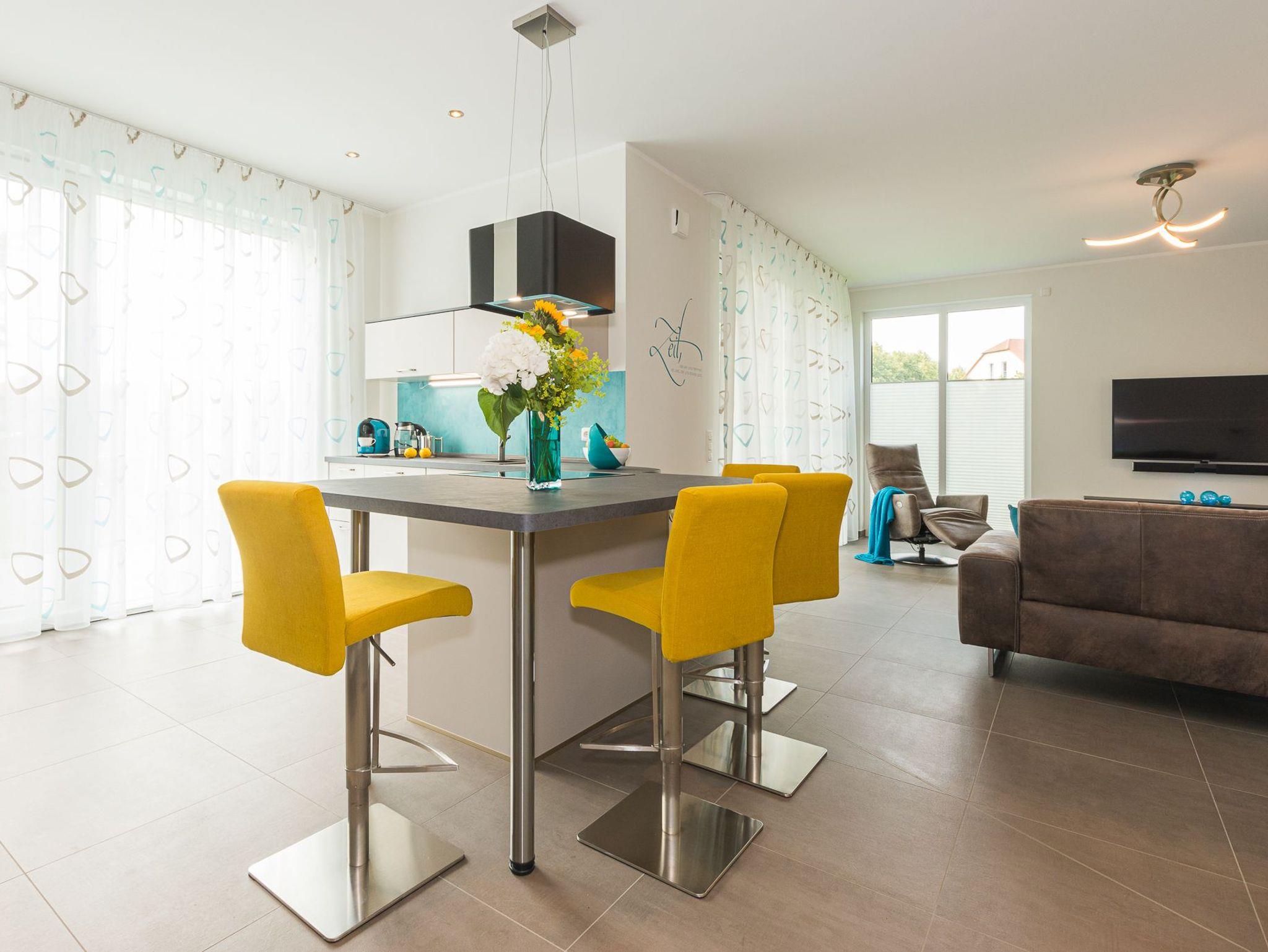 Mit 125m² Wohnfläche bietet diese Ferienwohnung viel Platz und eine großzügige Atmosphäre. Der offene Wohn- und Essbereich mit einem gemütlichen Gas-Kamin lädt zum Verweilen ein. Hier können Sie gemütliche Abende verbringen. Die beiden Schlafzimmer sind mit hochwertigen Boxspringbetten ausgestattet, um Ihnen erholsame Nächte zu garantieren. Die beiden Badezimmer bieten Ihnen Komfort und Luxus, eines davon verwöhnt Sie mit einer wohltuenden Sauna, in der Sie sich herrlich entspannen können.
