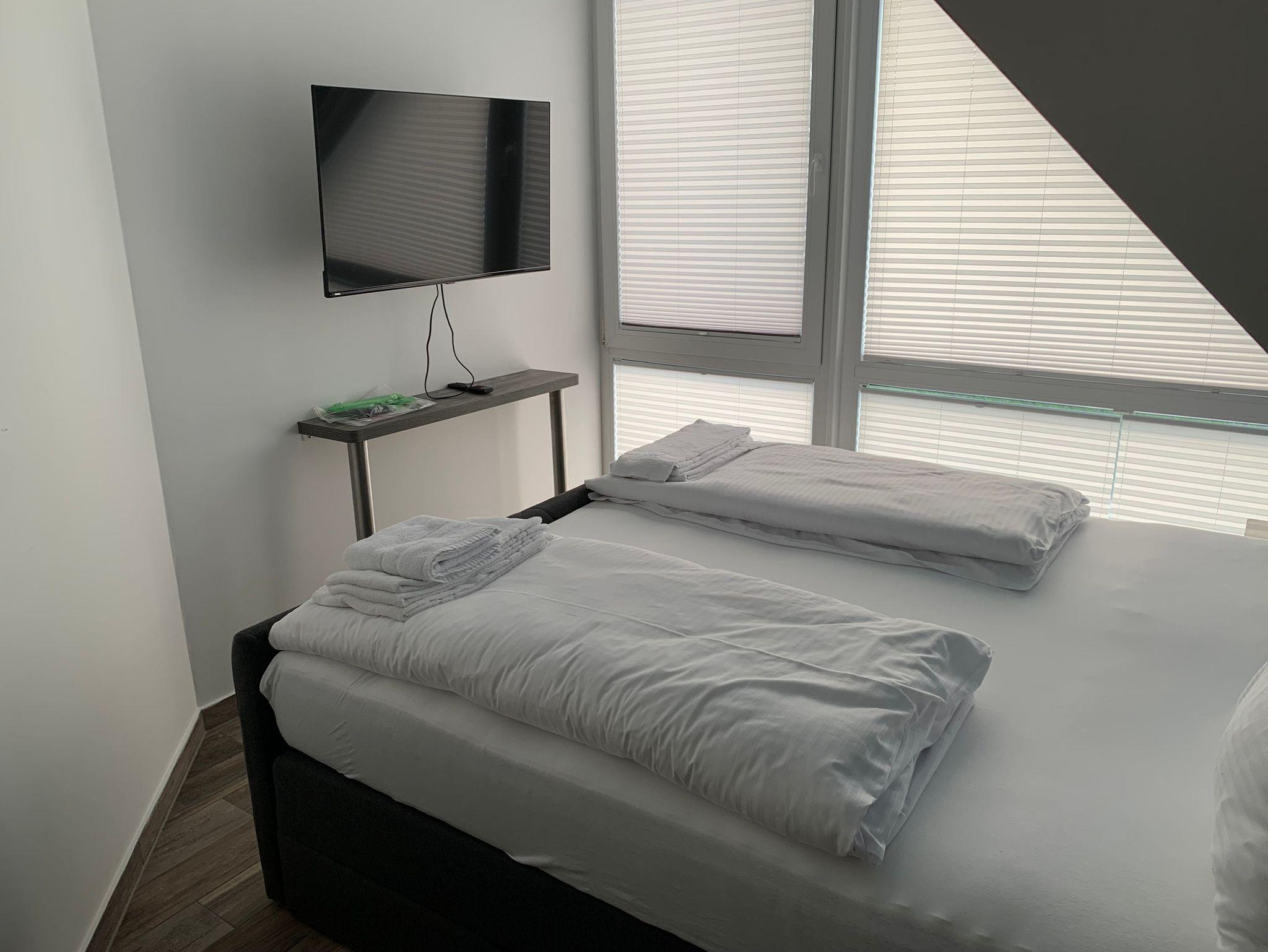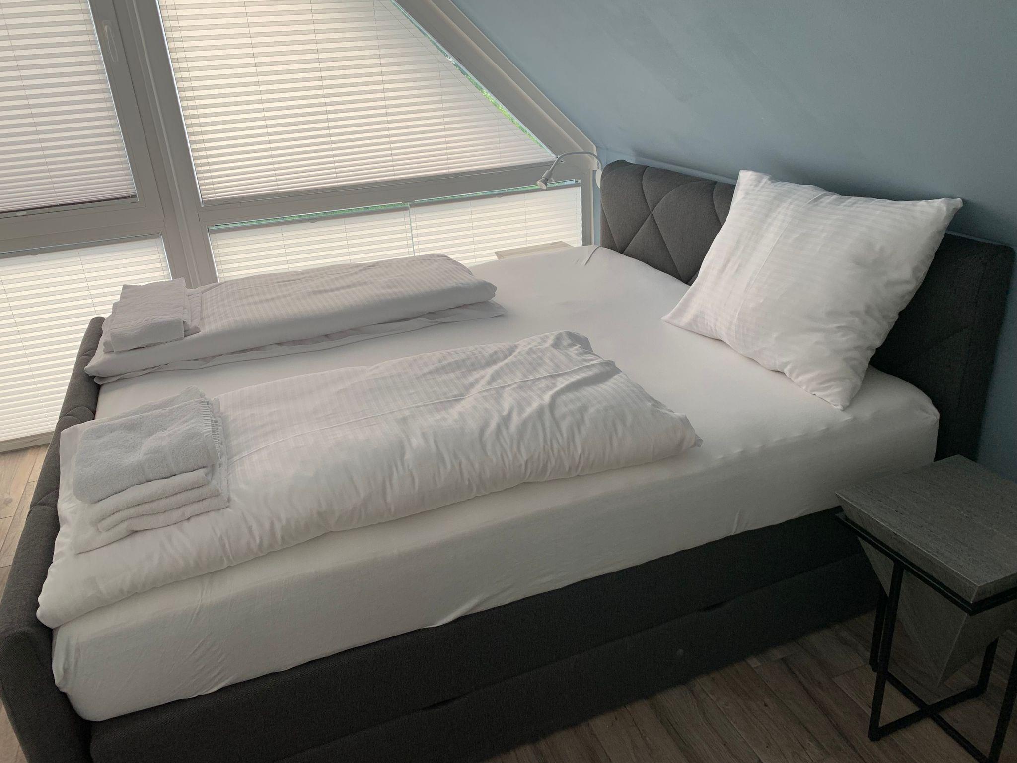 Die 3 Schlafzimmer verfügen ebenfalls alle über Flat-TV und sind jeweils mit 180 x 200 cm großen Boxspringbetten ausgestattet.
