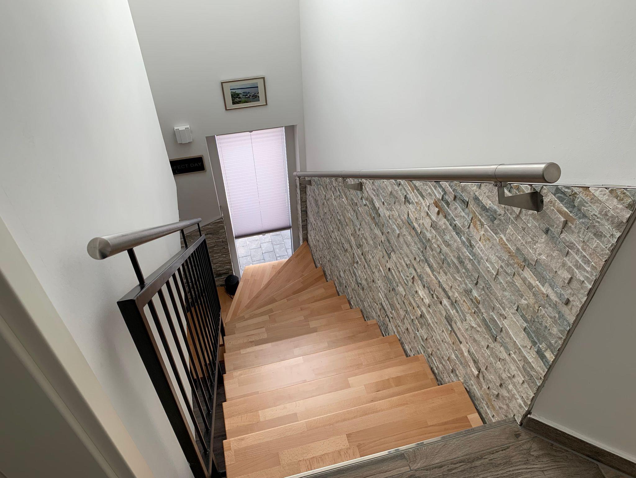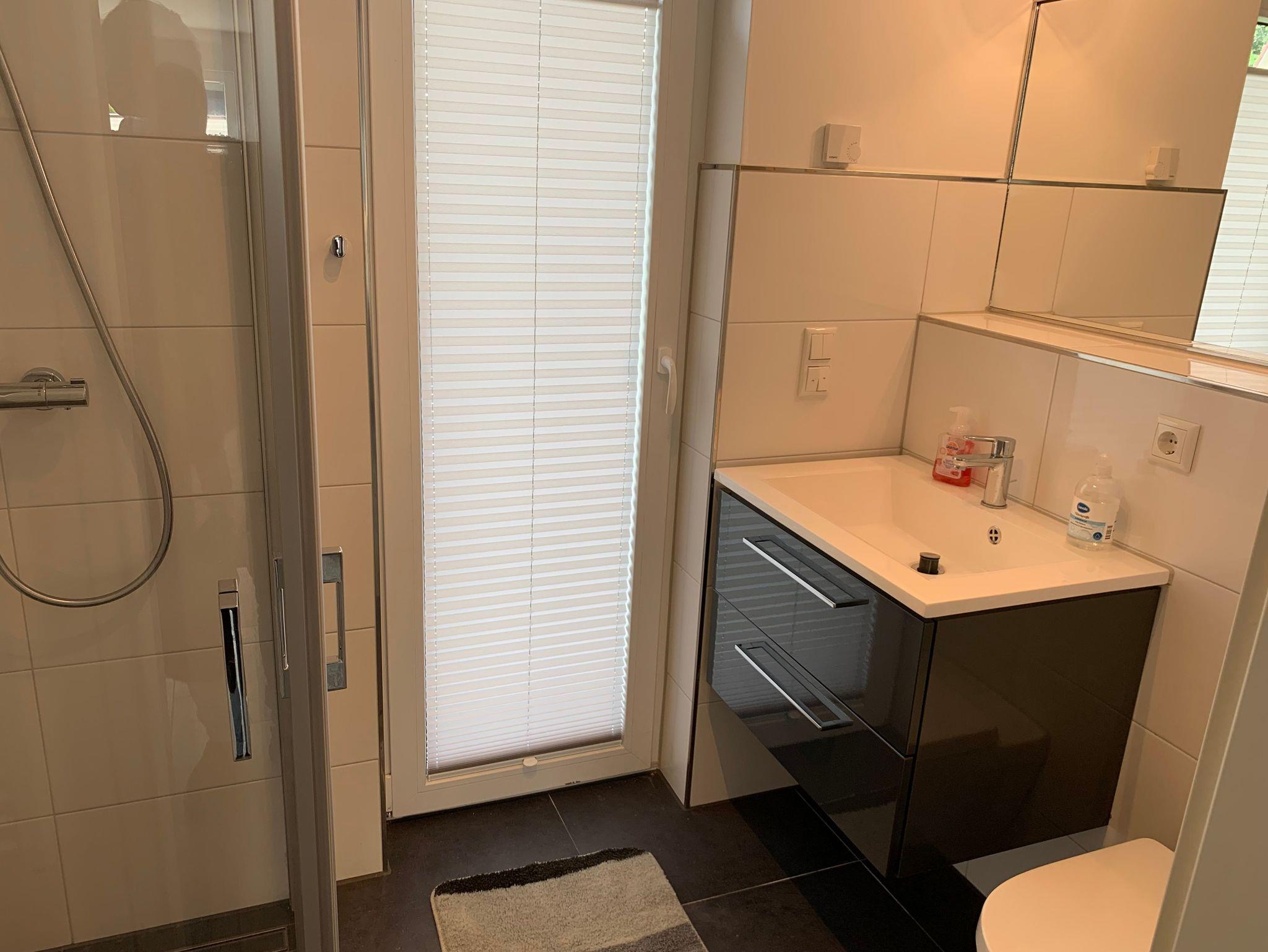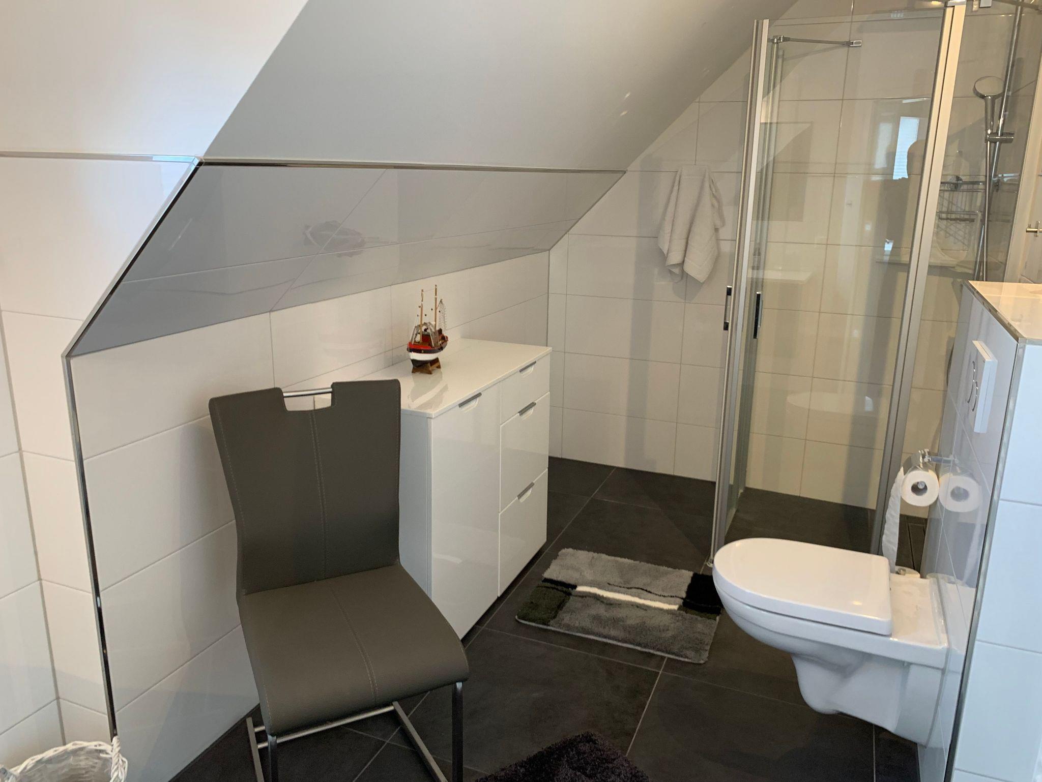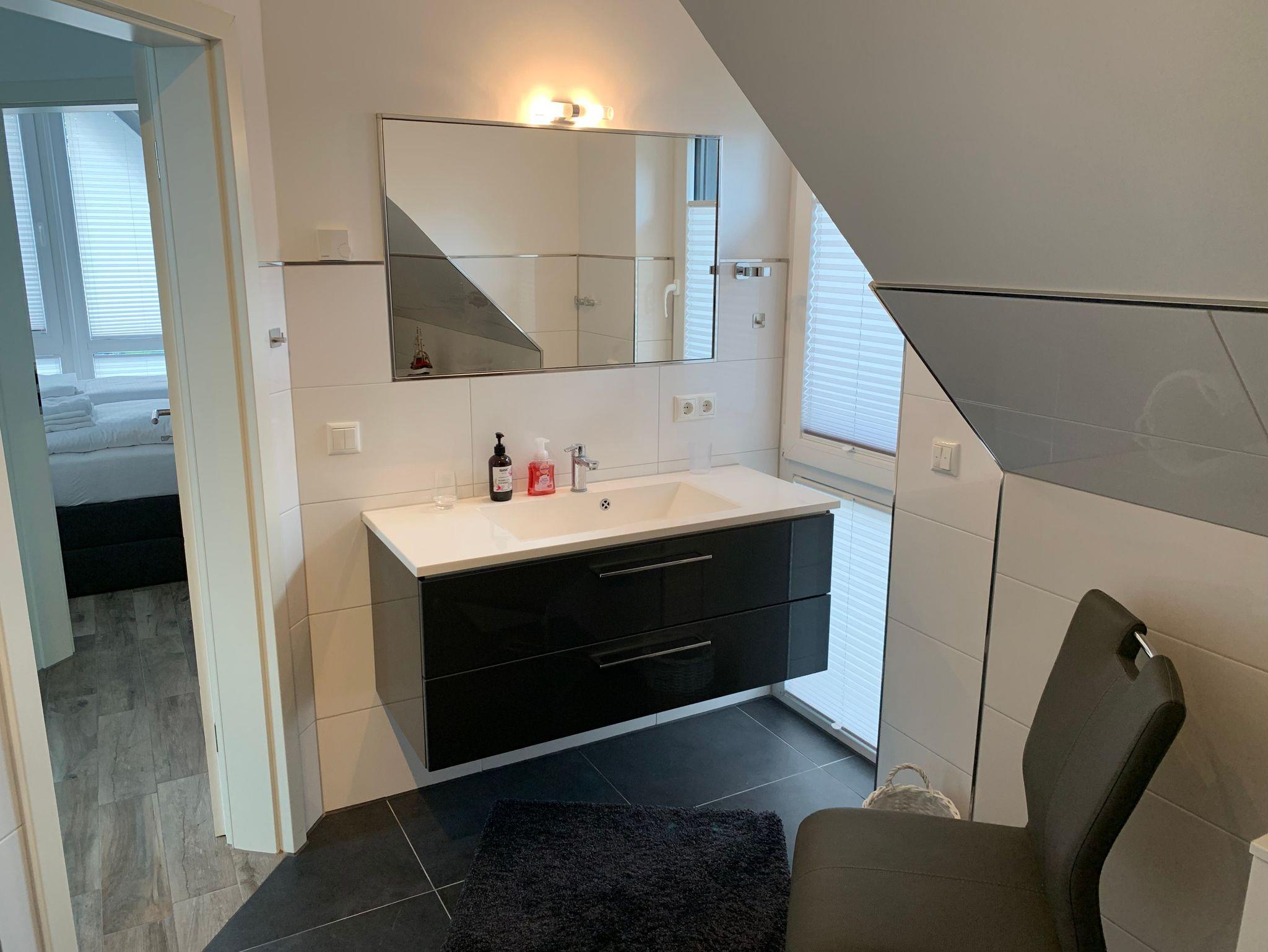 Die Bäder bieten moderne Waschtische und Raindanceduschen. Alle Räume werden über eine Fussbodenheizung beheizt..