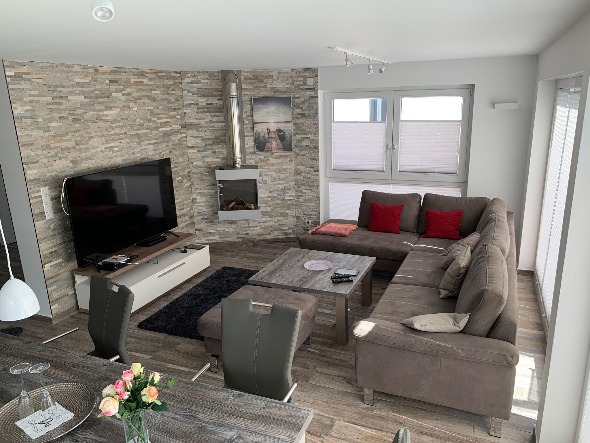Lässig auf dem Sofa liegend, kann man komplett entspannen mit Musik oder Sky TV und einem Gaskamin.