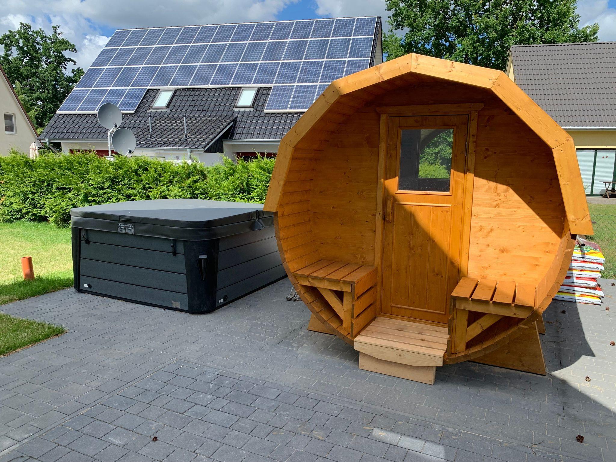 Der ganzjährig beheizte Außenwhirlpool mit 38 Grad Wassertemperatur und Hydromassagejets ist nur ein Highlight von vielen. In der Kombination Sauna, Gaskamin und Whirlpool wird Ihnen das Herz aufgehen.