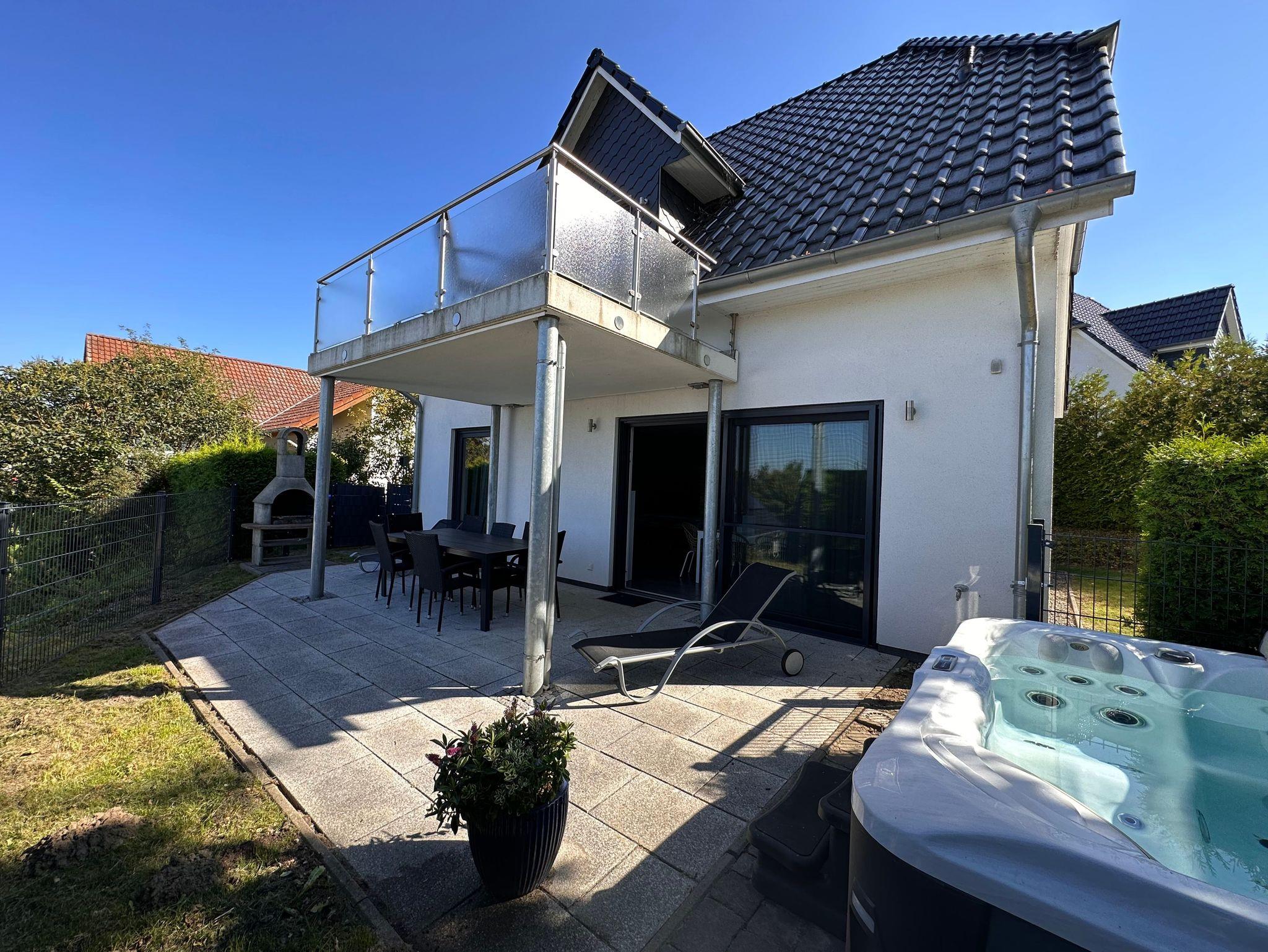 Unsere Luxus-Villa möchte mit 3 Schlafzimmern, 2 Bädern, Sauna & ganzjährigem 38 Grad Außenwhirlpool, und eingezäunten Garten bei Ihnen punkten.