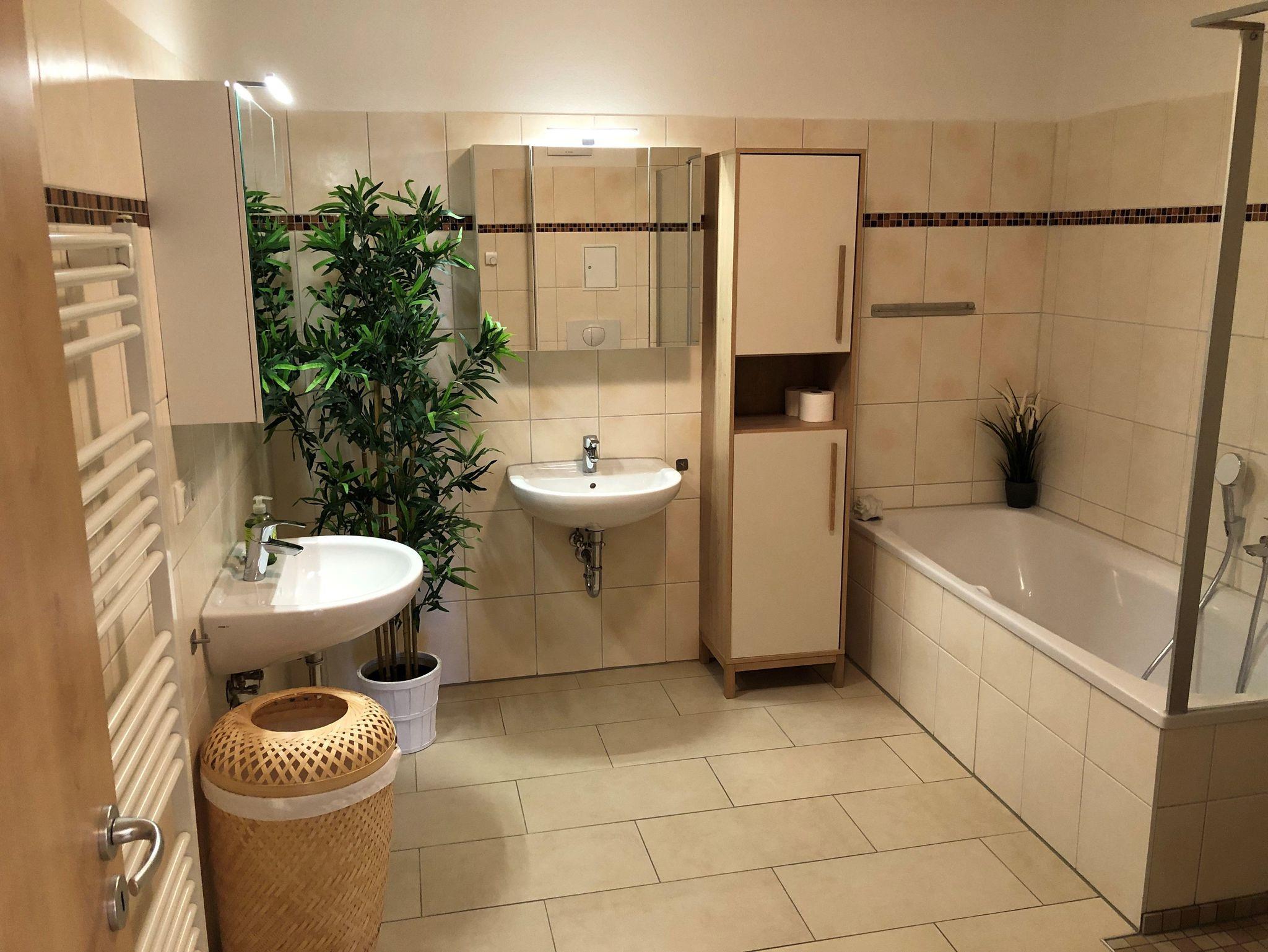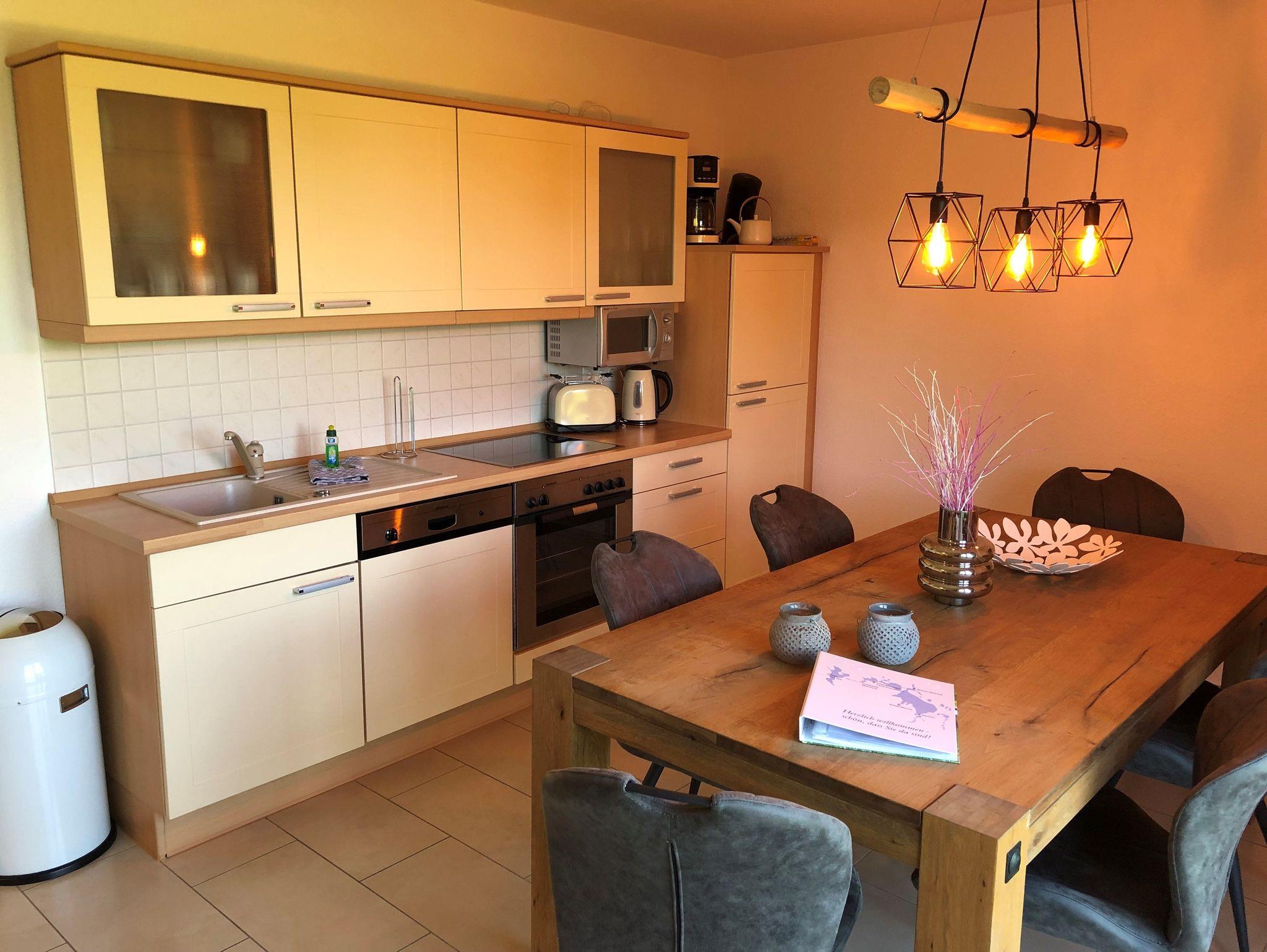 Auf großzügigen 90 m² erwartet Sie ein offener Wohn- und Essbereich mit integrierter Küche, der zu gemütlichen Stunden einlädt. Die Wohnung verfügt über zwei Schlafzimmer mit komfortablen Doppelbetten, ein Badezimmer mit Dusche und Badewanne sowie ein zusätzliches Gäste-WC.