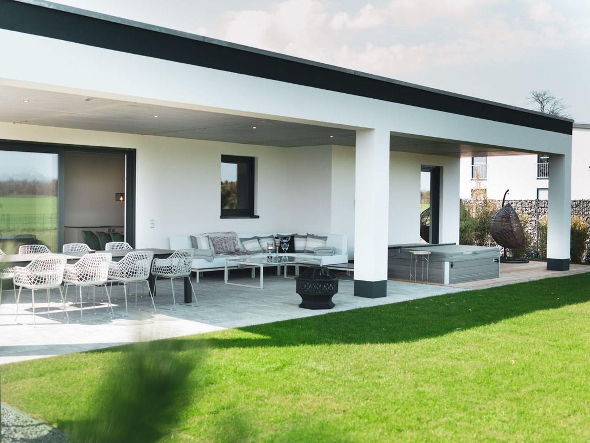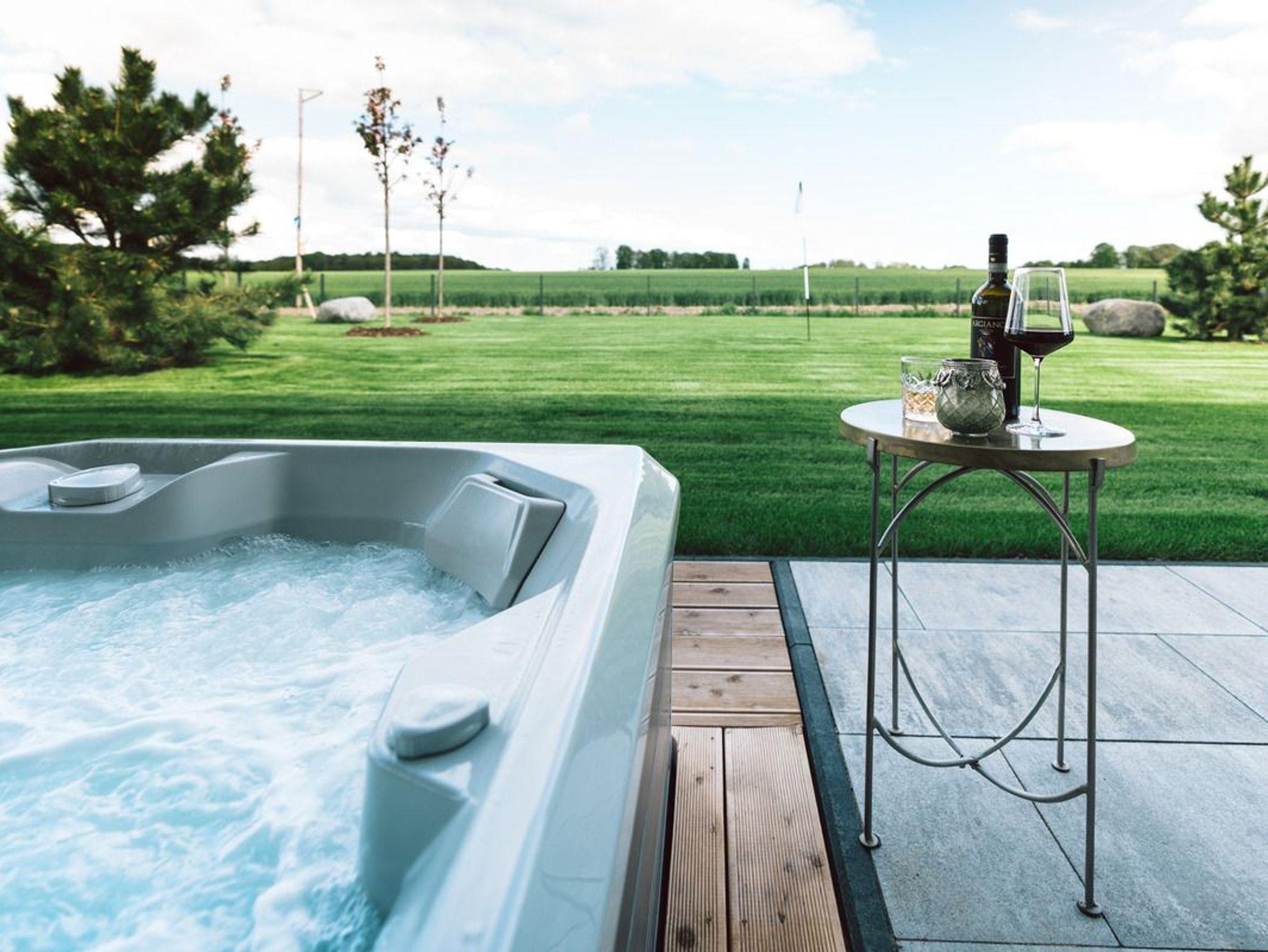 Der große und eingezäunte Garten bietet Ihnen mit einem überdachten Außen-Whirlpool, gemütlichen Lounge-Möbeln, Gartenliegen, einem Außengrill und einem großem Essbereich eine perfekte Umgebung, um die Natur zu genießen und zu entspannen.