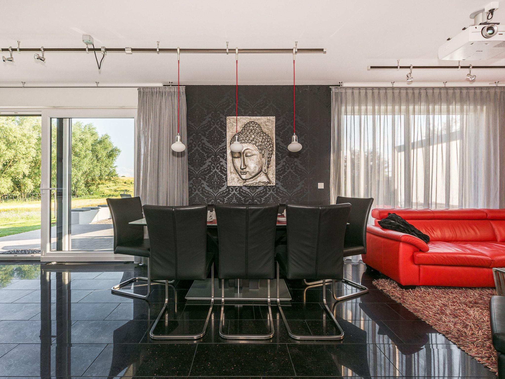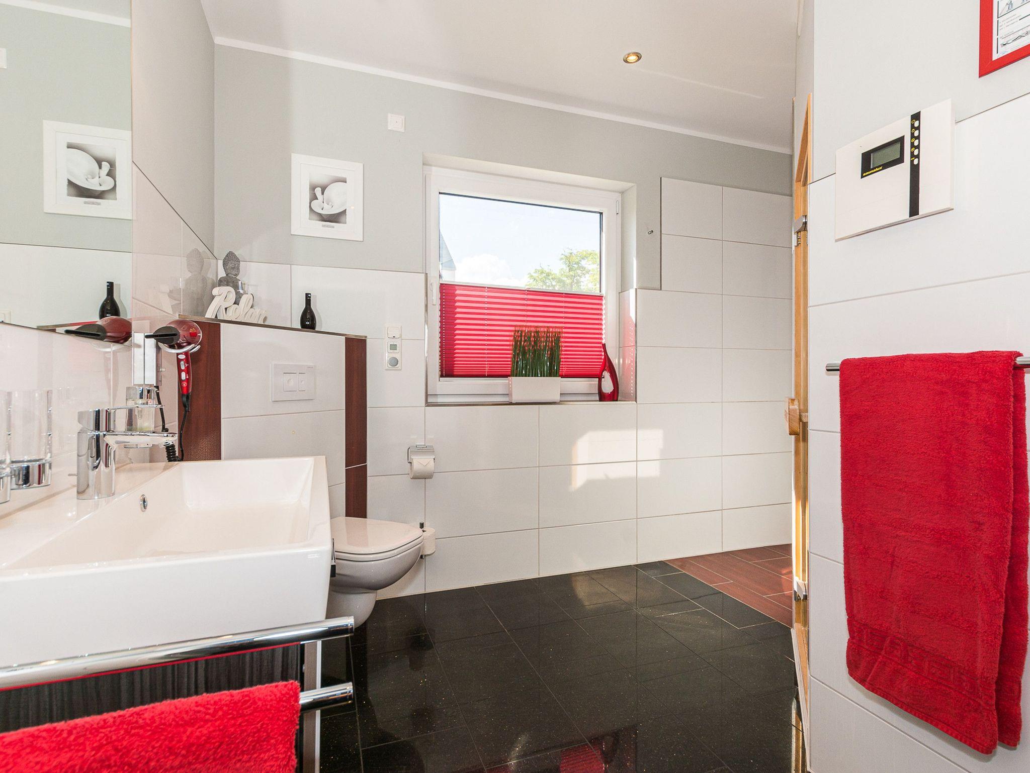 Mit großzügigen 150 m² Wohnfläche bietet dieses exklusive Ferienhaus den idealen Rückzugsort für einen unvergesslichen Urlaub. Der offene Wohn- und Essbereich mit einem gemütlichen Kamin lädt zum Entspannen und Genießen ein. Im Erdgeschoss erwartet Sie ein komfortables Schlafzimmer und ein Badezimmer mit einer Sauna. Hier können Sie sich herrlich erholen und den Alltagsstress hinter sich lassen. Das Obergeschoss bietet Ihnen drei weitere Schlafzimmer, von denen eines über ein eigenes Bad en Suite verfügt. Zusätzlich steht Ihnen ein weiteres Badezimmer zur Verfügung, um den Komfort für alle Gäste zu gewährleisten.