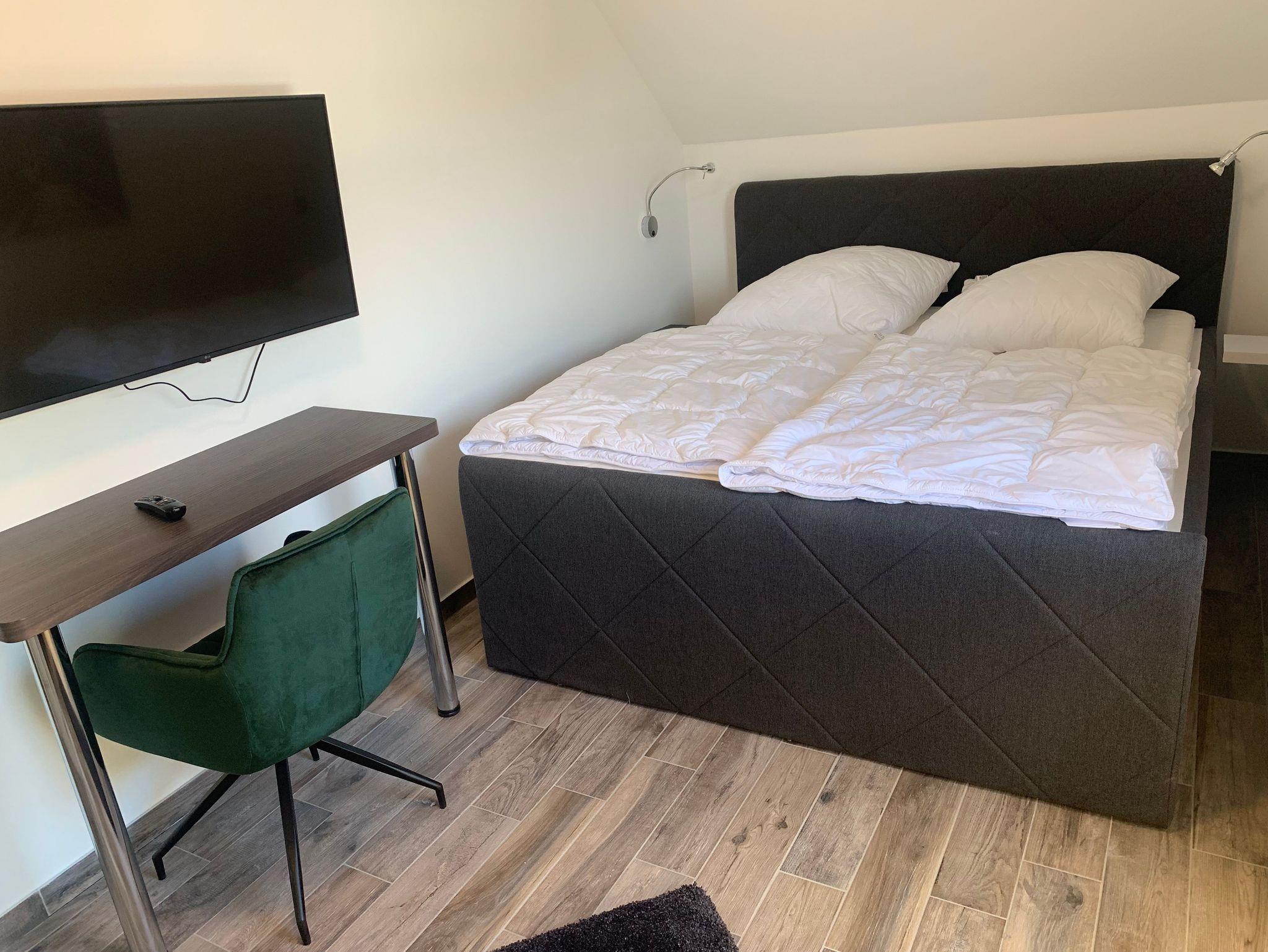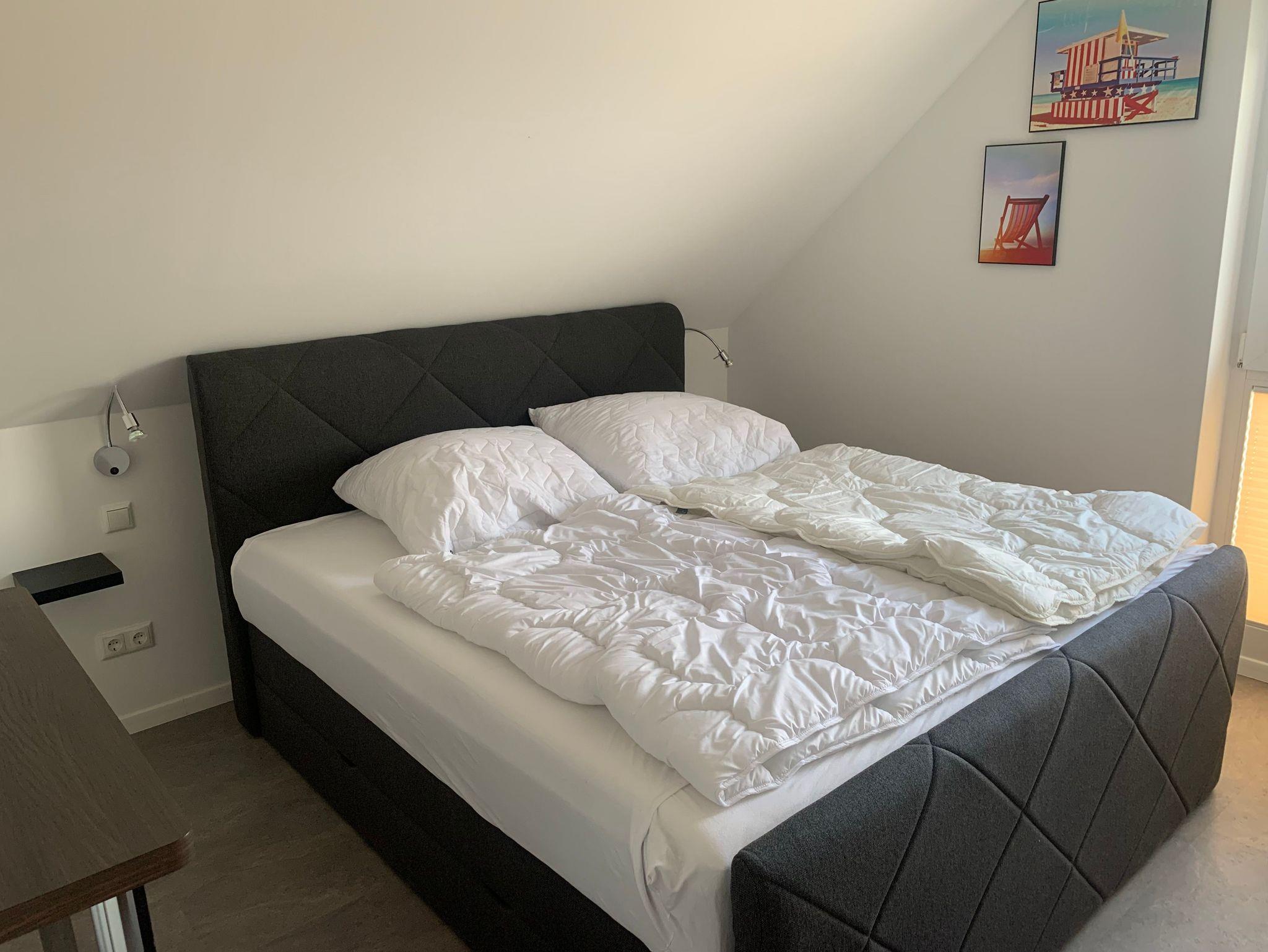 Die 4 Schlafzimmer verfügen ebenfalls alle über Flat-TV und sind jeweils mit 180 x 200 cm großen Boxspringbetten ausgestattet.
