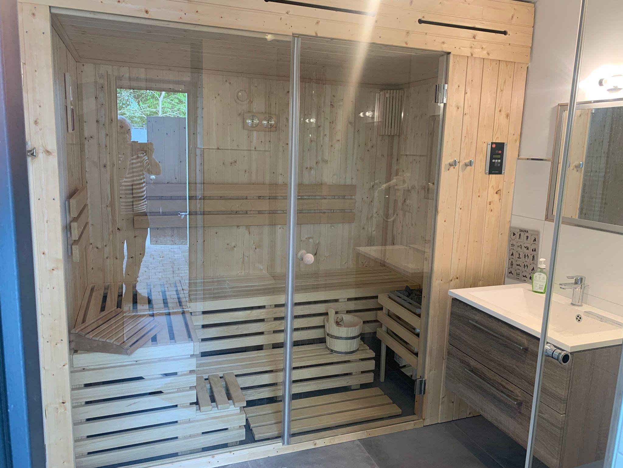 Die Bäder bieten moderne Waschtische und Raindanceduschen. Das große Bad verfügt zusätzlich über eine Sauna. Alle Räume werden über eine Fussbodenheizung beheizt..