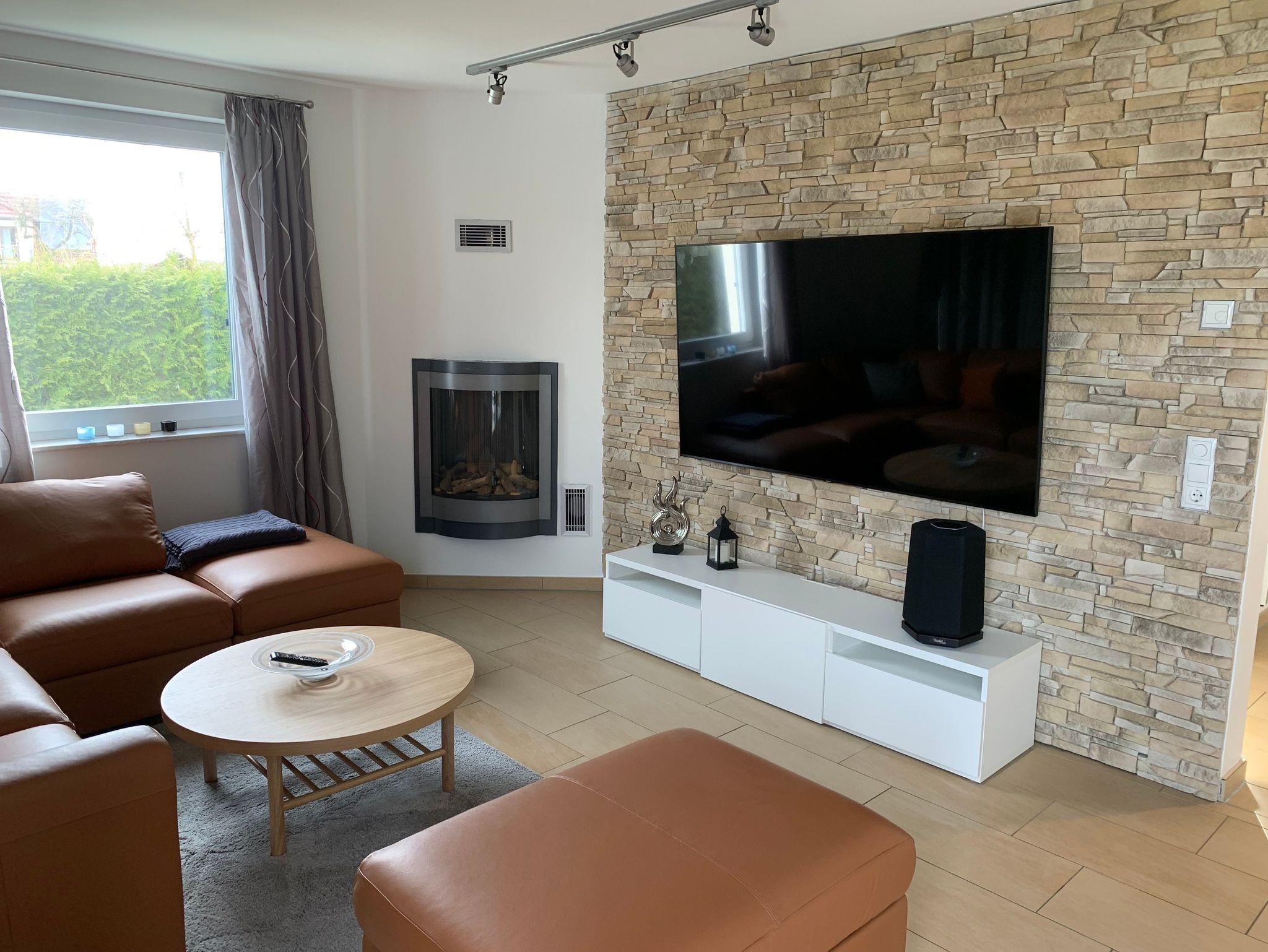 Lässig auf dem Sofa liegend, kann man komplett entspannen mit Musik oder Sky TV und einem Gaskamin.