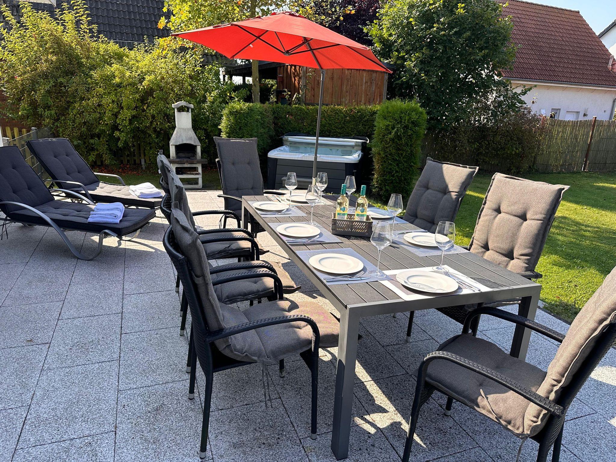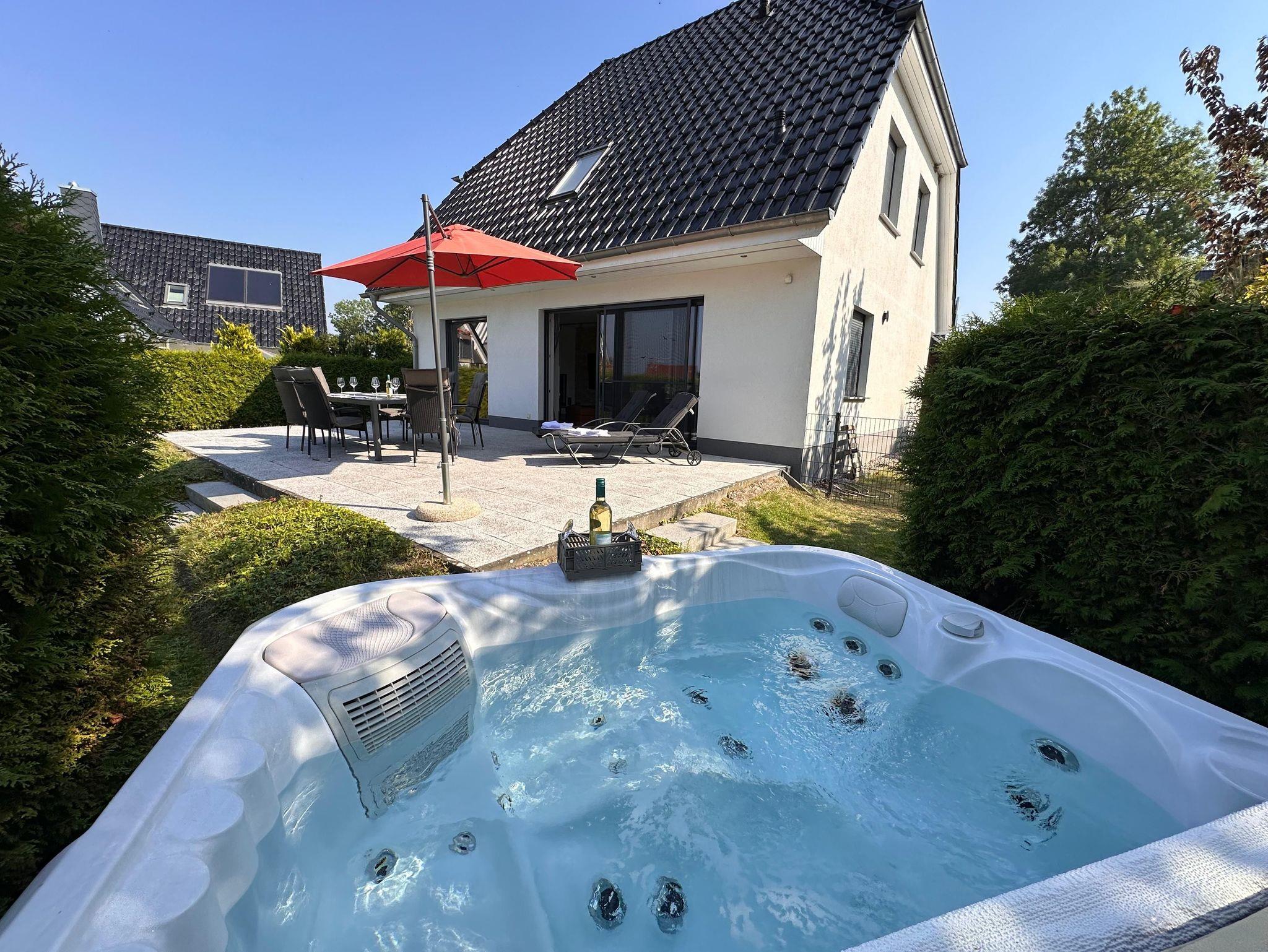 Der ganzjährig beheizte Außenwhirlpool mit 38 Grad Wassertemperatur und Hydromassagejets ist nur ein Highlight von vielen. In der Kombination Sauna, Gaskamin und Whirlpool wird Ihnen das Herz aufgehen.
