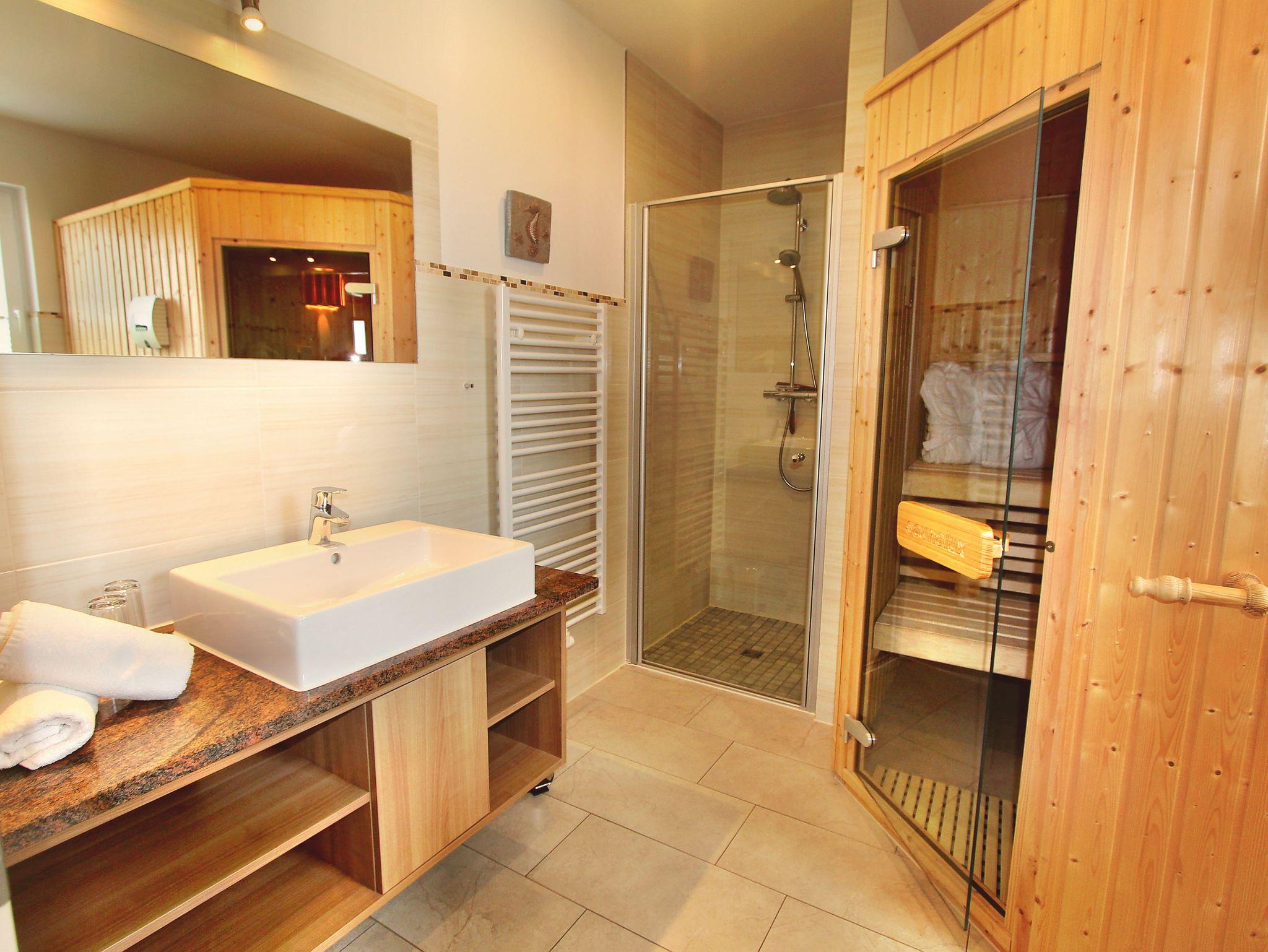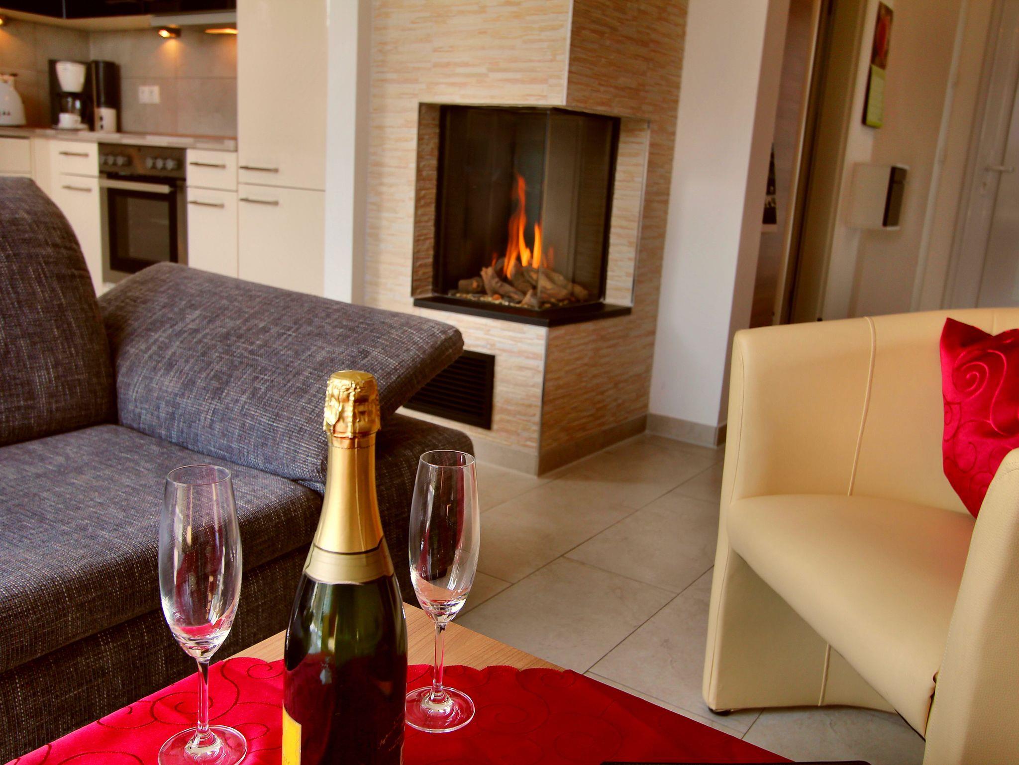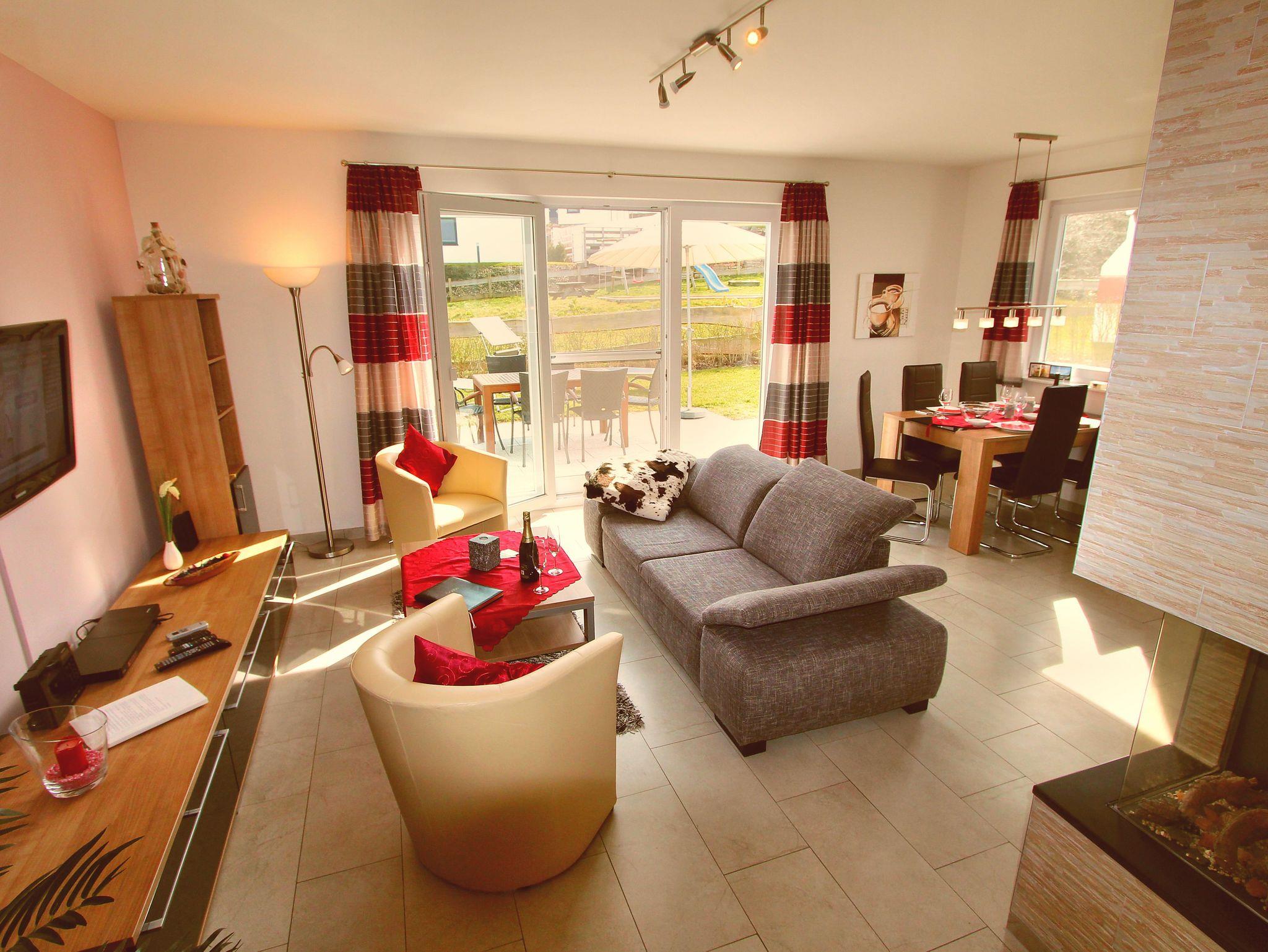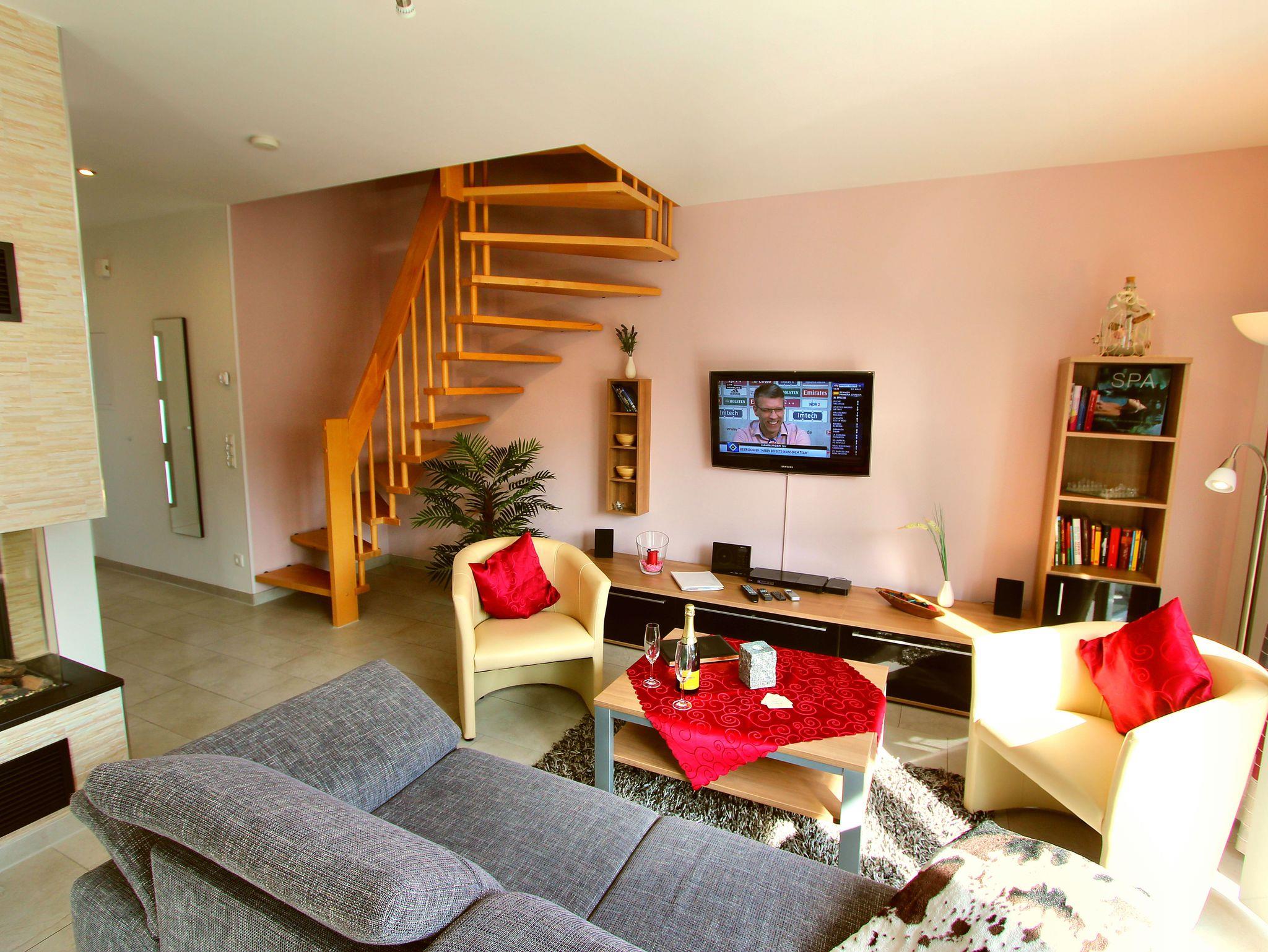 Der offene Wohnbereich lädt zum Verweilen und Entspannen ein. Hier können Sie gemütliche Stunden vor dem Gas-Kamin verbringen und den Tag ausklingen lassen. Das Ferienhaus erstreckt sich über zwei Etagen und verfügt über 2 liebevoll gestaltete Schlafzimmer, in denen Sie erholsame Nächte verbringen können. Hier können Sie sich zurückziehen und zur Ruhe kommen. Zudem stehen Ihnen 2 moderne Badezimmer zur Verfügung, eines davon mit einer Sauna. Hier können Sie sich wohltuend entspannen und neue Energie tanken.
