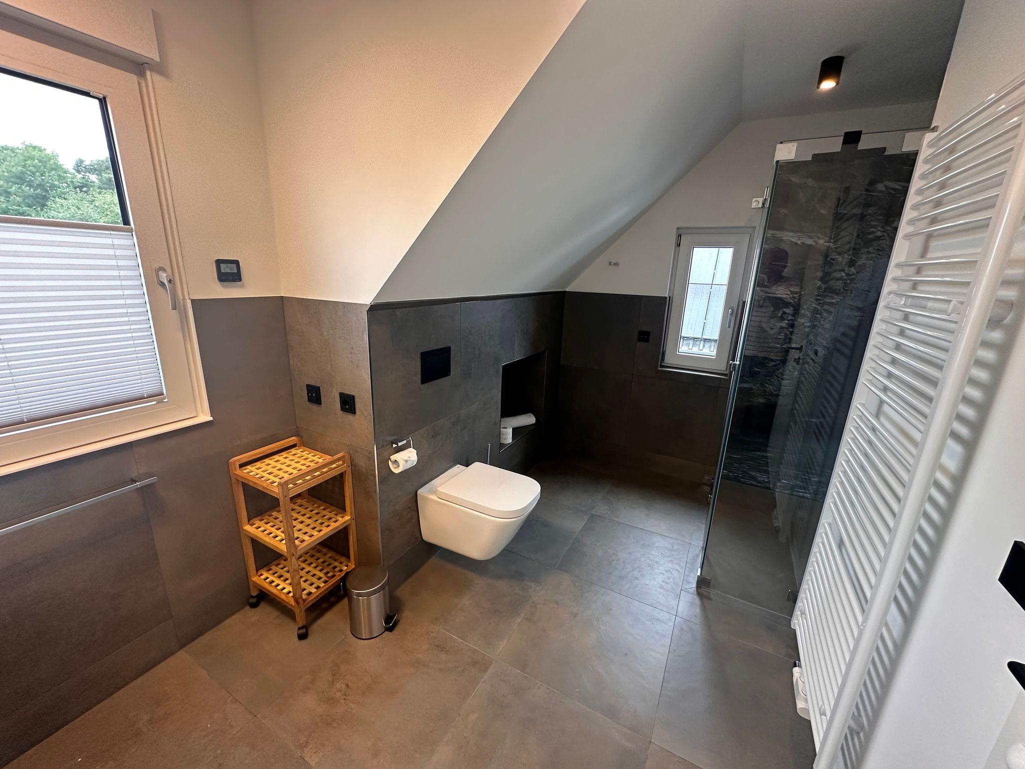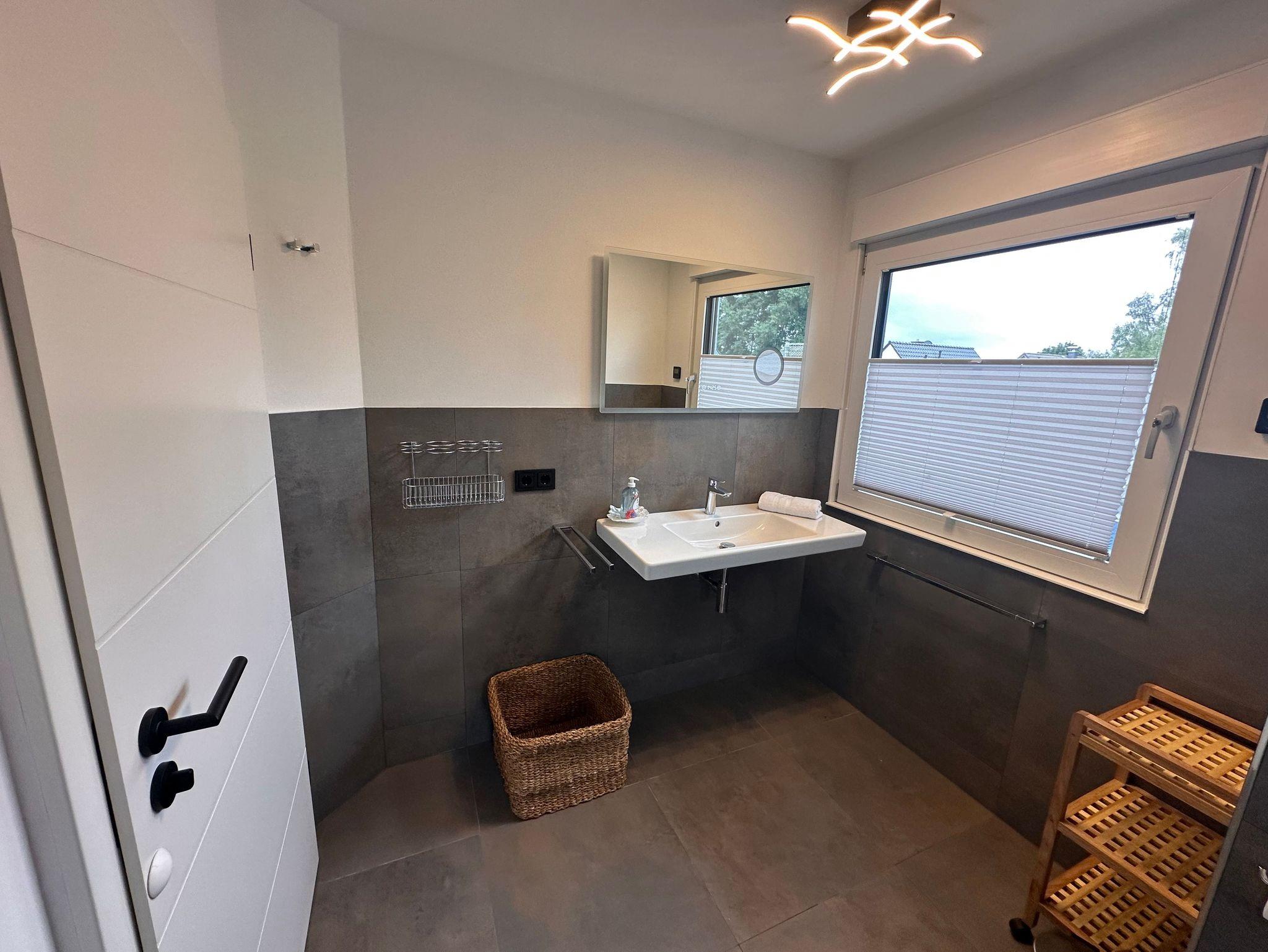 Die Bäder bieten moderne Waschtische und Raindanceduschen. Alle Räume werden über eine Fussbodenheizung beheizt..