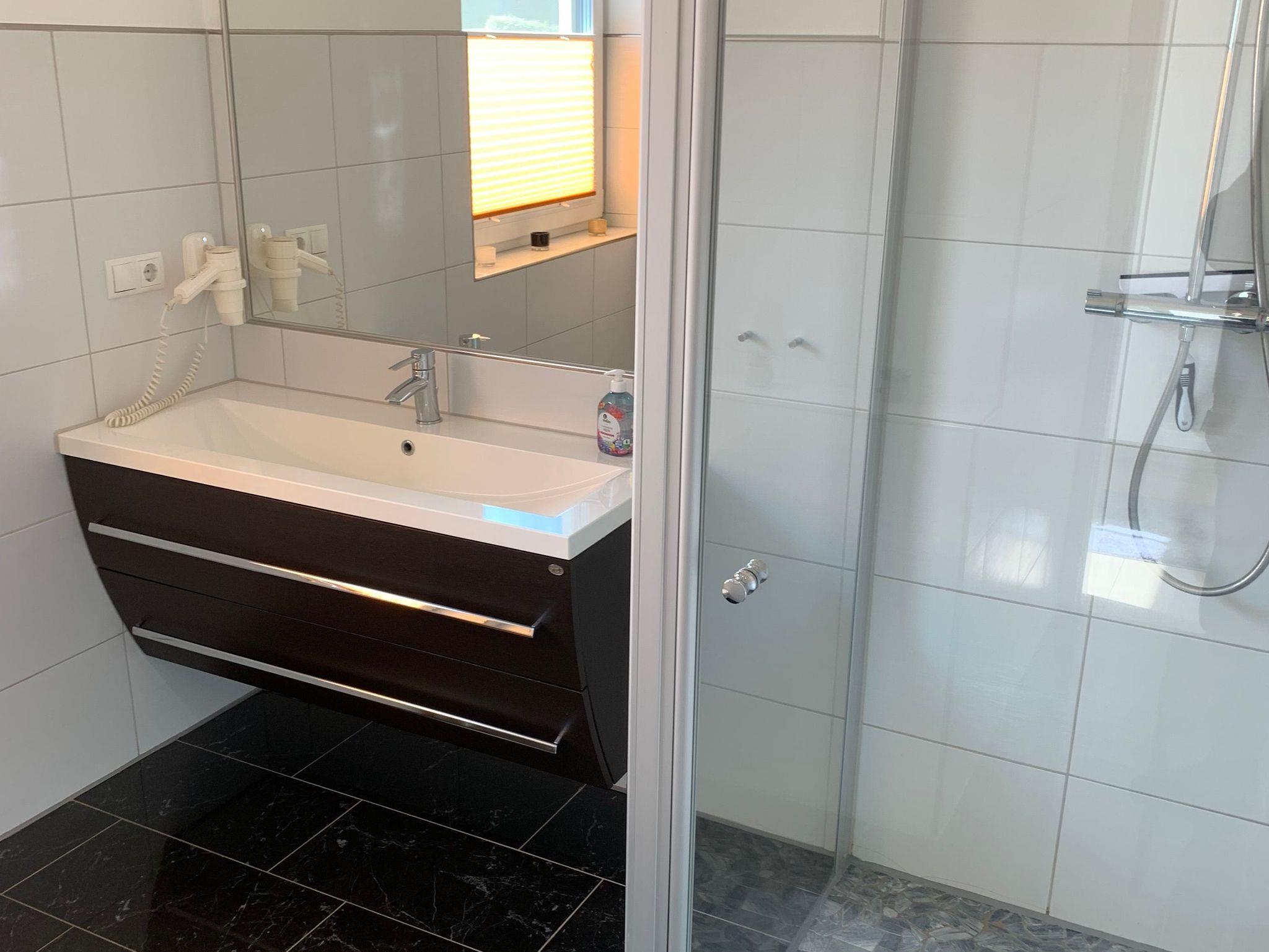 Die Bäder bieten moderne Waschtische und Raindanceduschen. Das große Bad verfügt zusätzlich über eine Sauna. Alle Räume werden über eine Fussbodenheizung beheizt..
