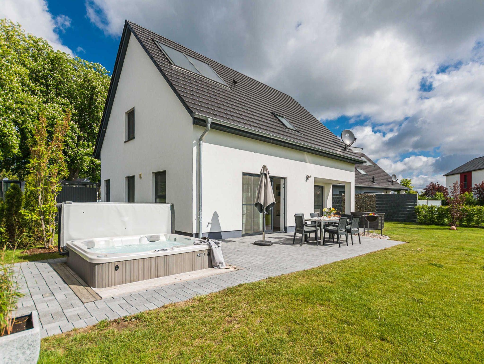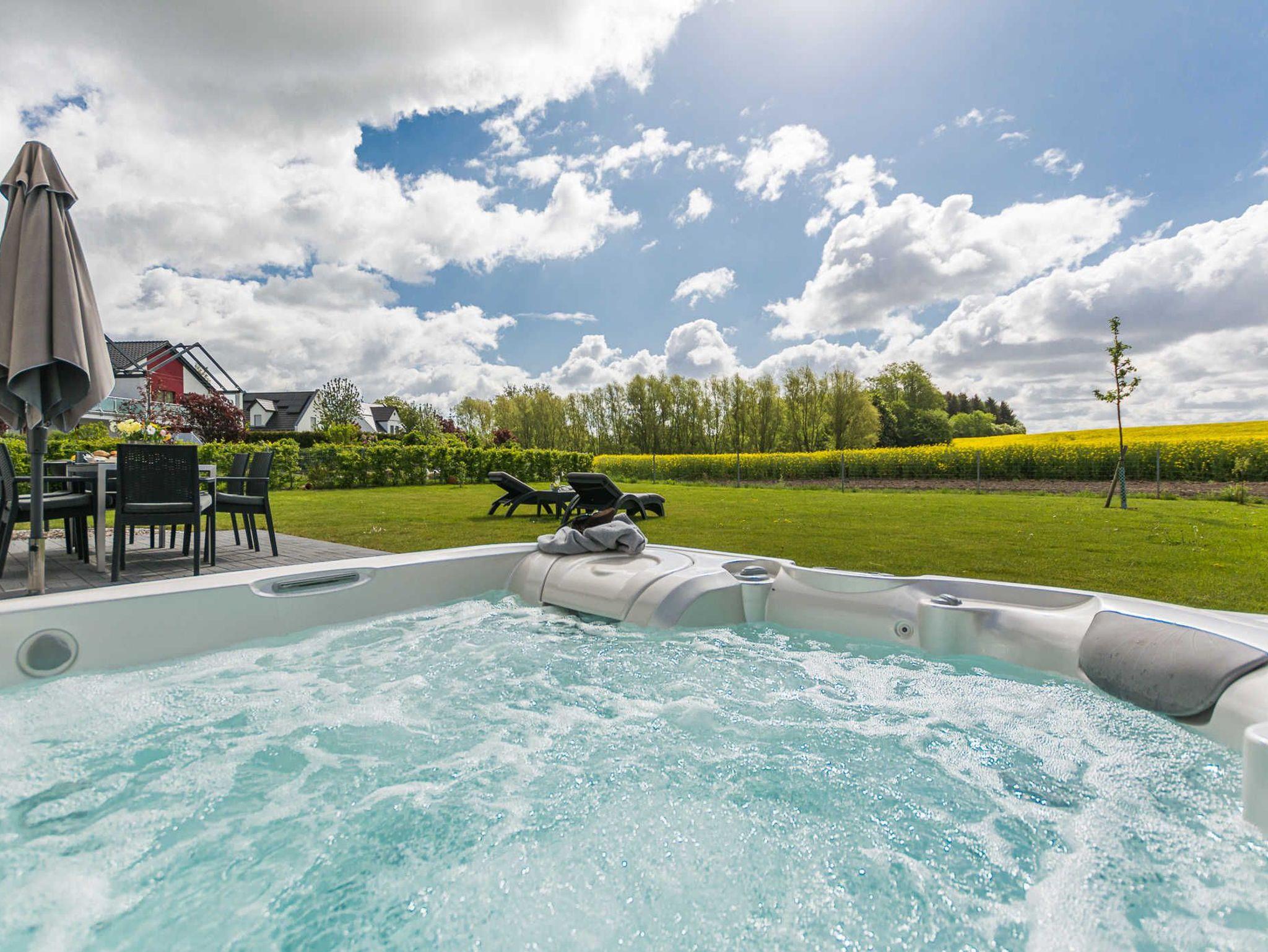 Der große eingezäunte Garten mit einer Fläche von 450 Quadratmetern bietet Ihnen und Ihrer Familie oder Freunden viel Platz zum Entspannen und Genießen. Ein besonderes Highlight ist der Außenwhirlpool, der sich im Garten befindet. Hier können Sie sich im warmen Wasser entspannen und die Aussicht auf den Garten genießen.