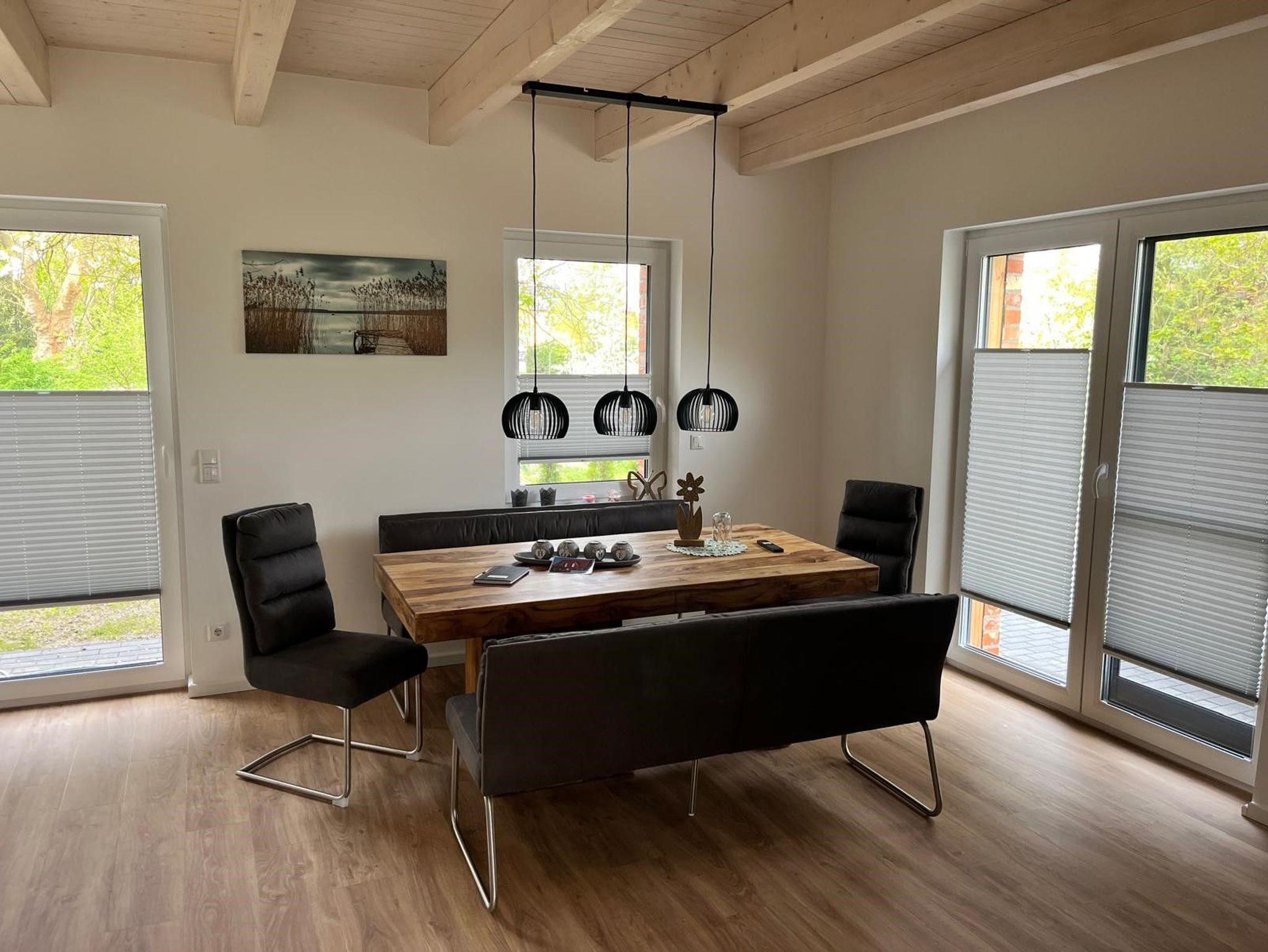 Das Haus verfügt über drei gemütliche Schlafzimmer, die jeweils mit bequemen Betten und ausreichend Stauraum ausgestattet sind. Der offene Wohnbereich ist modern und stilvoll eingerichtet. Große Fenster bieten einen wunderbaren Blick ins Freie und lassen viel Licht herein. Die voll ausgestattete Küche lässt keine Wünsche offen und ermöglicht Ihnen die Zubereitung Ihrer Lieblingsgerichte.