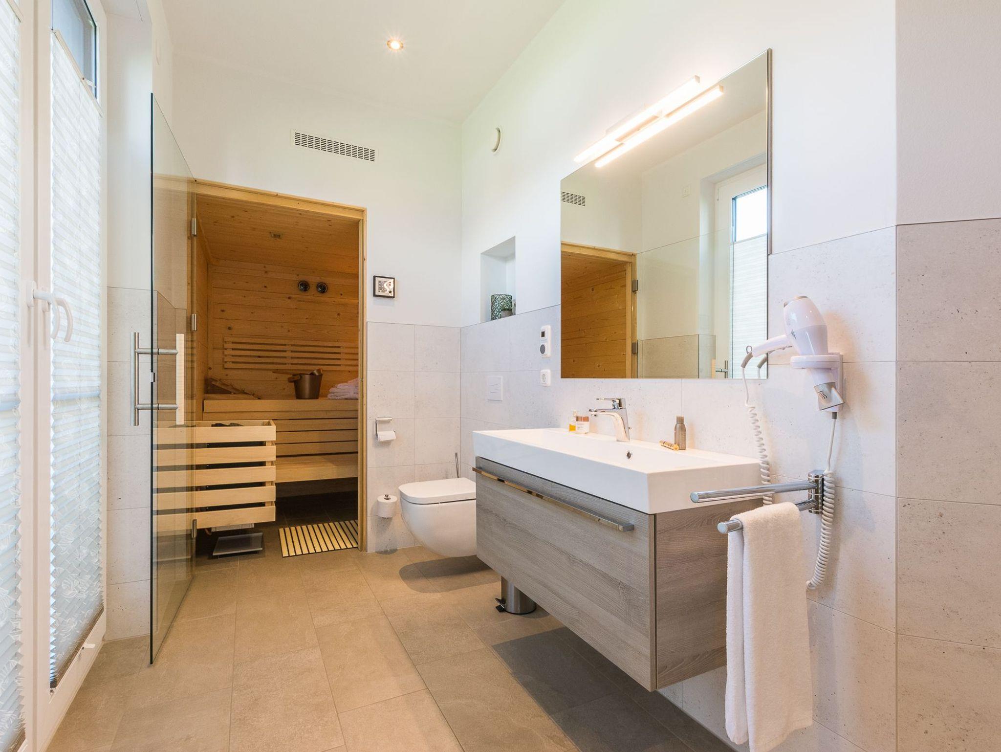 Mit 125m² Wohnfläche bietet diese Ferienwohnung ausreichend Platz für die ganze Familie. Der offene Wohn- und Essbereich ist der ideale Ort, um gemeinsame Momente zu verbringen. Die vollausgestattete Küche ermöglicht es Ihnen, leckere Mahlzeiten zuzubereiten und gemeinsam zu genießen. Die Ferienwohnung verfügt über zwei Badezimmer, von denen eines mit einer Sauna ausgestattet ist. Hier können Sie sich nach einem aktiven Tag herrlich entspannen und neue Energie tanken.