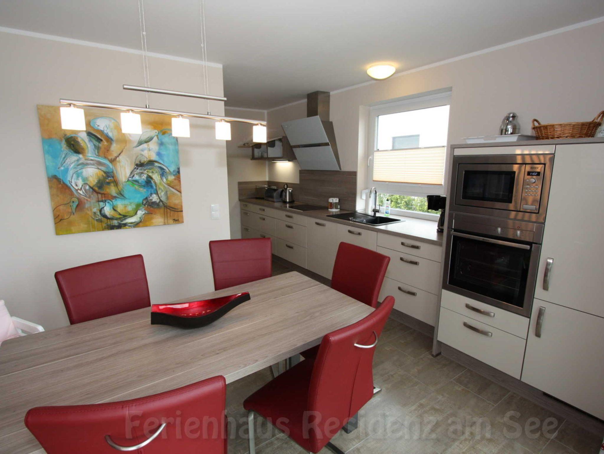 Das Ferienhaus Residenz am See, liegt nur 50 m vom Fleesensee entfernt und bietet Ihnen hohen Wohnkomfort auf ca. 145 m². Genießen Sie bei uns einen wunderbar erholsamen Urlaub. Im Erdgeschoss befindet sich der großzügig gestaltete Wohn-Essbereich mit offener Küche. Im Wohnraum finden Sie eine große Couch sowie einen per Knopfdruck steuerbaren Gaskamin für wohlige Wärme und eine gemütliche Atmosphäre. Ebenso ist der Raum ausgestattet mit einem DVD-Player, Hi-Fi Anlage, Sat TV. Für gemütliche Abende haben wir einige Bücher, DVDs und Spiele für Sie bereitgestellt. Der Essbereich verfügt über einen Tisch und Sitzgelegenheiten für 6 Personen. Als Service erhalten Sie, soweit verfügbar, als kostenfreie Leistung W-Lan.(Glasfaseranschluss). Es wird eine Kaution in Höhe von 200 fällig. Diese ist bei der Restzahlung zu leisten und wird nach Prüfung der Endreinigung zurückerstattet. Die Kurtaxe ist ebenfalls mit der Restzahlung zu entrichten.