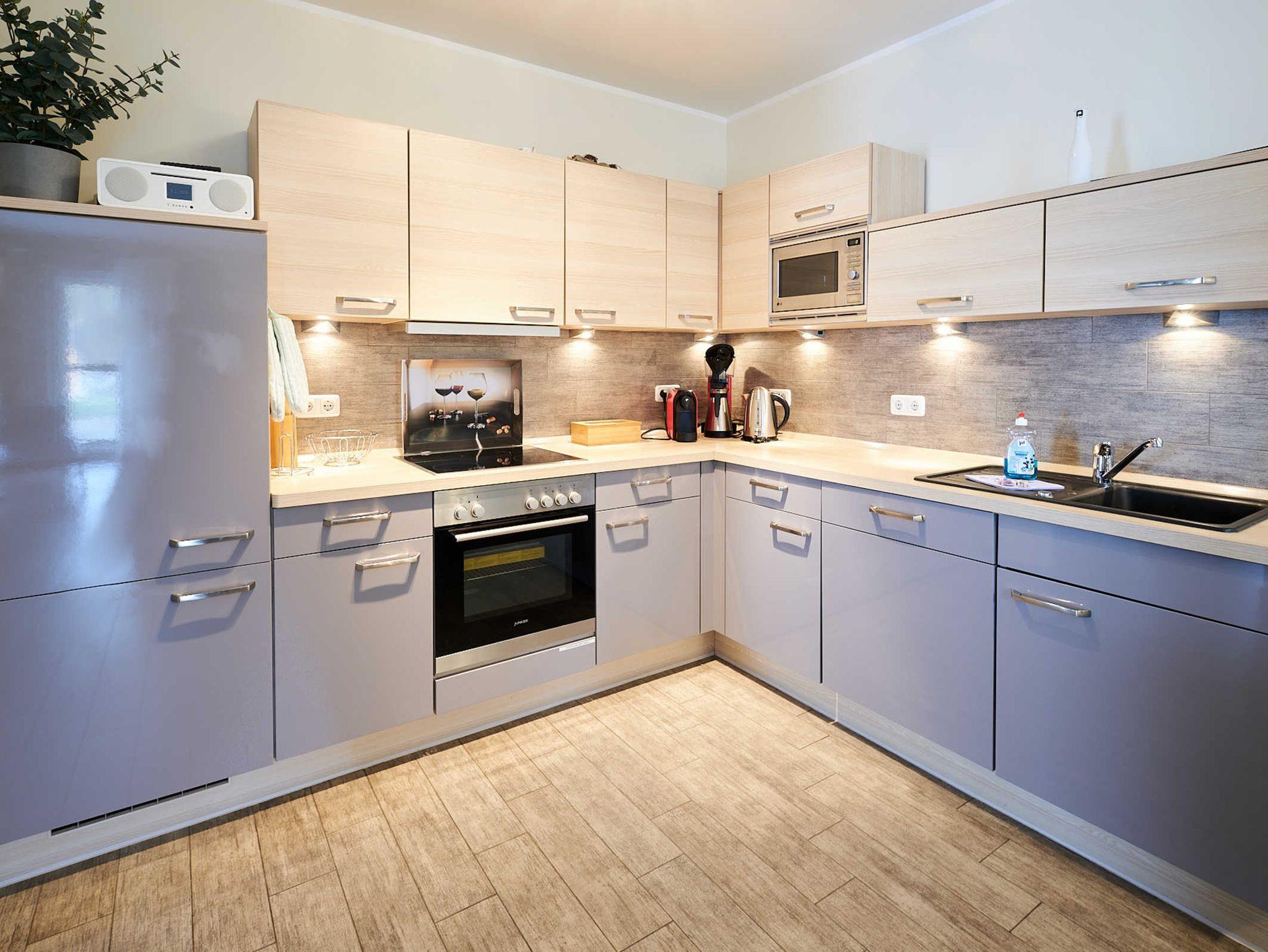 Voll ausgestattete Gourmet-Küche mit Ofen, Mikrowelle, Kühl-/Gefrierschrank, Geschirrspülmaschine