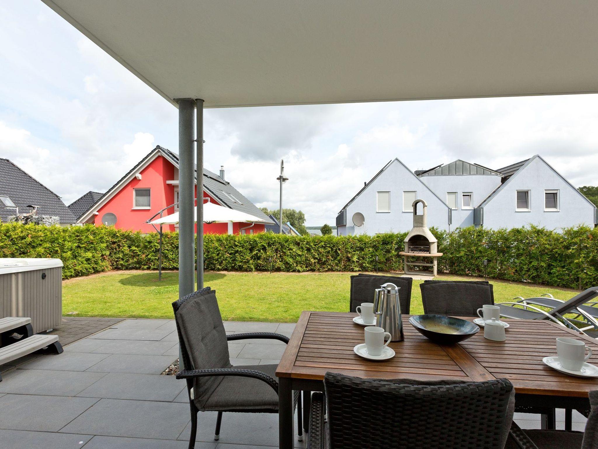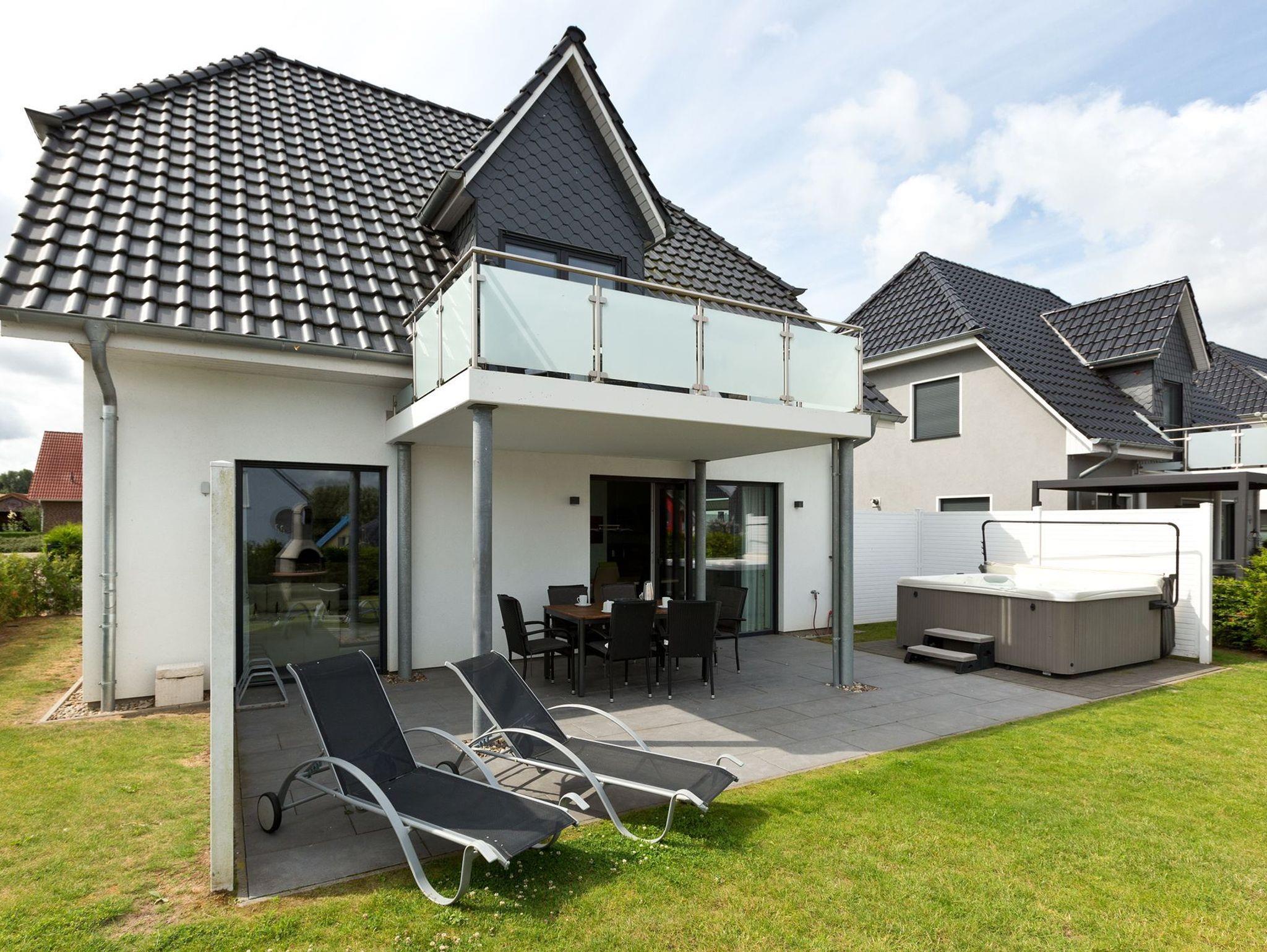 Unser Ferienhaus lädt zum Wohlfühlen für die ganze Familie ein. Vom kombinierten Wohn-Essbereich mit hochmoderner Einbauküche betreten Sie die große möblierte Sonnenterrasse mit Whirlpool. In Ihrem Garten warten eine Sonnenliegen und ein Sonnenschirm auf Sie.