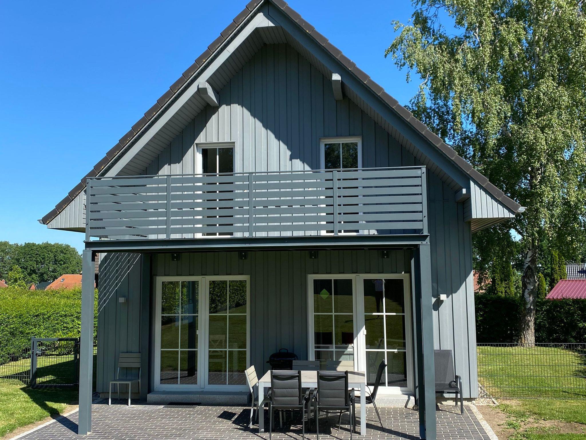 Modernes Ferienhaus für 6 Personen mit 3 Schlafzimmern, 2 Duschbädern mit WC, Wohn/-Esszimmer mit Küche und HWR. Ein großzügiger Garten mit Terrasse, Gartenmöbeln und Grill steht Ihnen zur freien Verfügung.