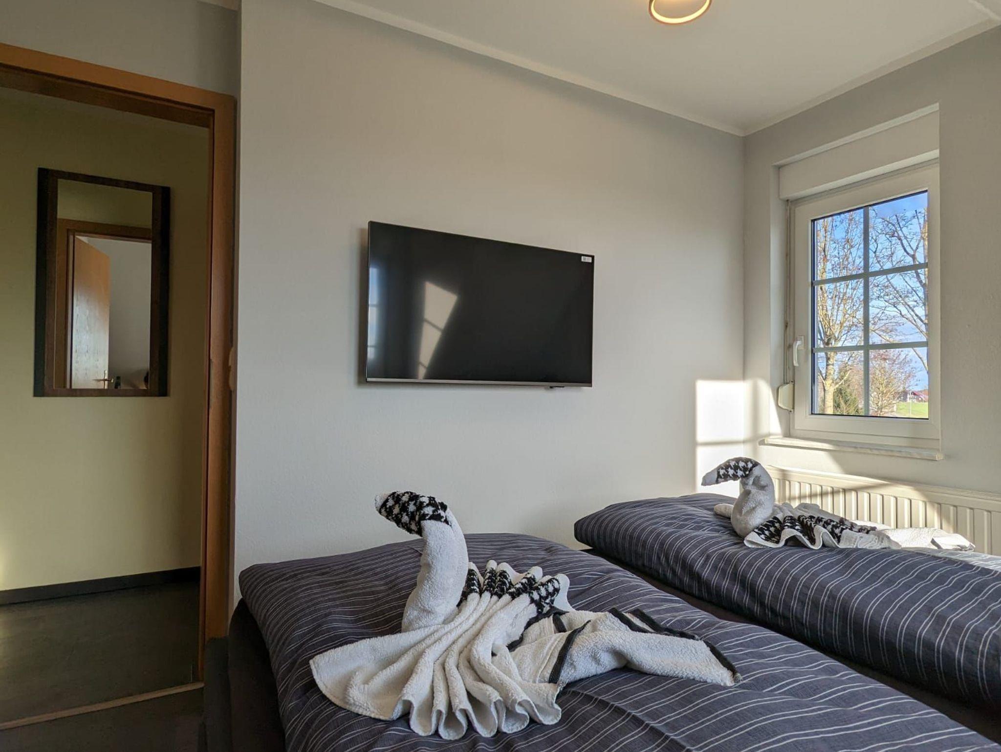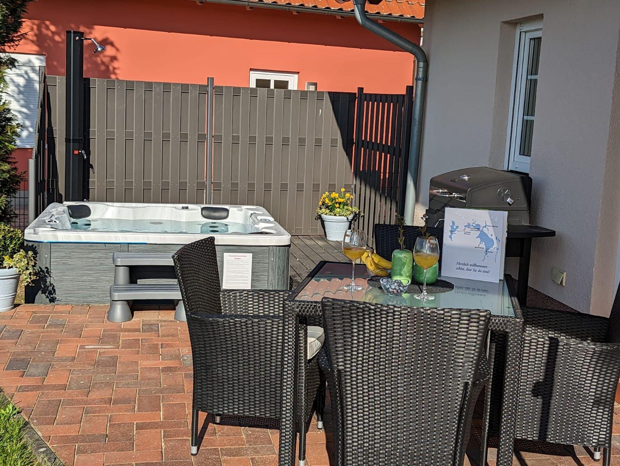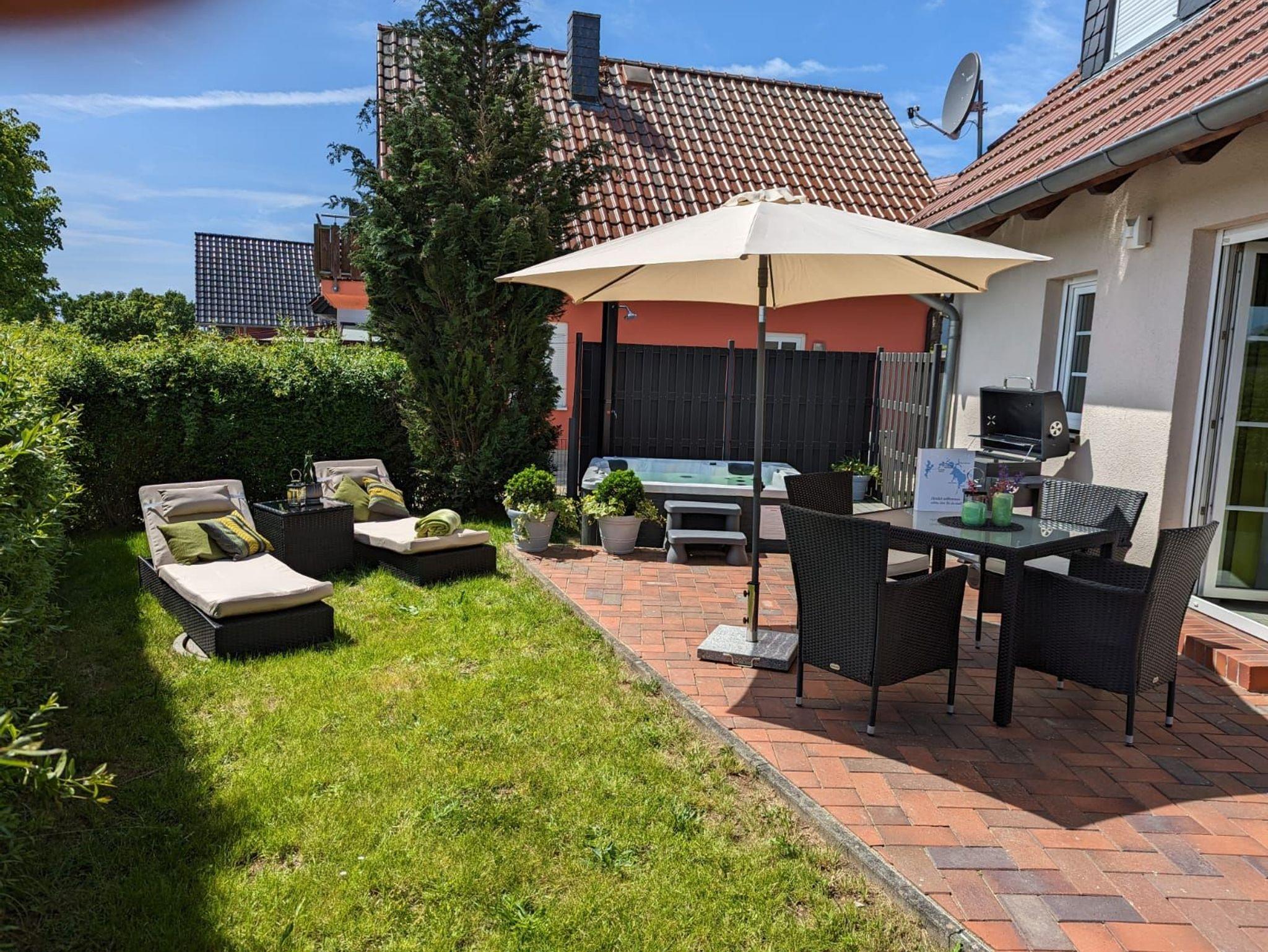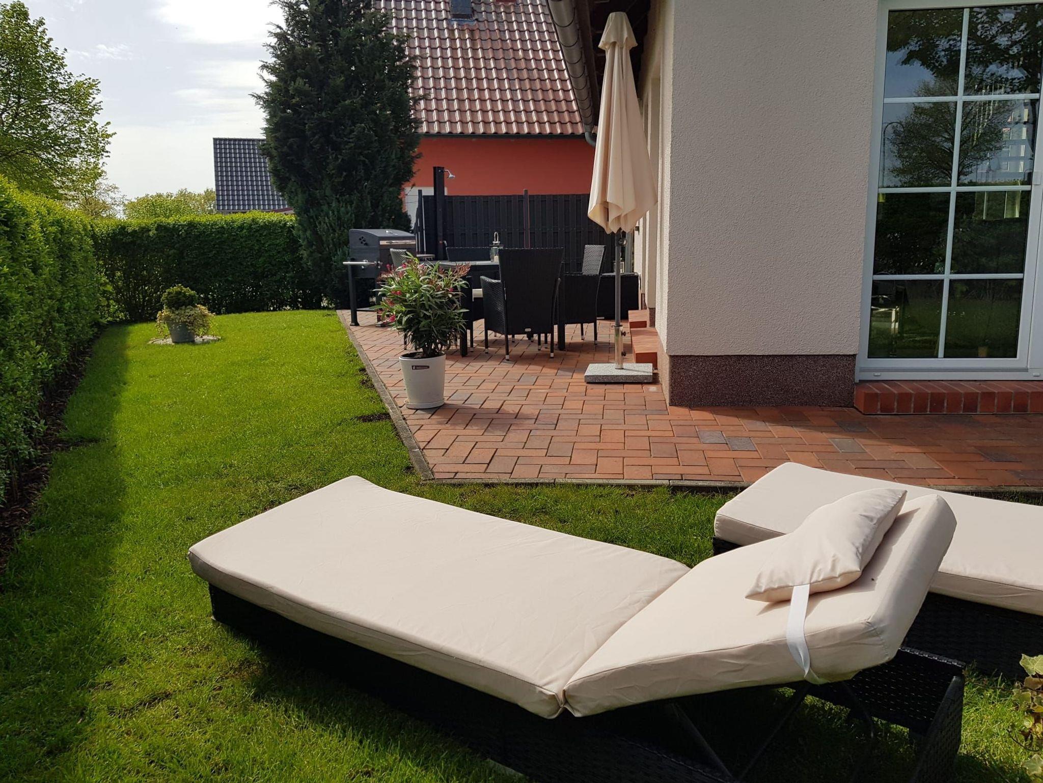 Der offene Wohn-/Essbereich soll Ihr zentrales Fleckchen? sein, an dem Sie Ihre innere Ruhe finden mögen. Suchen und entdecken Sie Ihre persönliche Balance beim entspannten Relaxen auf unserem bequemen Sofa oder auf einem der beiden Sessel direkt vor unserem mollig-warmen Kamin (Erstausstattung Kaminholz vorhanden). Keine Panik, auch für digitale Unterhaltung sorgen wir mit Smart-TV und WLAN. Die Ausstattung der offenen L-Form Einbauküche lässt nur wenig Wünsche offen: Geschirr und Besteck, Spülmaschine, Kühl-Gefrierschrank, Ceranfeld mit Umluftherd und Mikrowelle stehen jederzeit für Sie bereit. Nur das Einkaufen und Kochen müssen Sie noch selbst übernehmen! Die gemütlichen Schlafzimmer sind jeweils mit Doppelbett, zwei Nachttischen und Kommode ausgestattet. Zum Verstauen Ihres Reisegepäcks können Sie den begehbaren Kleiderschrank nutzen. Beide Schlafzimmer verfügen über einen Smart-TV. Im Erdgeschoss steht Ihnen ein separates WC mit Waschbecken und im Dachgeschoss ein Bad mit Dusche, Waschbecken und WC zur Verfügung. Beide Räume wurden 2022 komplett neu renoviert und strahlen nun in einem frischen Design. Unser Ferienhaus verfügt über eine Südterrasse. Ein Gartentisch mit passenden Stühlen, zwei Gartenliegen und ein großer Sonnenschirm laden zum Verweilen ein. Ganzjährig steht für Sie ein Outdoor-Whirlpool mit 35 Grad Wassertemperatur im Garten bereit. Ein Barbecue gefällig? Unser Holzkohlegrill wartet auf Ihre Grillkreationen! Übrigens können Sie gern Ihre Fahrräder und Ihr Golfequipment im abschließbaren Schuppen unterstellen. Ihre Fahrzeuge parken Sie auf dem eigenen Parkplätzen direkt neben dem Haus auf dem Grundstück, welches vollständig eingezäunt ist. Waschtrockner, Bügelbrett, Bügeleisen und Reinigungsutensilien stehen für Sie zur alleinigen Nutzung im Abstellraum des Erdgeschosses zur kostenlosen Nutzung bereit.