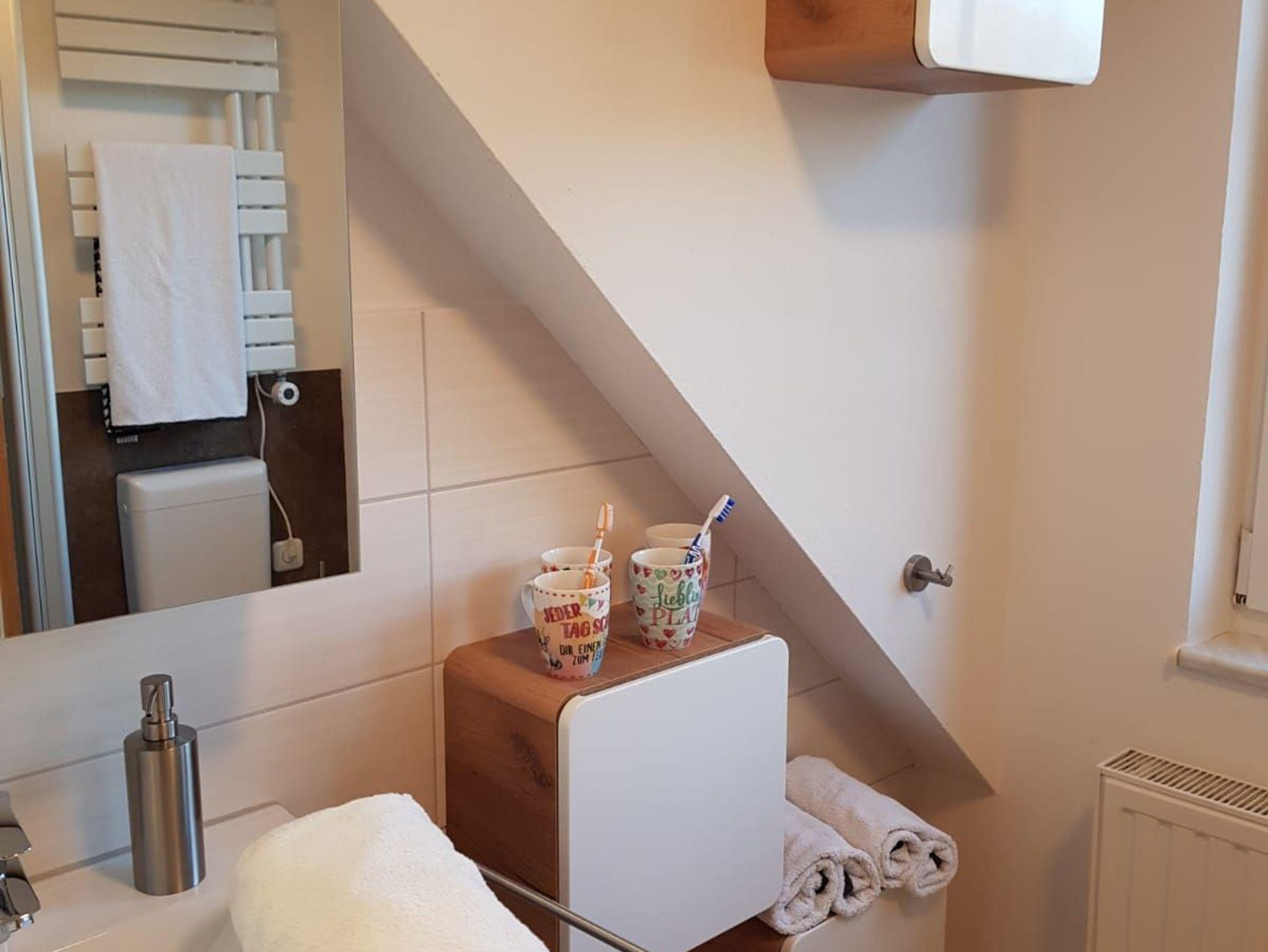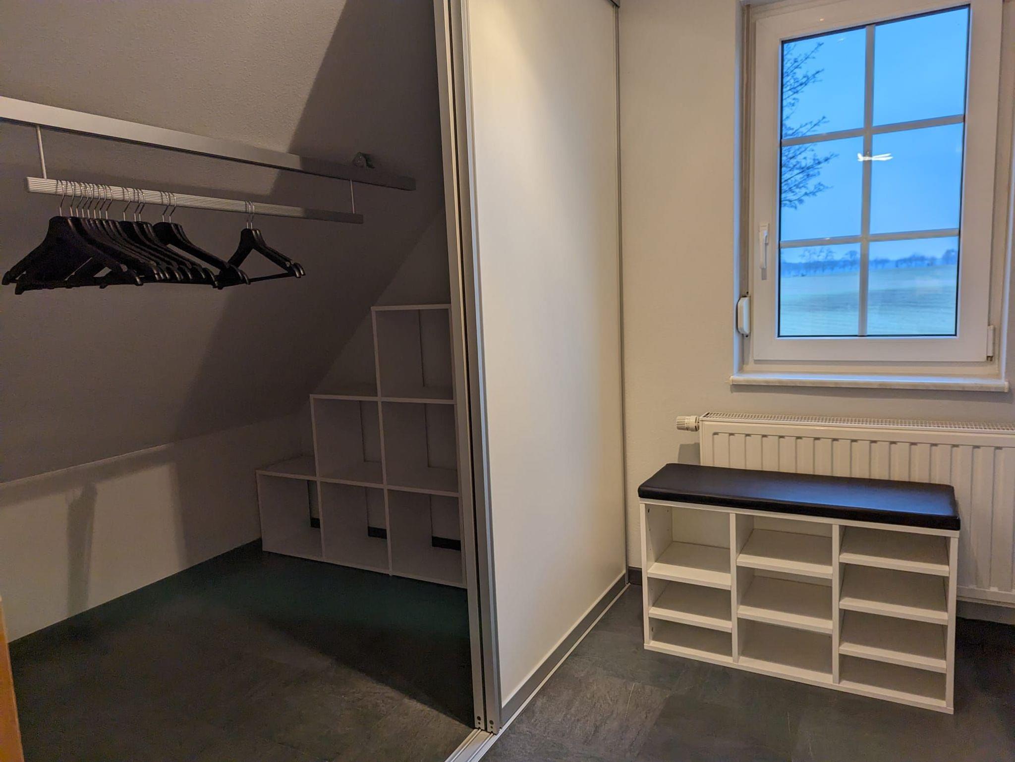 Das Ferienhaus bietet auf einer Gesamtfläche von gut 90 qm im Erdgeschoss (55 qm) eine Diele, ein mit viel Liebe gestalteten Wohn-/Essbereich mit einer Küche, ein separates WC, einen Abstellraum und eine Südterrasse. Im Dachgeschoss (35 qm) erwarten Sie zwei geräumige Schlafzimmer, ein geschmackvolles Bad, ein begehbarer Kleiderschrank und ein Flur. Die beiden Schlafzimmer sowie das Bad sind nicht nur mit Fenstern in den Giebeln des Hauses, sondern zusätzlich mit Giebeldachgauben ausgestattet, wodurch die Belichtung und das Raumangebot in diesen Räumen außergewöhnlich ist.