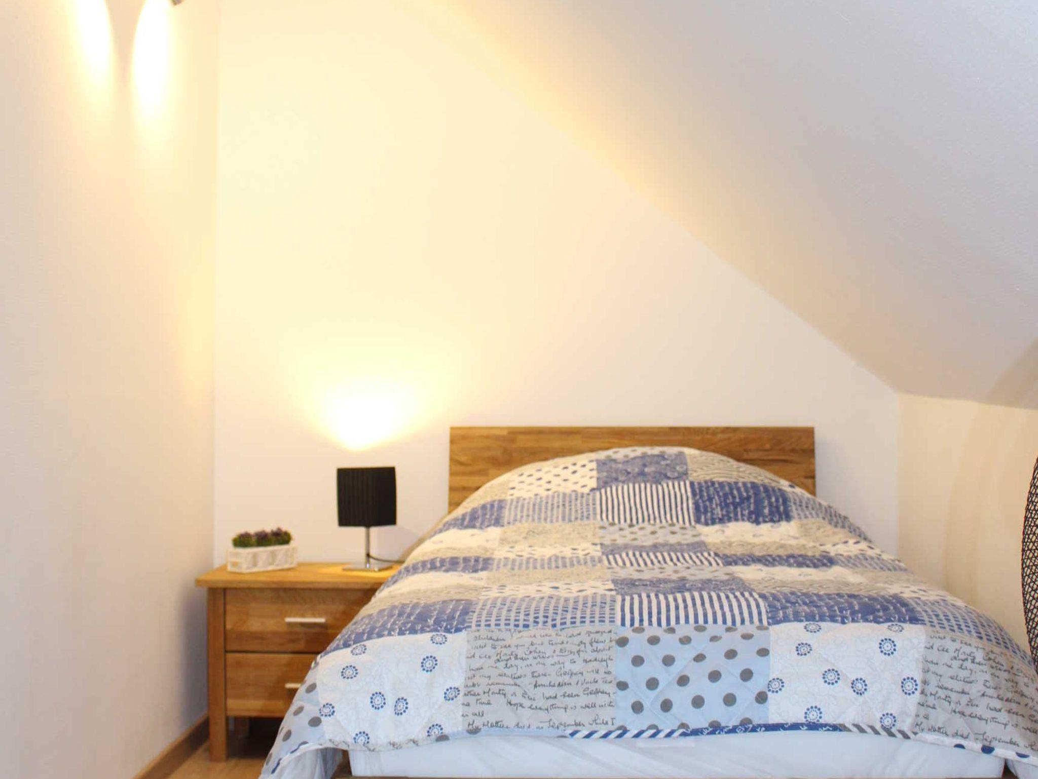 Im EG unseres 2021/22 renovierten Hauses befindet sich eine kleine Diele mit Garderobe und Spiegel und ein Hauswirtschaftsraum mit Waschmaschine und Wäschetrockner sowie eine Kühl-und Gefrierkombination, welche Sie kostenlos nutzen können. In einem separaten Trakt befindet sich ein großes Schlafzimmer mit einem 2x2 m großen Bett (elektrisch verstellbar), ein Badezimmer mit ebenerdiger Dusche, Badewanne und WC. Angrenzend finden Sie einen begehbaren Kleiderschrank.