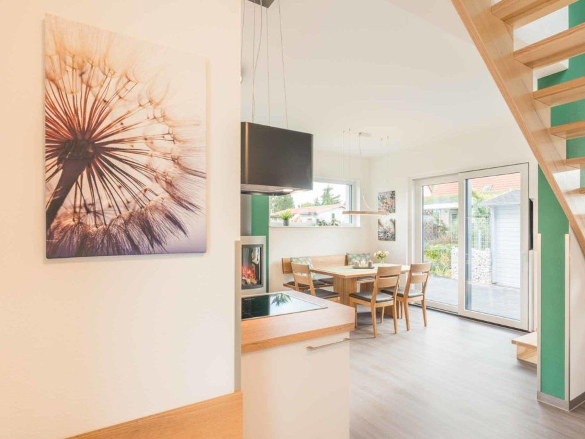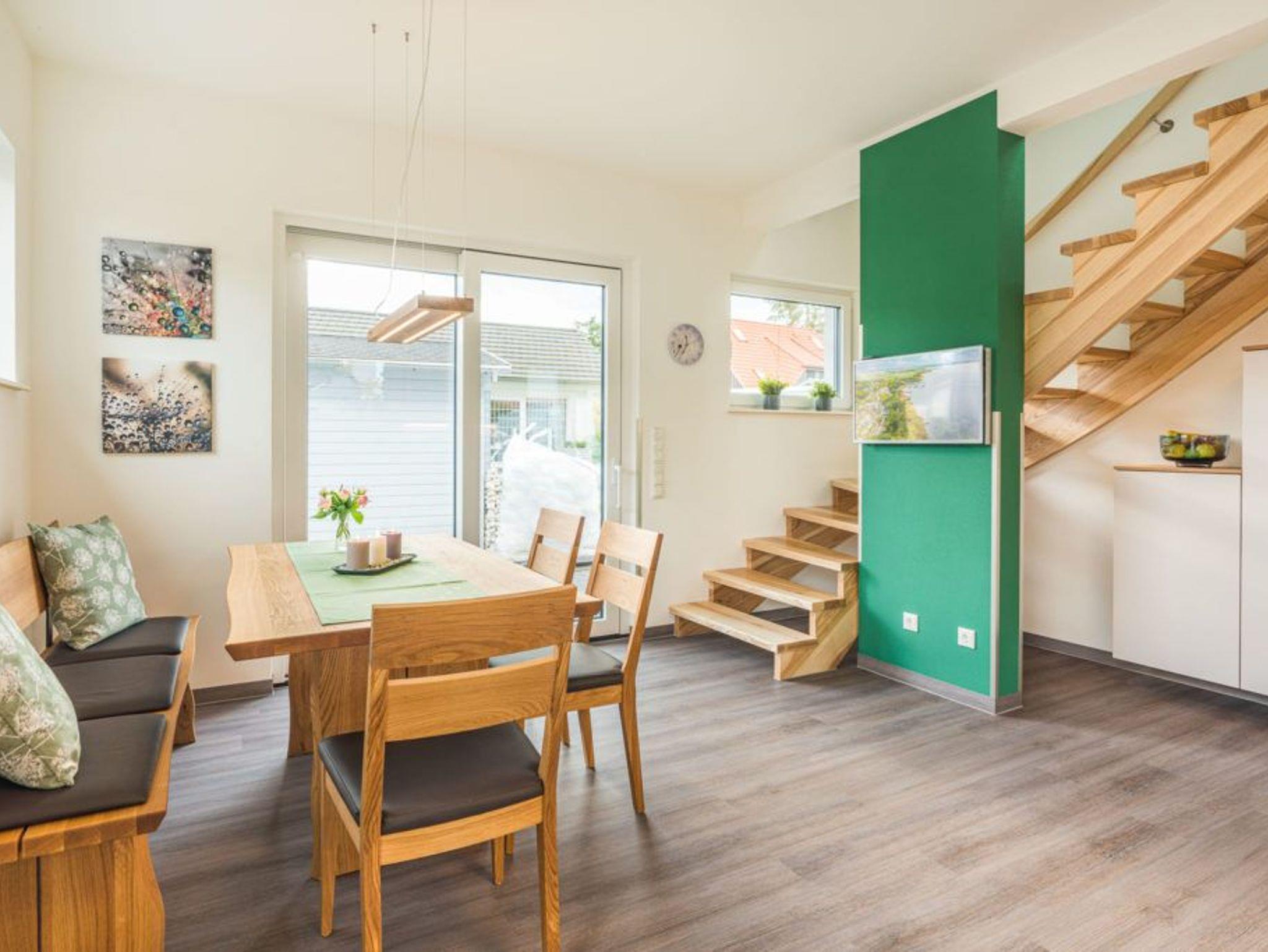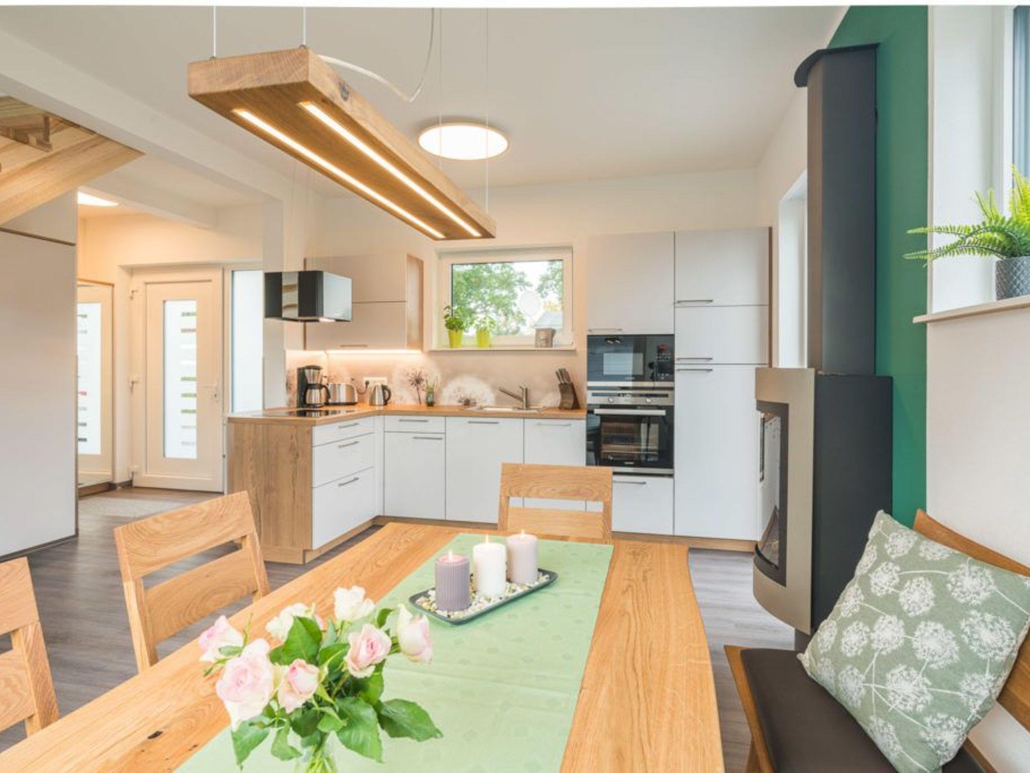 Das Ferienhaus Pusteblume in 2020 neu gebaut, ist individuell, offen und sehr hell gestaltet. Wir haben Wert auf eine hochwertige Ausstattung gelegt. Im Erdgeschoss finden Sie die offene Wohnküche mit Esstisch und Fernseher sowie Gaskamin, ein Badezimmer mit WC und Dusche und ein gesondertes Schlafzimmer mit einem Boxspringbett (1,40 * 2,00m). Im Obergeschoss erwartet Sie eine Couchecke mit Fernseher, die Bibliothek mit Relaxsessel und der Schlafbereich (1,60 *2,00m) mit großem Kleiderschrank. Ausserdem können Sie dort eine gesonderte Toilette und Waschmaschine nutzen. WLAN und internetfähige Fernseher stehen zur Verfügung.