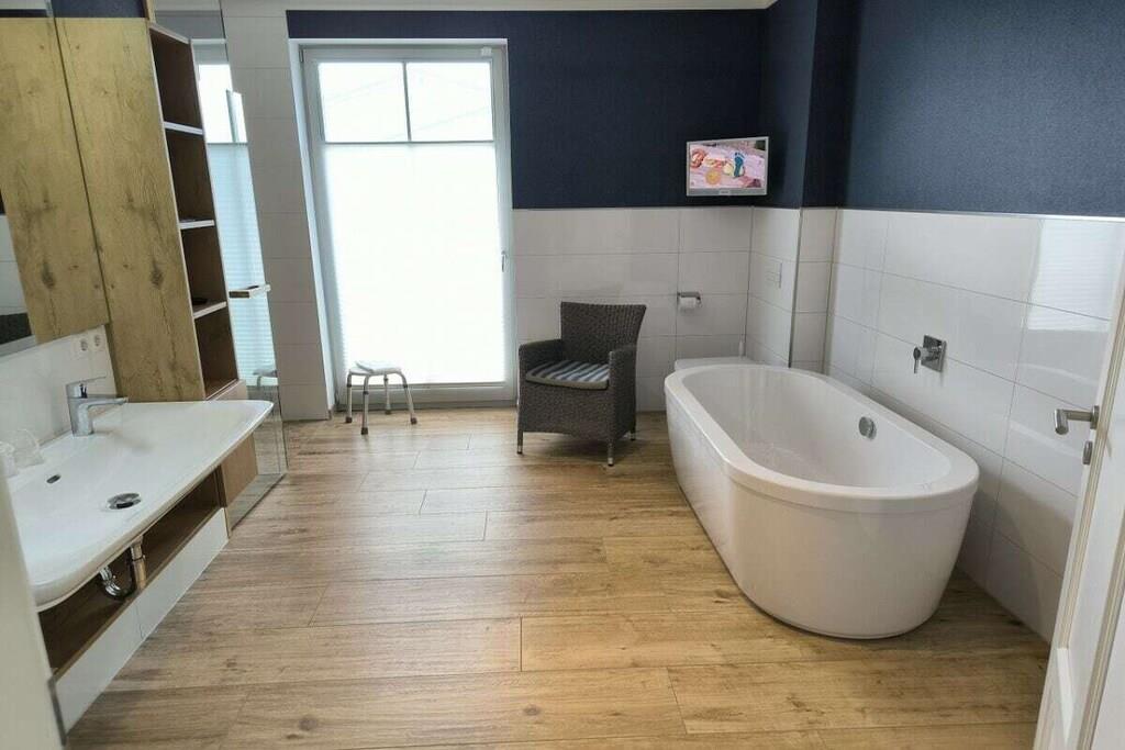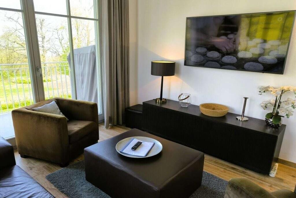På 2. etage: (entre(, , varme), åbent køkken(komfur, ovn, køleskab, varme), stue / spisestue(, Fjernsyn, spisebord, pejs, varme), soveværelse(, dobbeltseng, Fjernsyn, radio, varme), soveværelse(, dobbeltseng, Fjernsyn, radio, varme), badeværelse(, toilet, badekar, bruser, håndvask, varme), badeværelse(, toilet, bruser, håndvask, varme), loungerum(sauna), pulterkammer(, tørretumbler, vaskemaskine, strygebræt, strygejern, tørreskab)) , , , Internetadgang, tørretumbler, vaskemaskine, balkon(Strand, havemøbler), balkon(havemøbler), varme, parkering, strygebræt, strygejern, tørreskab