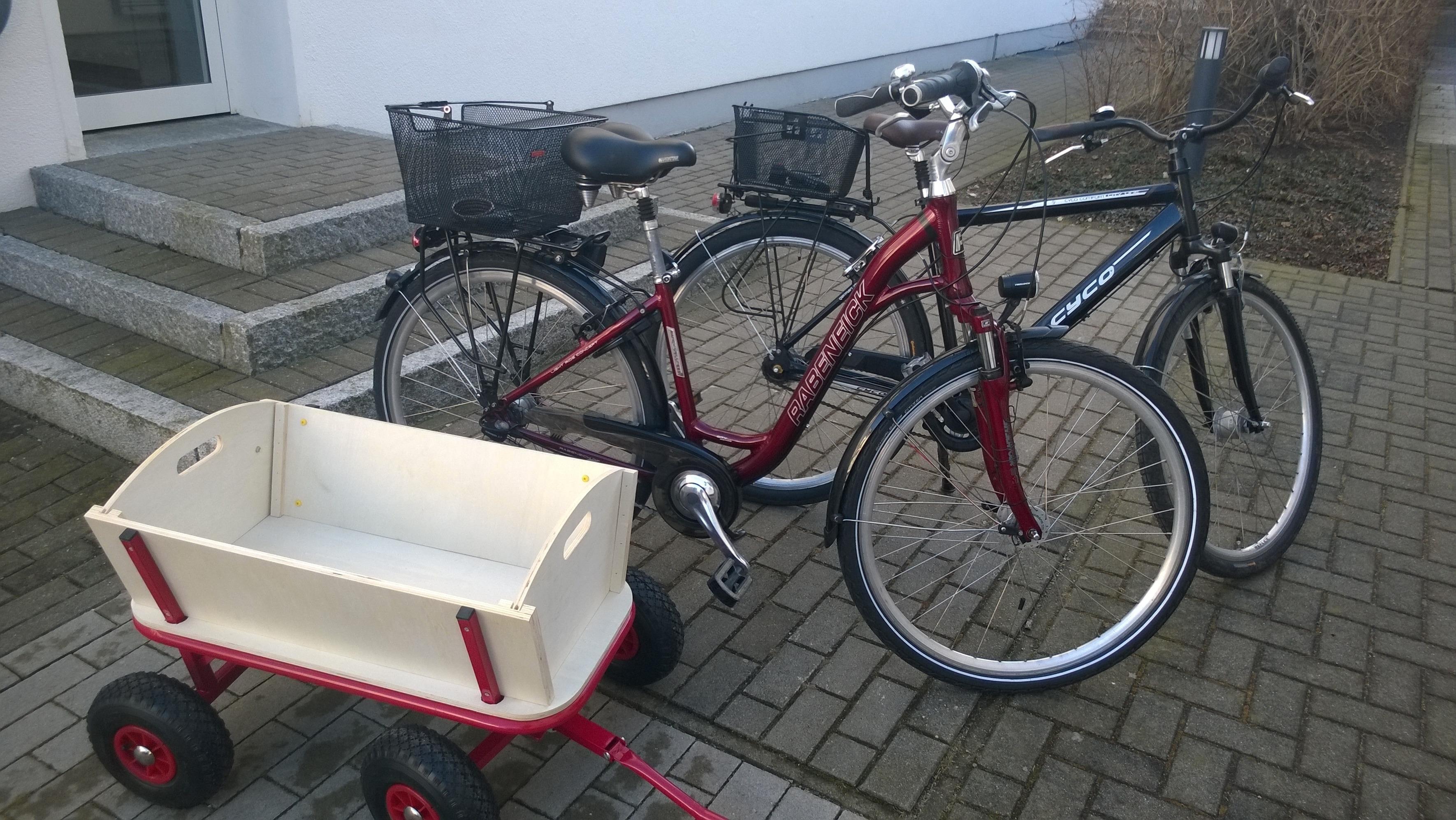 Die dort abgestellten drei Fahrräder, von denen zwei neuwertig sind, können Sie kostenlos nutzen. Fahrradschlösser sind auch dabei, Helme allerdings nicht.