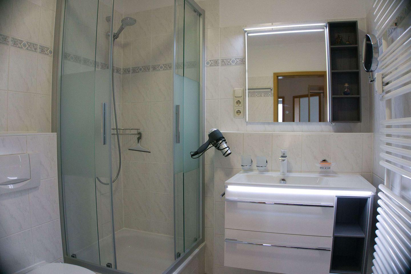 BAD // innen liegendes Bad, mit Dusche, WC, Handtuch-Heizkörper, Kosmetikspiegel und Waschmaschine ++