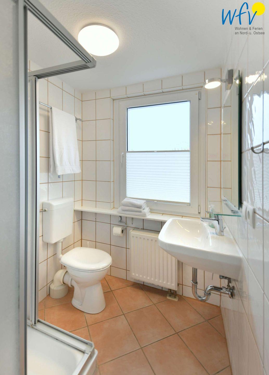 Das gepflegte Tageslichtbad mit Dusche, Waschbecken und WC rundet den Wohnkomfort ab.