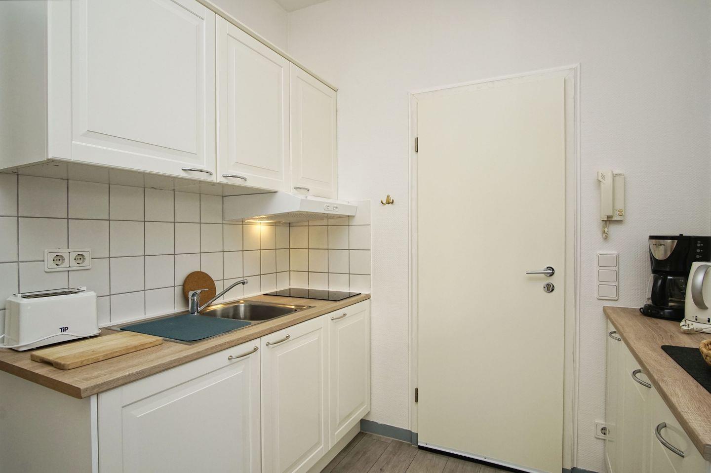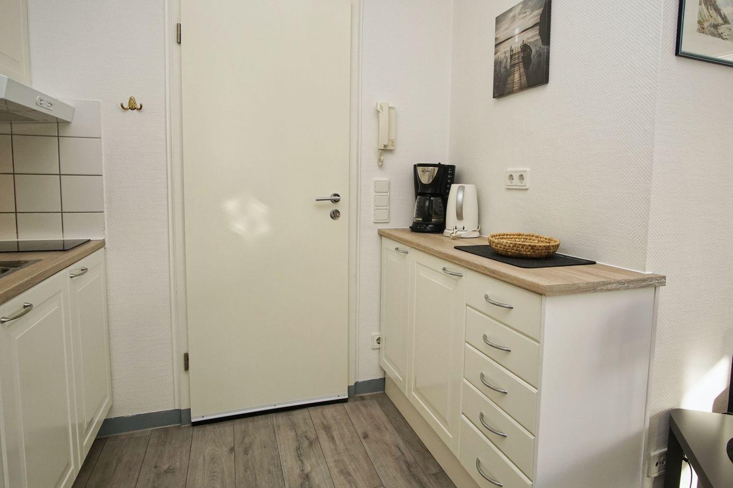 KÜCHE // offene Pantryküche, 2-Platten-Herd, Kühlschrank, Toaster, Wasserkocher, Kaffeemaschine, reichlich Besteck, Geschirr und Küchenutensilien ++