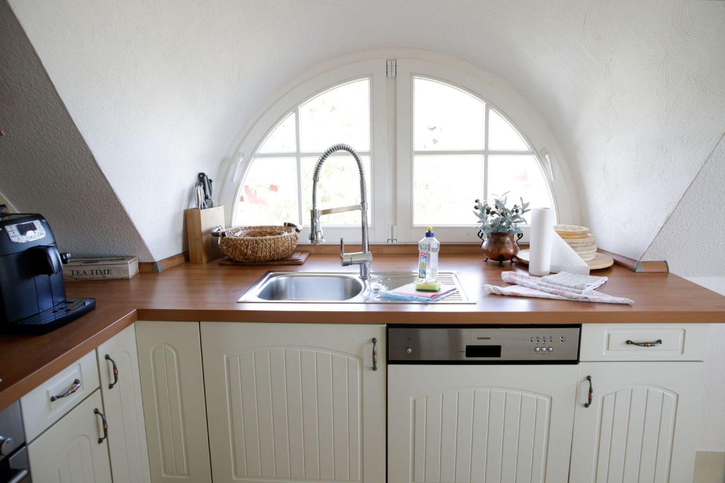 KÜCHE // offen zum Wohnraum Küchenzeile, Ceranfeld, Spülmaschine, Kühlschrank mit Gefrierfach, Backofen, Toaster, Wasserkocher, Kaffeevollautomat, reichlich Besteck, Geschirr und Küchenutensilien ++
