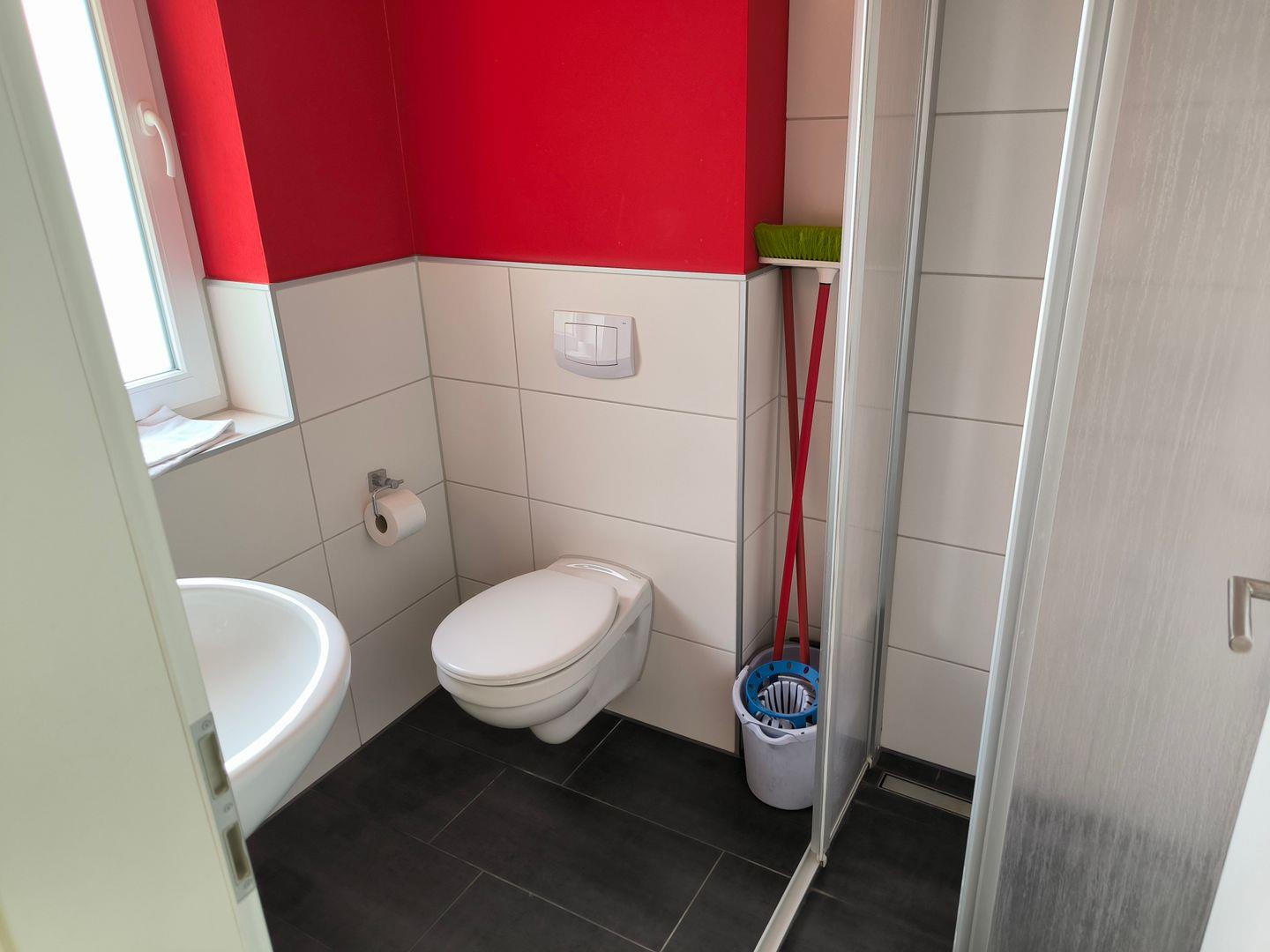 kombinierter Wohn-/Schlafraum mit integrierter Küchenzeile ausgestattet mit: 2-Platten-Ceran-Kochfeld, Kühlschrank mit Gefrierfach, Spüle, Toaster, Kaffeemaschine, Wasserkocher, diverse Küchenutensilien