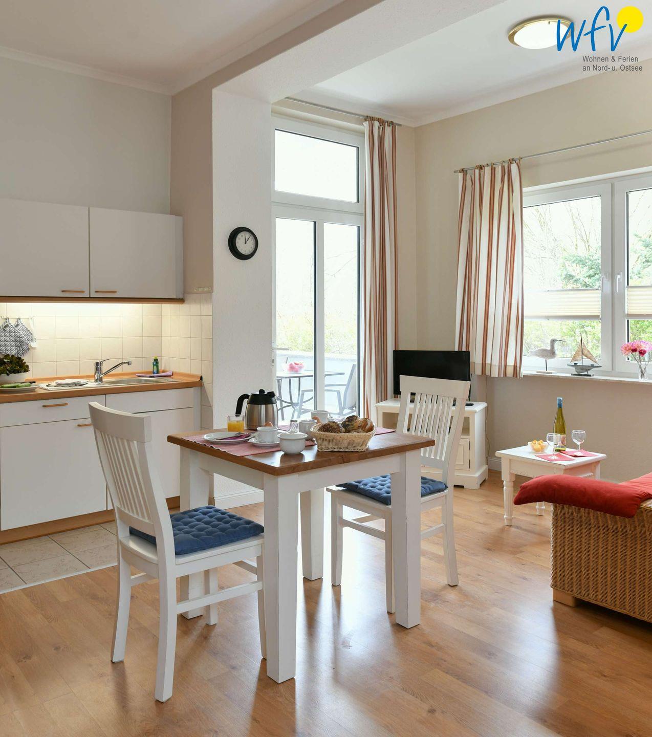 Auf 35 m² Wohnfläche erwartet Sie ein großzügiger Wohnraum mit Sitzecke, Esstisch, Doppelbett und integrierter Küchenzeile sowie ein Duschbad. Große Fenster verleihen der Ferienwohnung eine sehr freundliche und gemütliche Atmosphäre, durch die Sie sich auf Anhieb wohlfühlen werden. Von der Wohnung aus können Sie bereits die Ostsee sehen!