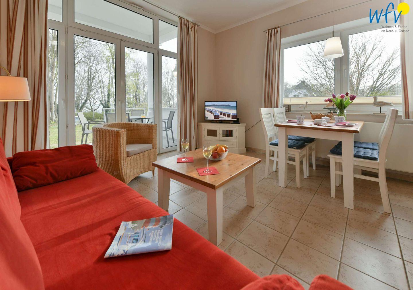 Unsere Ferienwohnung auf Rügen ist ideal für den Urlaub mit der kleinen Familie! Auf 40 m² Wohnfläche erwartet Sie ein großzügiger Wohnraum mit Sitzecke, Esstisch und integrierter Küchenzeile sowie ein separates Schlafzimmer und ein Duschbad.