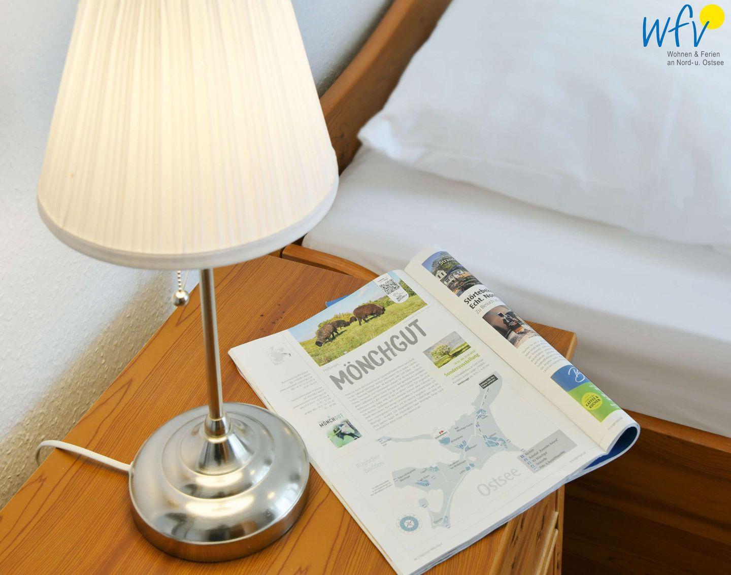 In dem separaten Schlafzimmer befindet sich ein Doppelbett. Platz für die Urlaubsgarderobe bietet der geräumige Kleiderschrank. Bei einem Aufenthalt mit vier Personen ist eine Aufbettung möglich (auf Anfrage).