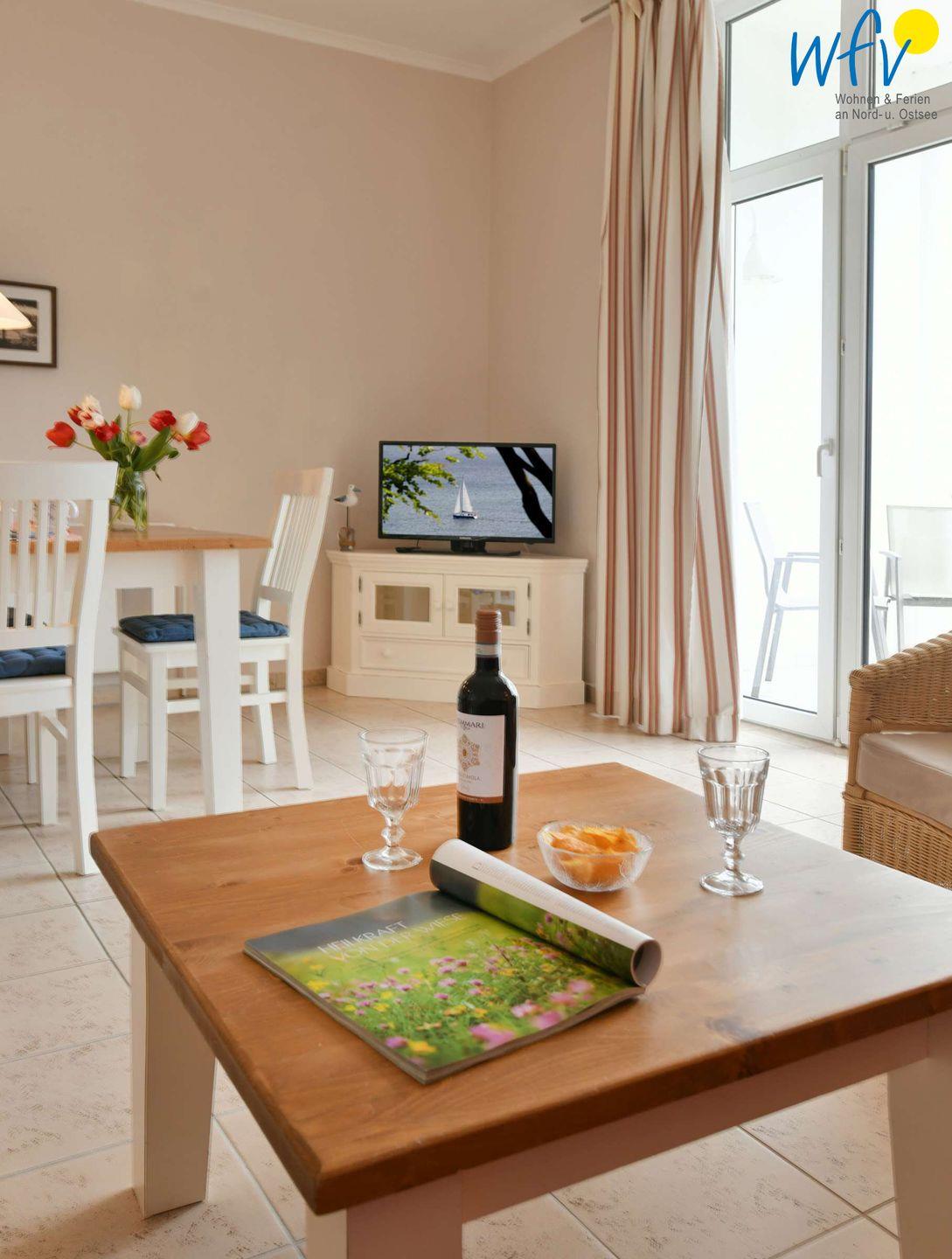 Zu der Ausstattung der Ferienwohnung gehören ein modernes TV und eine HiFi-Anlage, außerdem empfangen Sie freies WLAN - selbstverständlich kostenlos.
