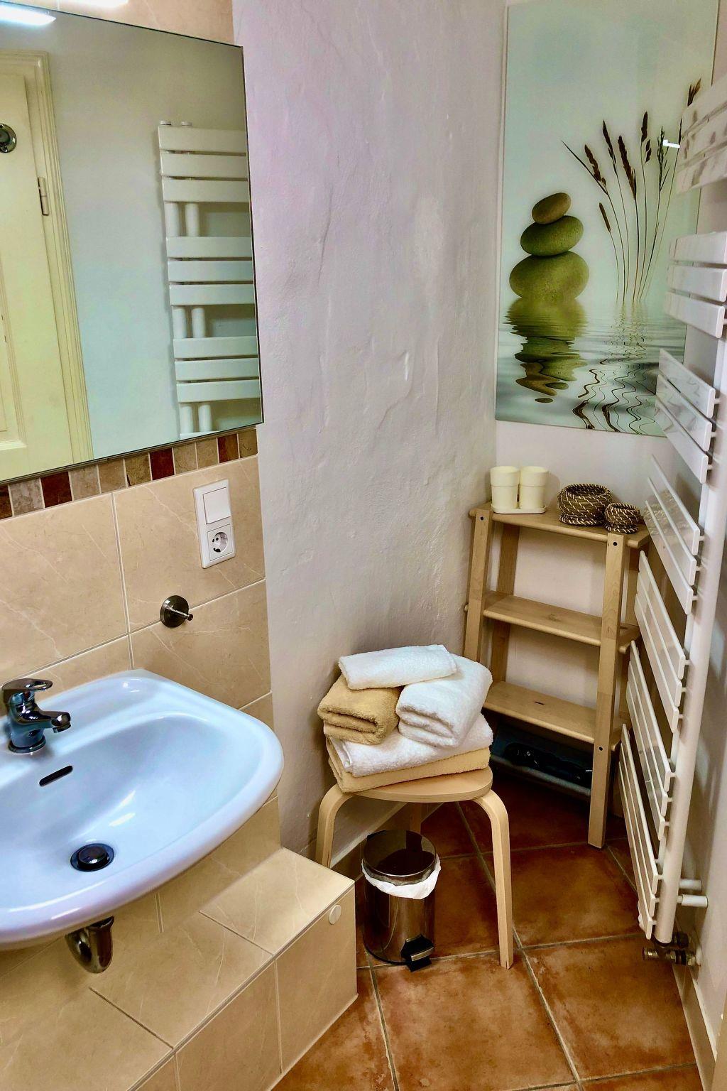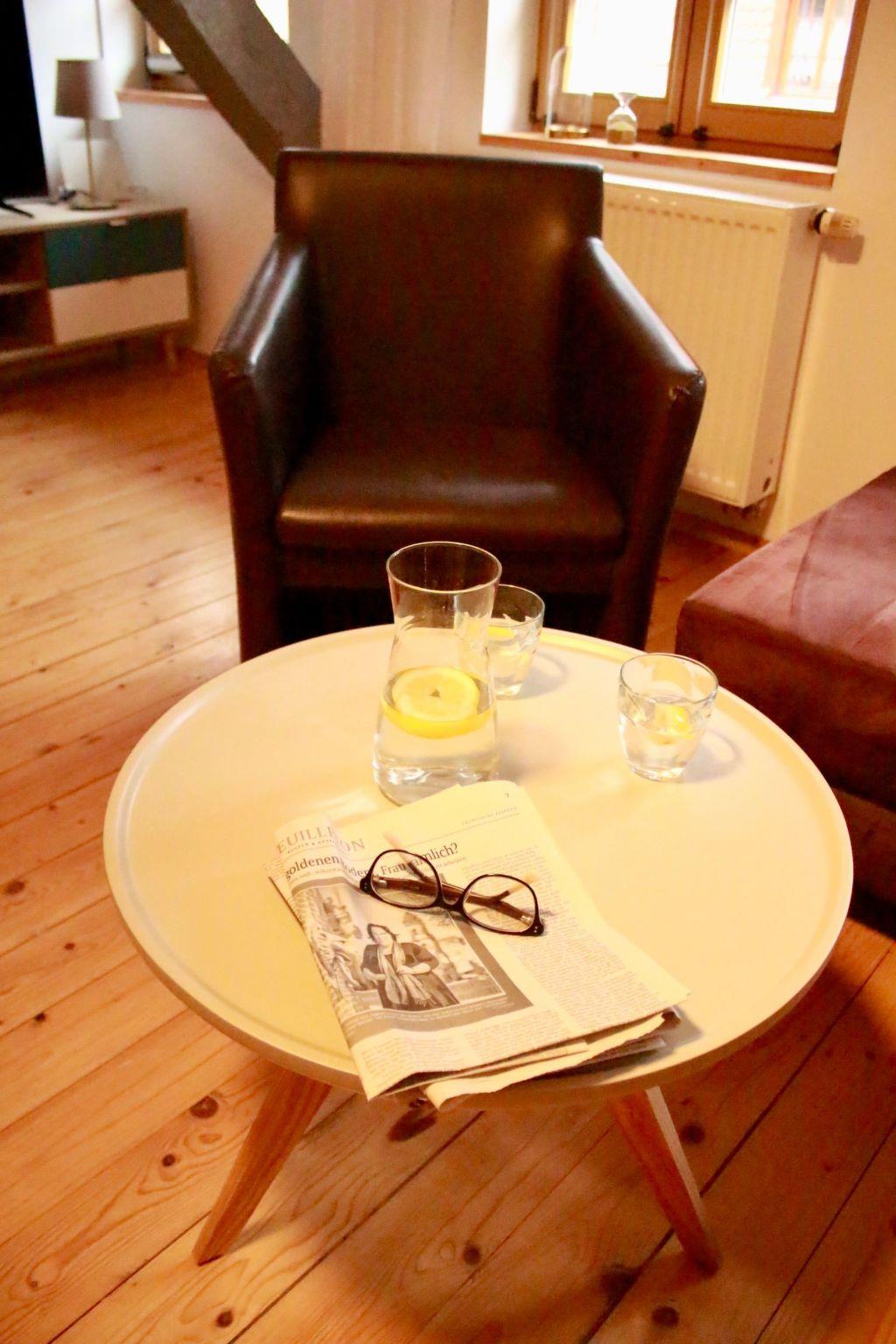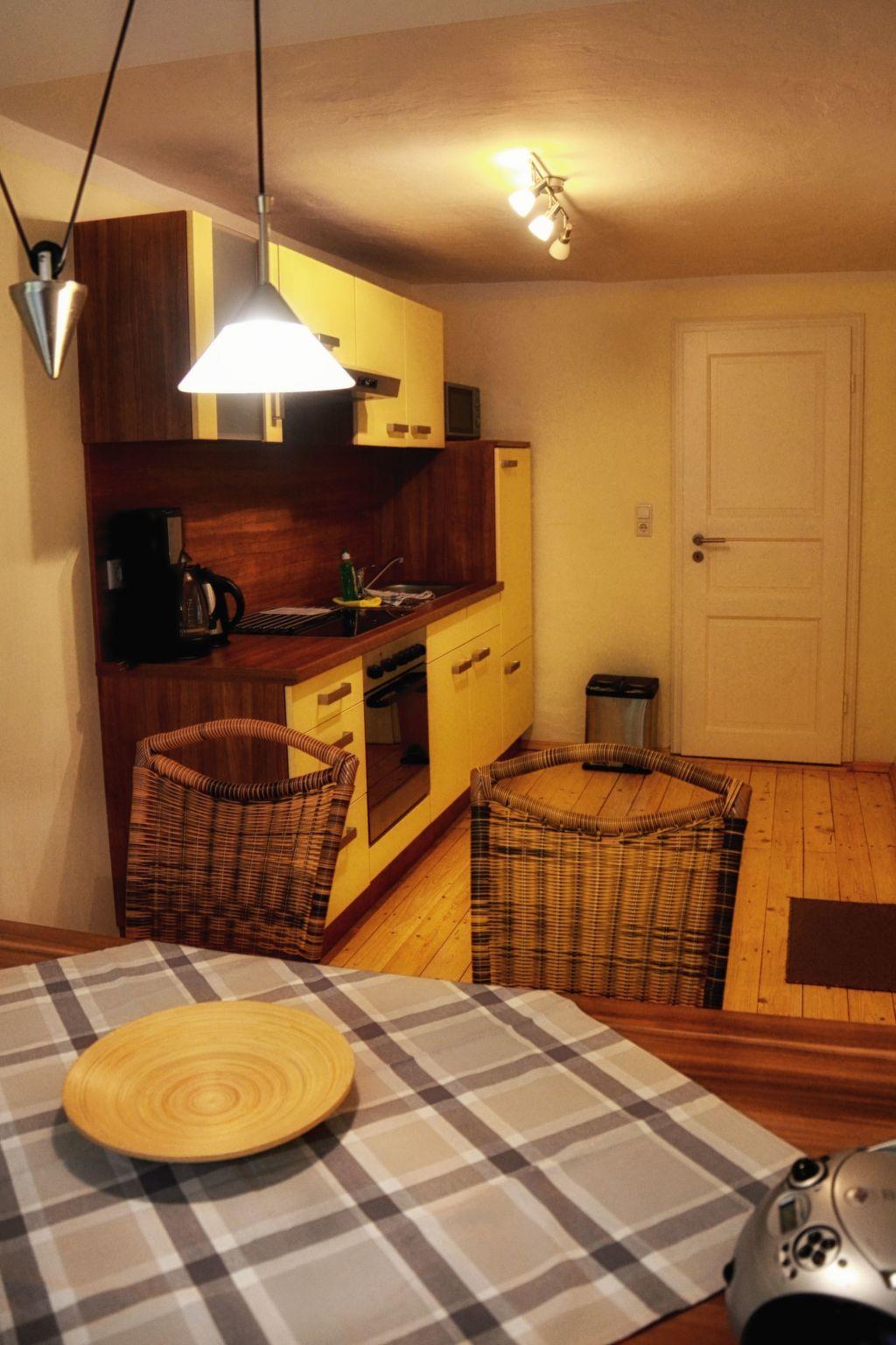 The flat is attractively designed to make your experience as pleasant as possible. With its open-plan living and sleeping area under old beams, it radiates a warm and inviting atmosphere. The large eat-in kitchen is fully equipped and invites you to linger in a cosy atmosphere - whether for a short weekend or a longer stay. The equipment is well thought out and leaves nothing to be desired, from the ceramic hob and filter coffee machine to the mini oven and kettle.