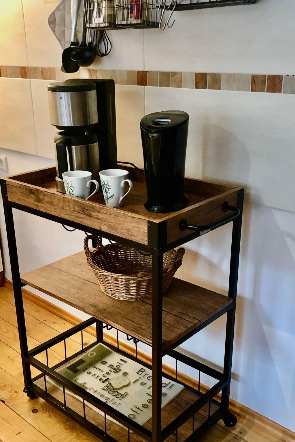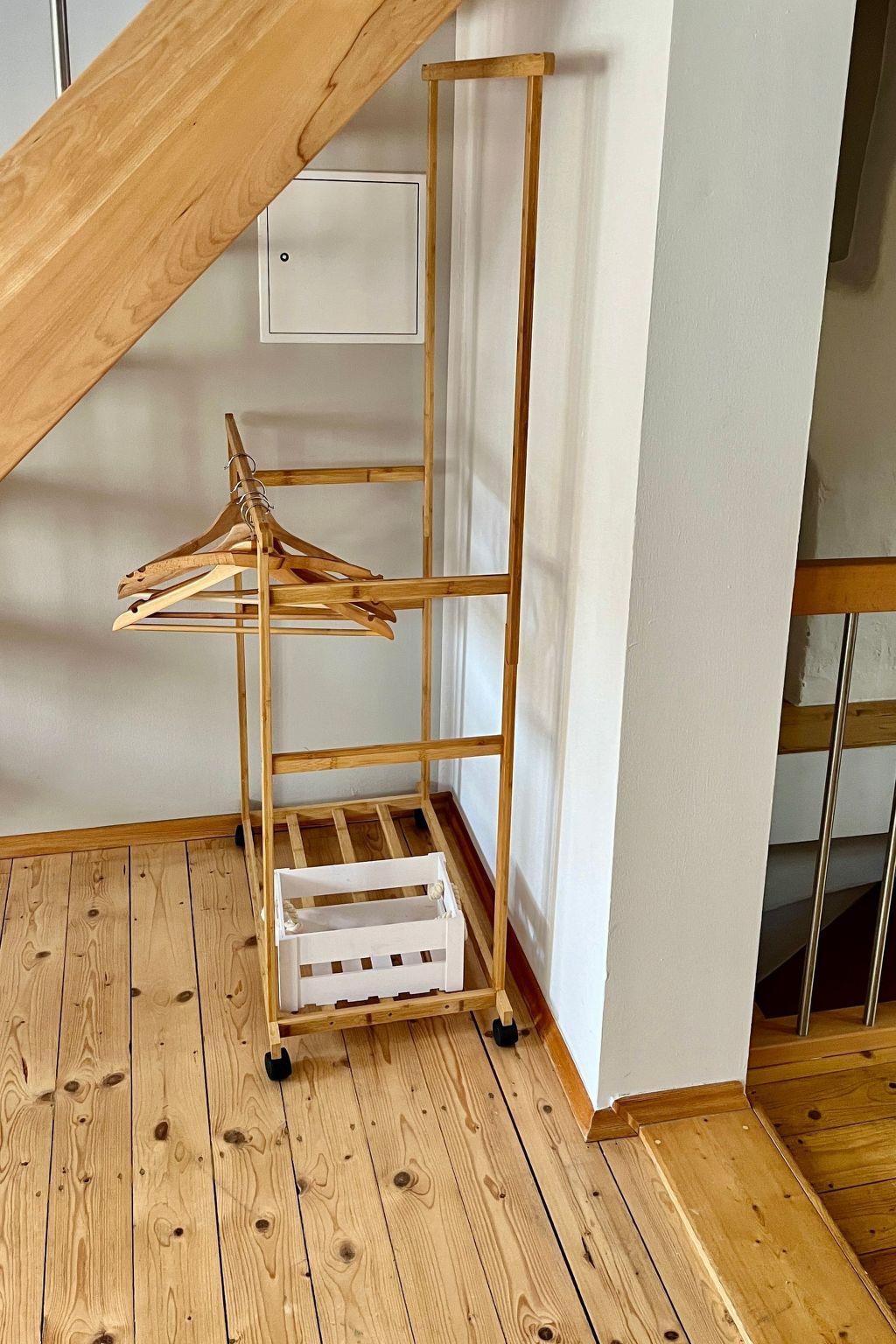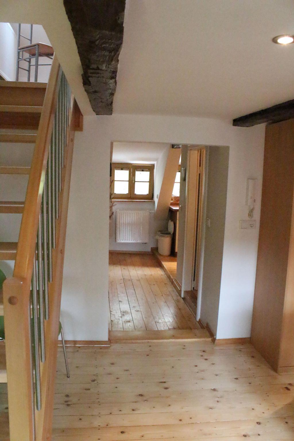 Inside the flat, you can look forward to a well-equipped kitchen that leaves nothing to be desired. From a ceramic hob and kettle to a filter coffee machine - you'll find everything you need to prepare small meals. To ensure your comfort, there is also a fan to keep you cool on hot days. Despite the modern amenities, the original character of the flat remains noticeable under the old beams and in the sleeping area under the roof, with a ceiling height of less than 1.80 metres in some places.