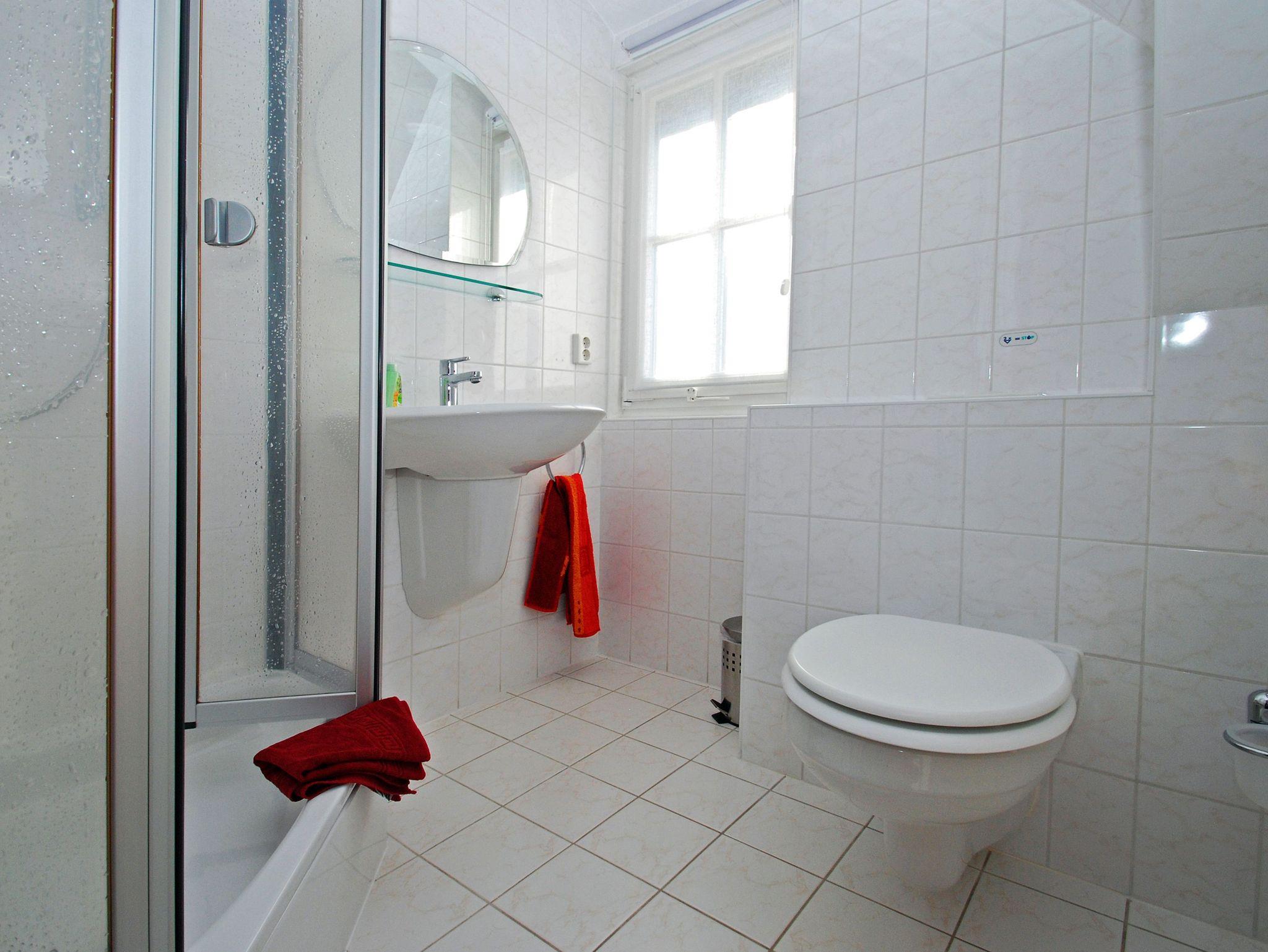 Das 4 m² große Bad ist mit Dusche, WC und Waschbecken ausgestattet.